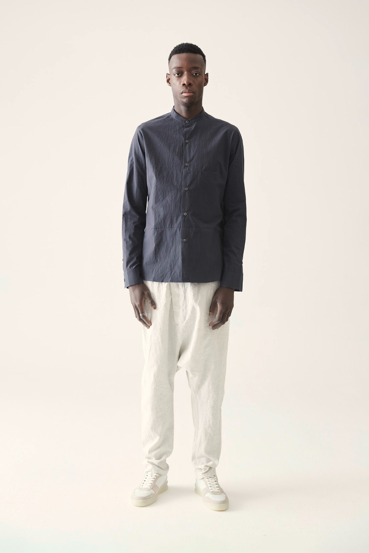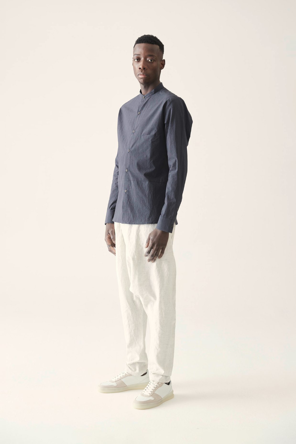 Baumwoll-Hemd mit Stehkragen und Brusttasche.