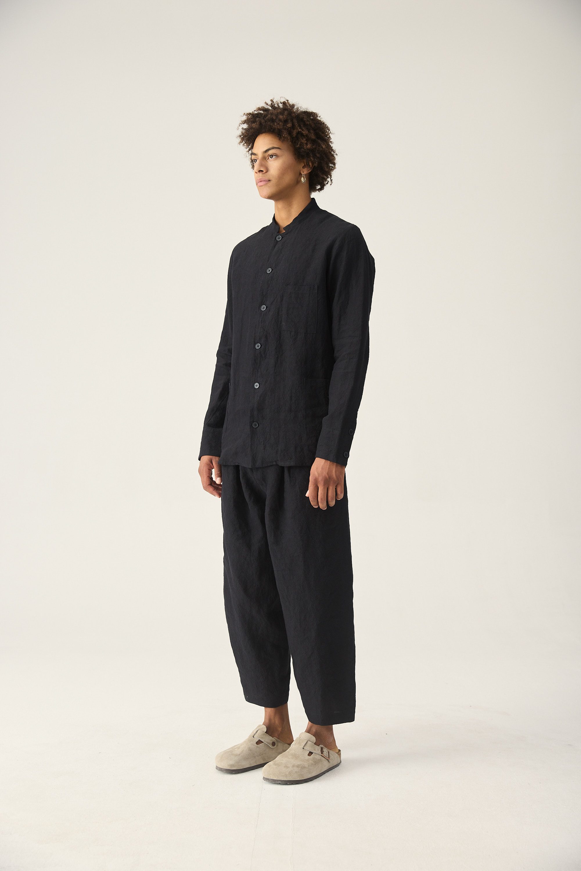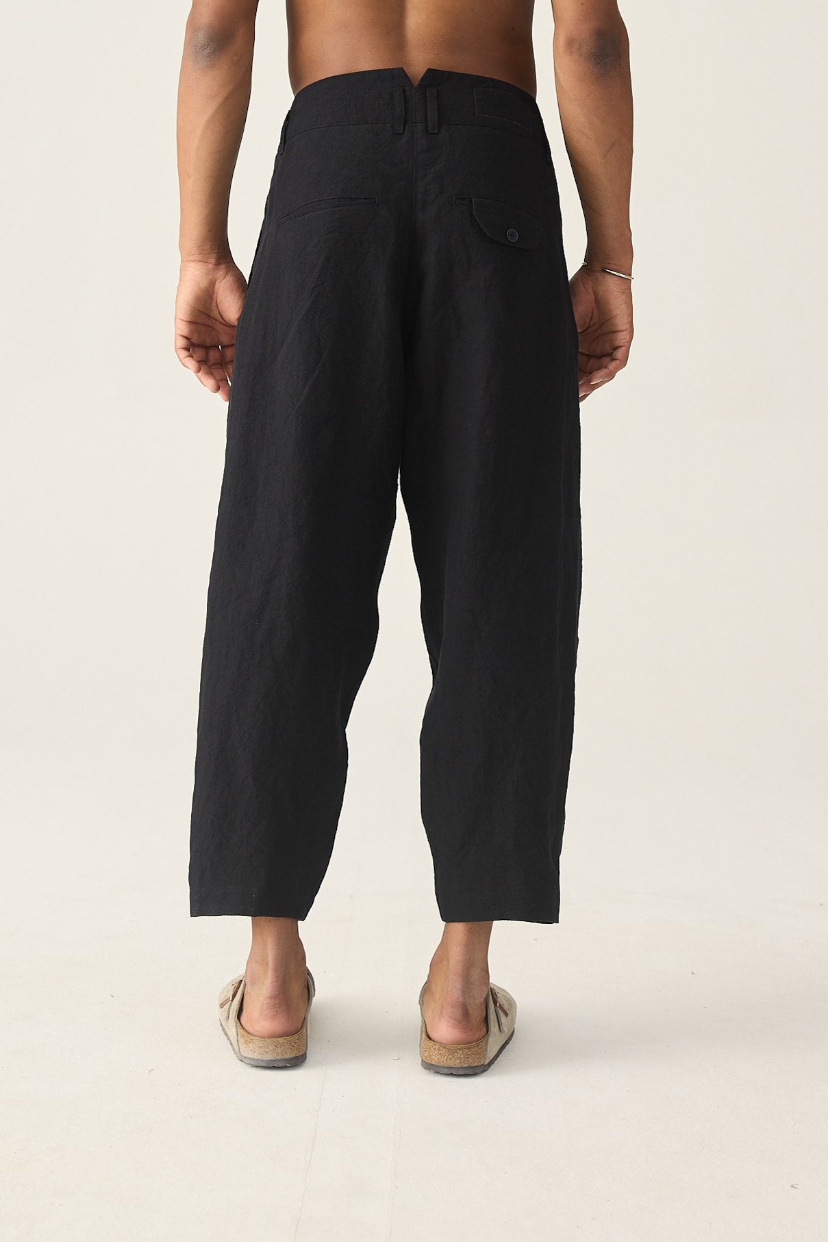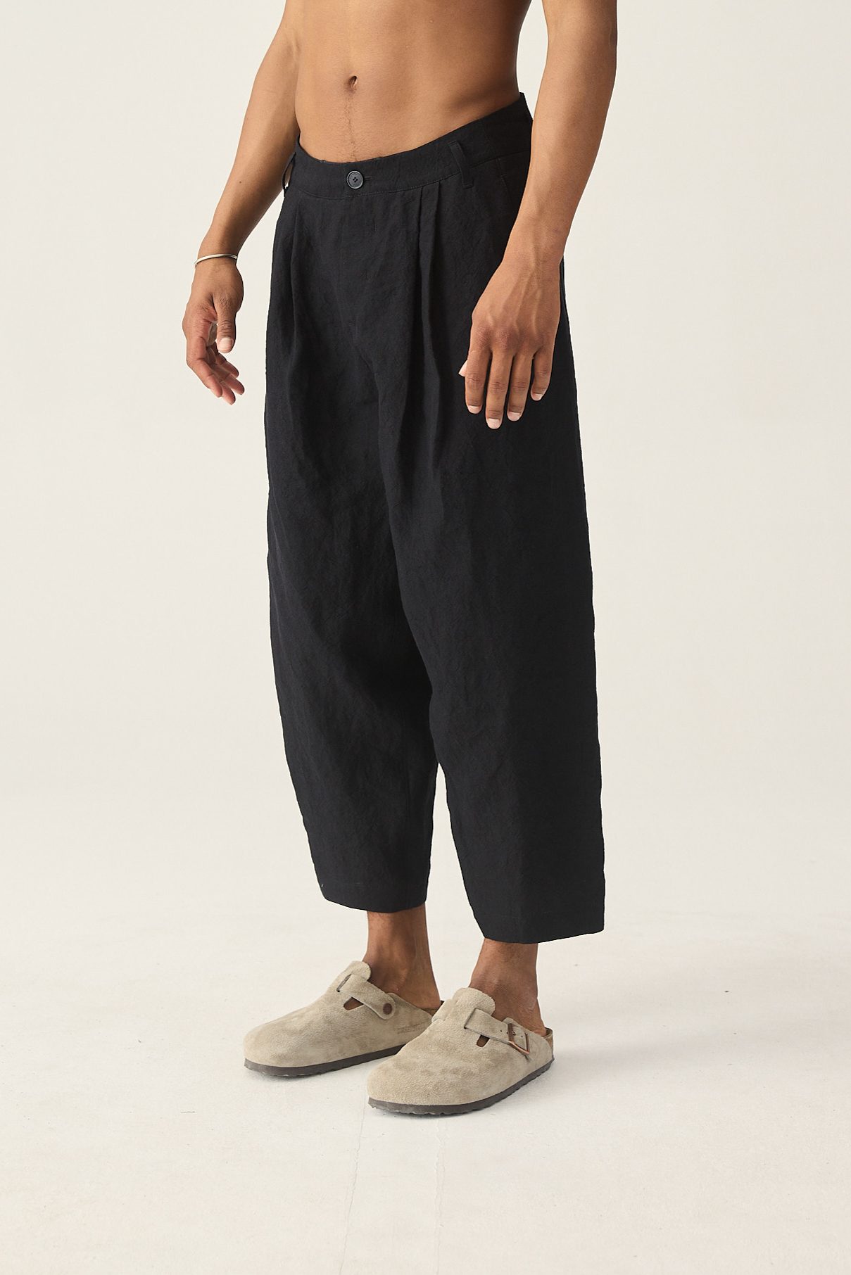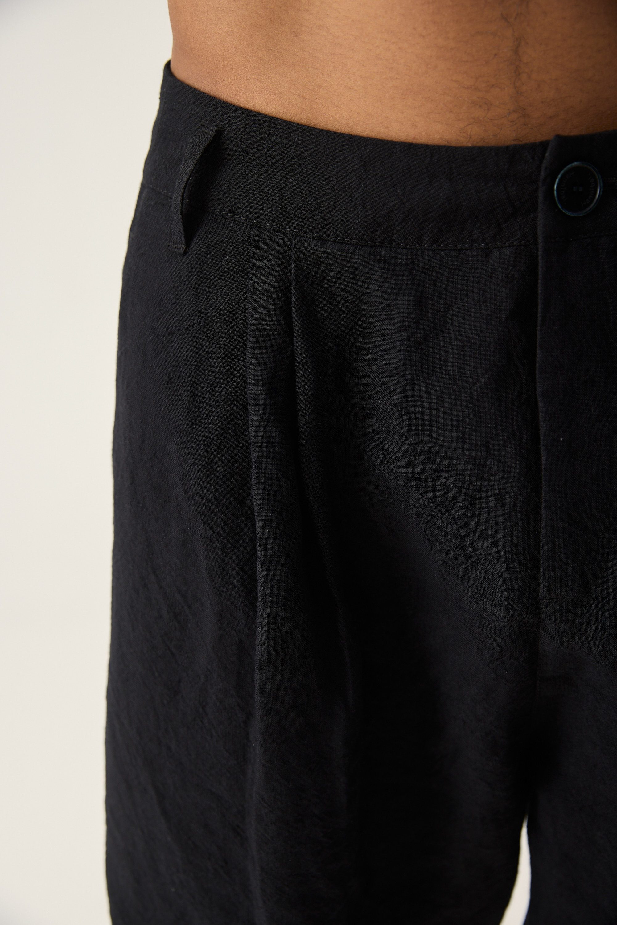 Entspannt geschnittene 7/8 Hose aus Leinen mit zwei Bundfalten.