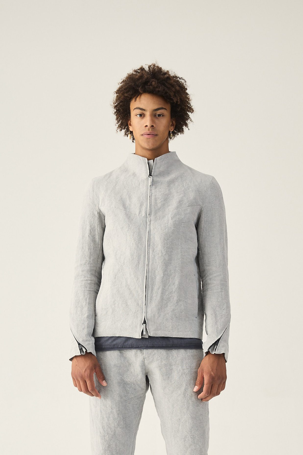 Schmal geschnittene Biker-Jacke aus einem Leinen-Papier-Mix mit Reißverschluss.