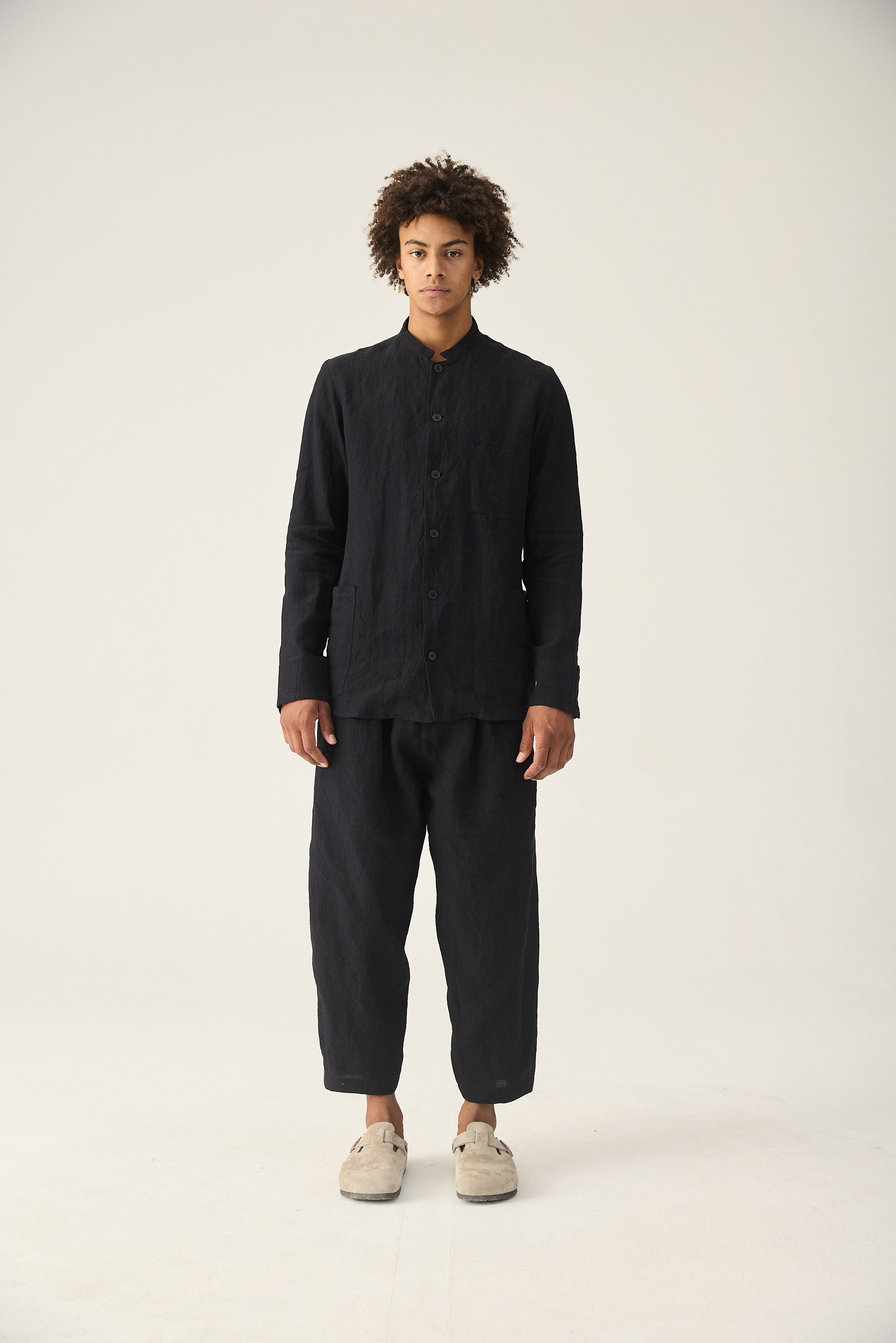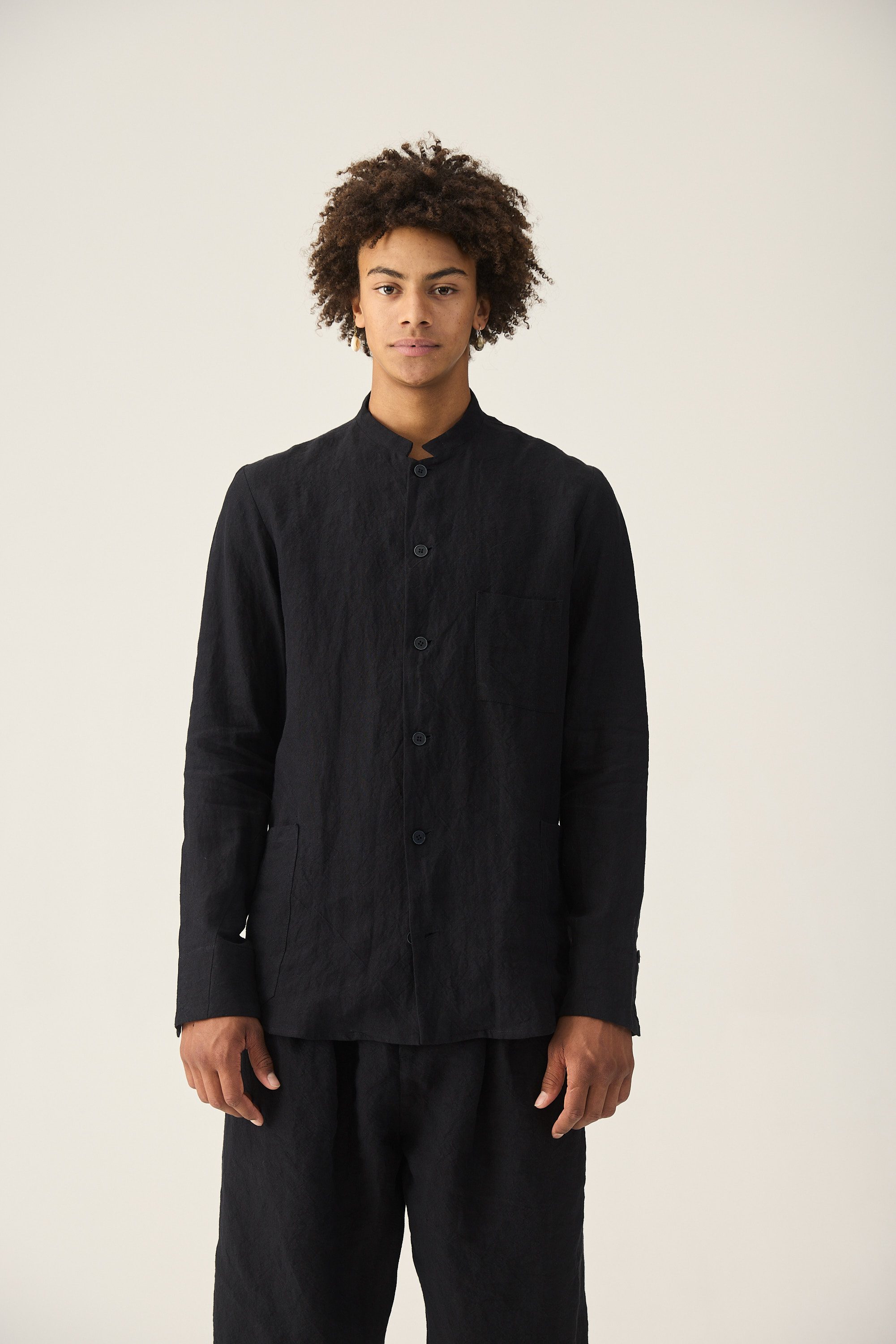 Regulär geschnittenes Overshirt aus Leinen mit drei aufgesetzten Taschen.