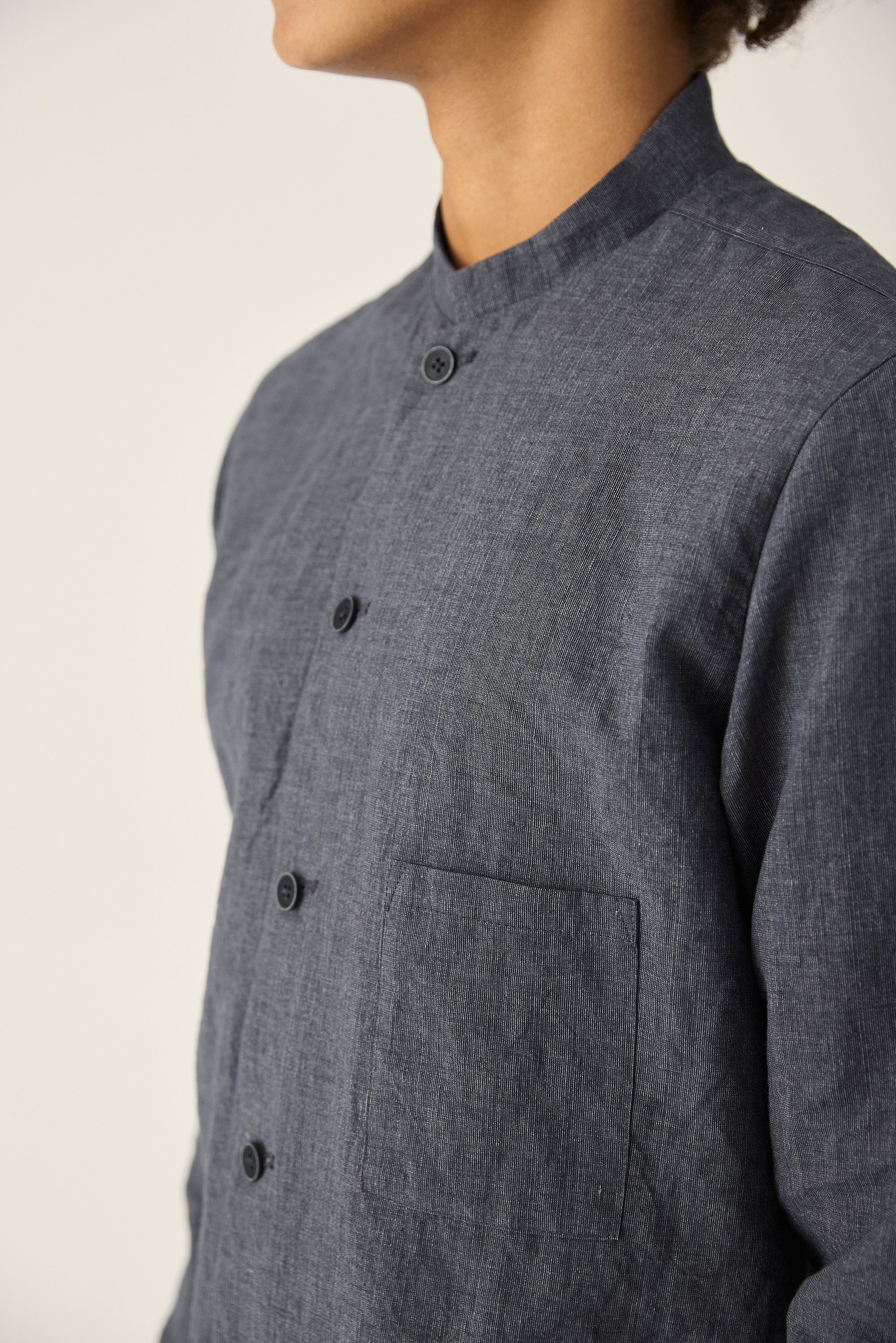 Locker geschnittenes Overshirt aus Leinen-Baumwoll-Mix mit einer Brusttasche