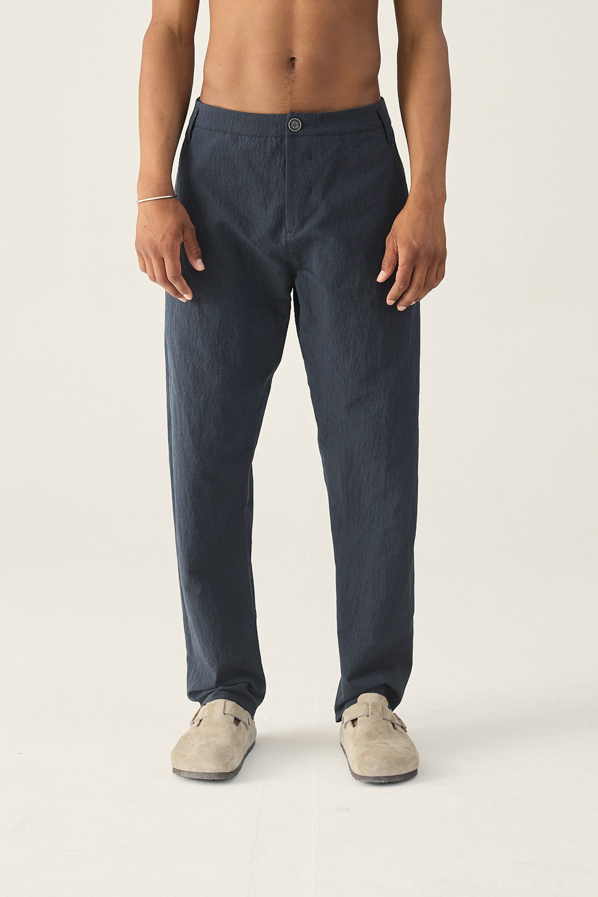 Regulär geschnittene Hose aus einem Baumwoll-Leinen-Mix mit einer leichten Rundung an der Außenbeinaht.