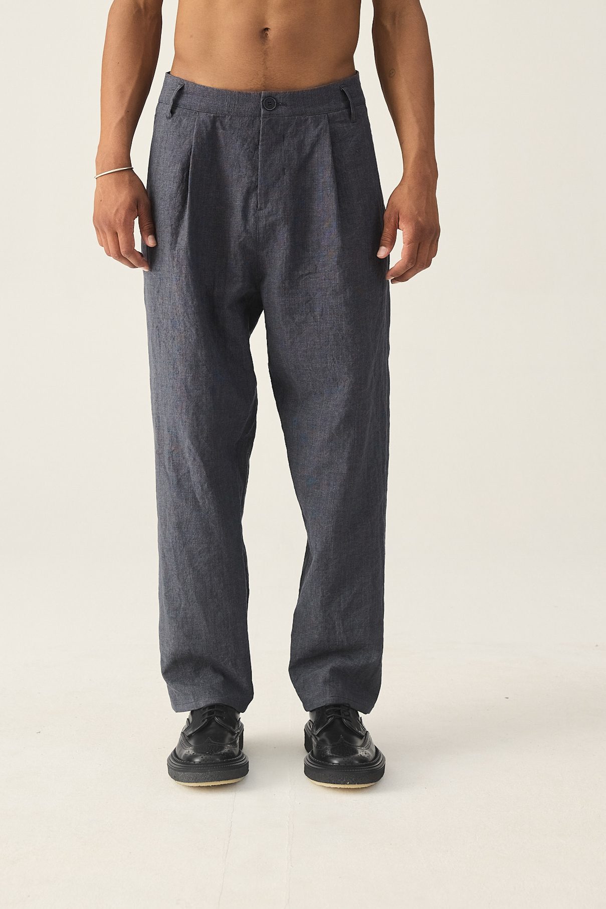 Weit geschnittene Hose aus einem Leinen-Baumwoll-Mix mit geradem Bein und einer Bundfalte.