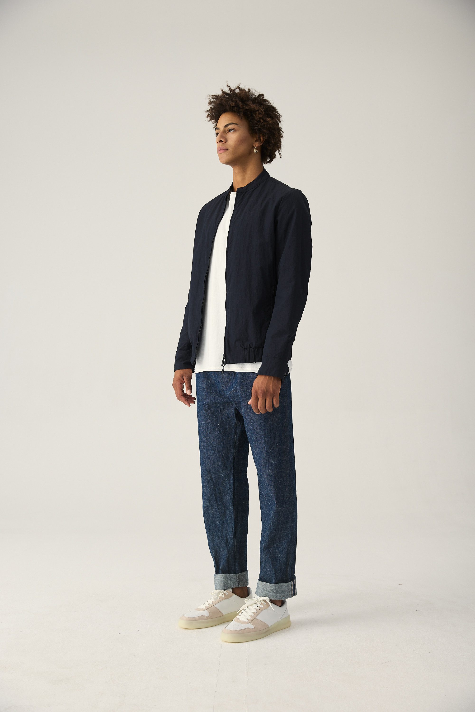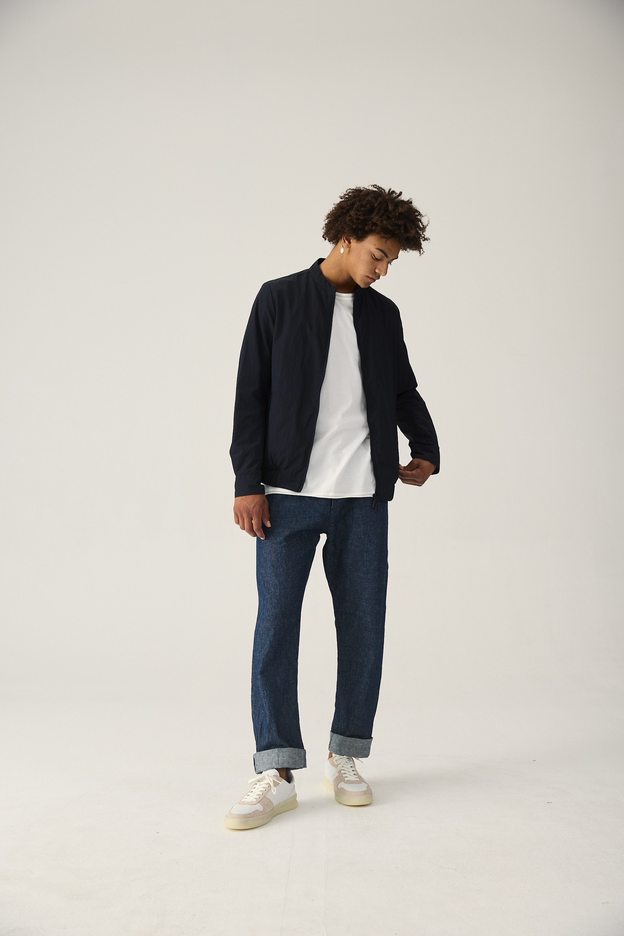 Regulär geschnittene Hose aus einem Baumwoll-Hanf selvedge Denim.