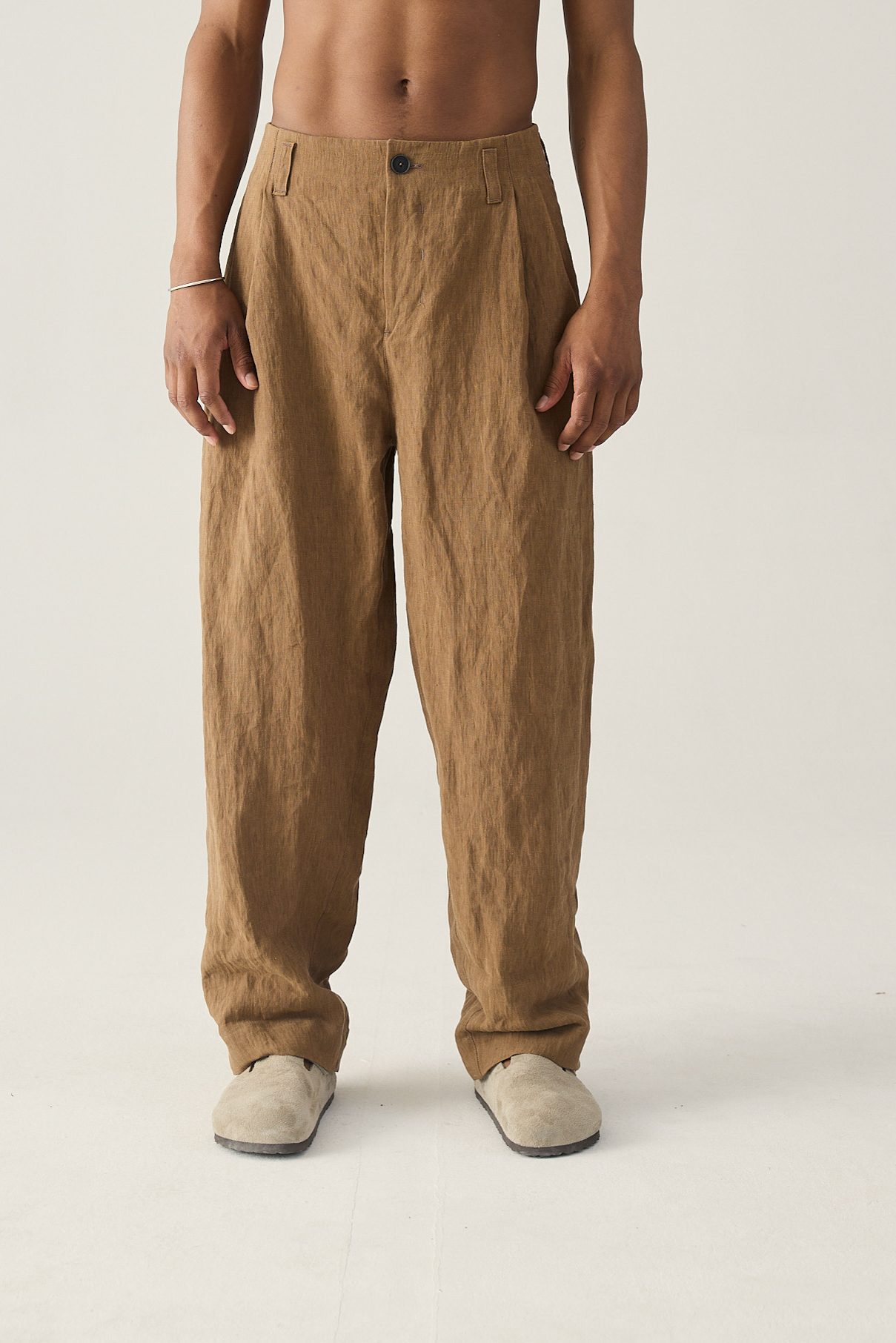 Weit geschnittene Hose aus Leinen mit geradem Bein und zwei Bundfalten.
