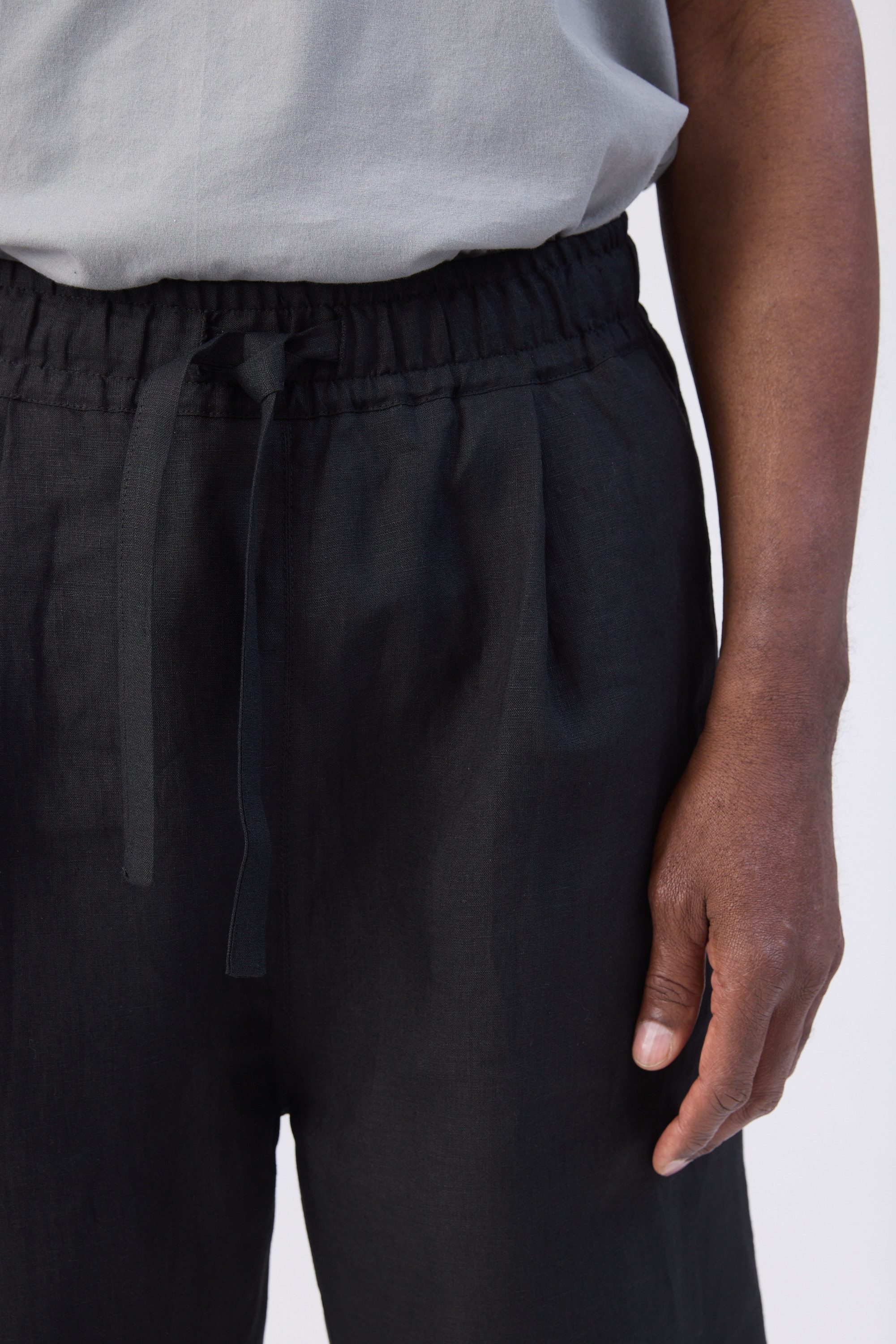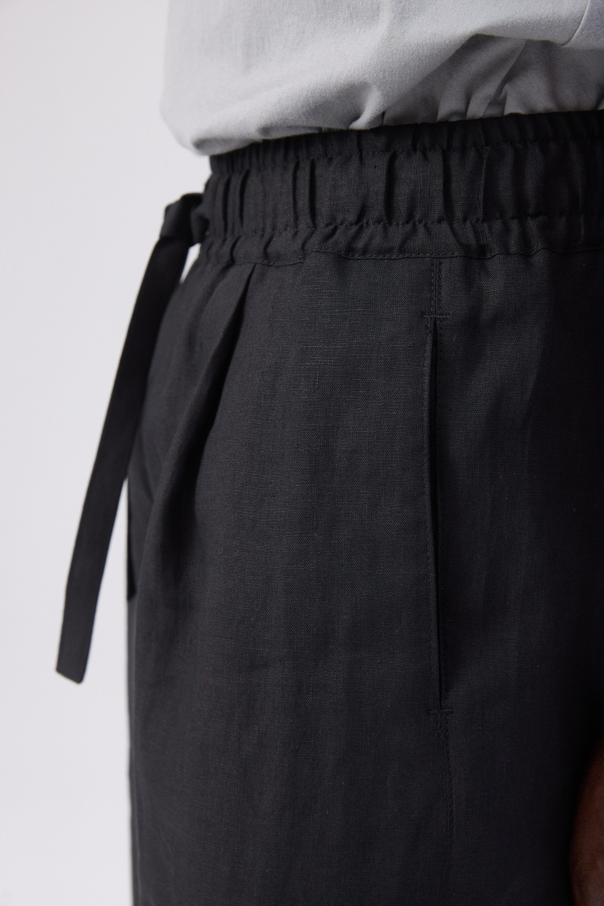 Locker geschnittene kurze Hose mit Tunnelzug aus Leinen.