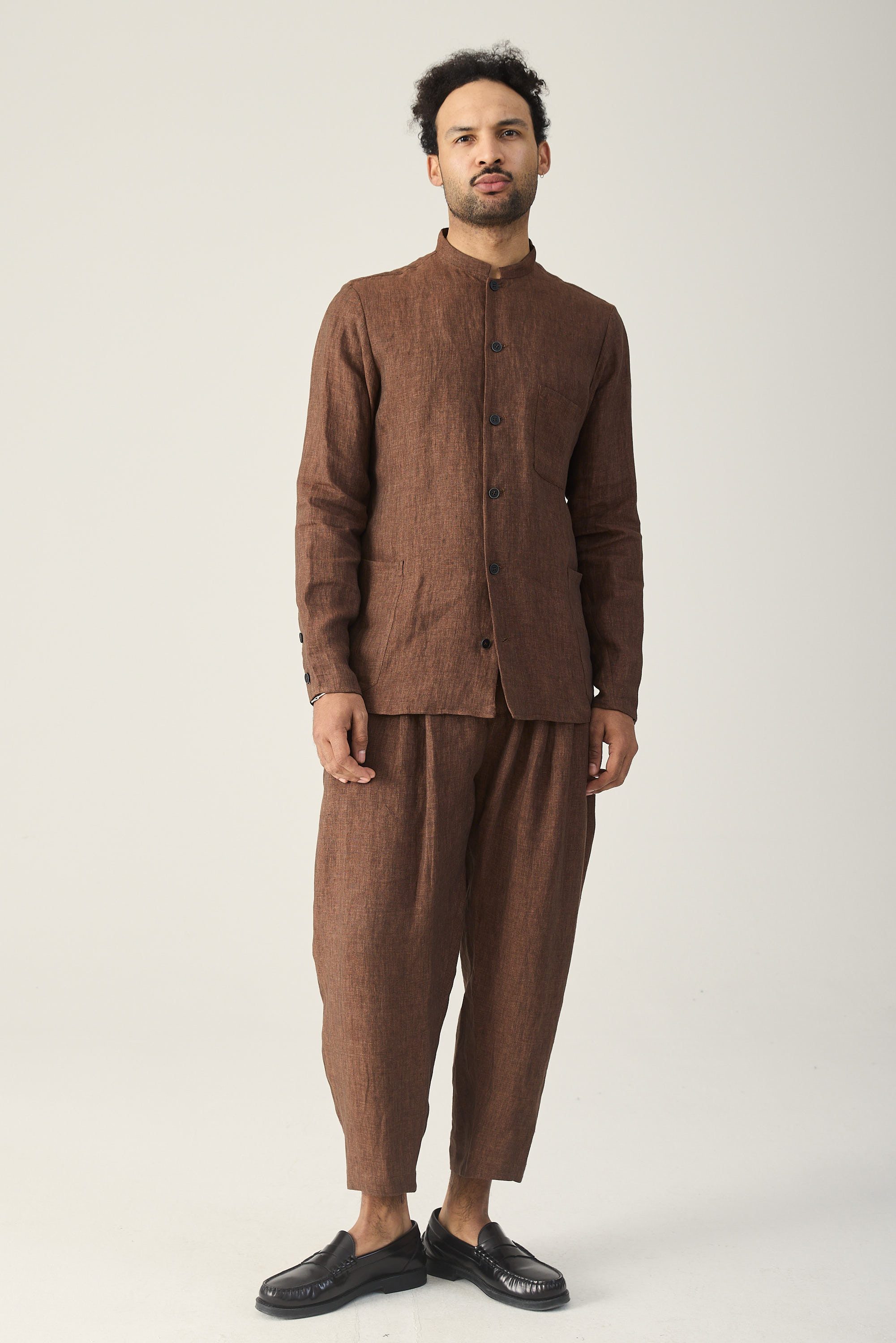 Locker geschnittene 7/8 Hose aus Leinen mit zwei Bundfalten.