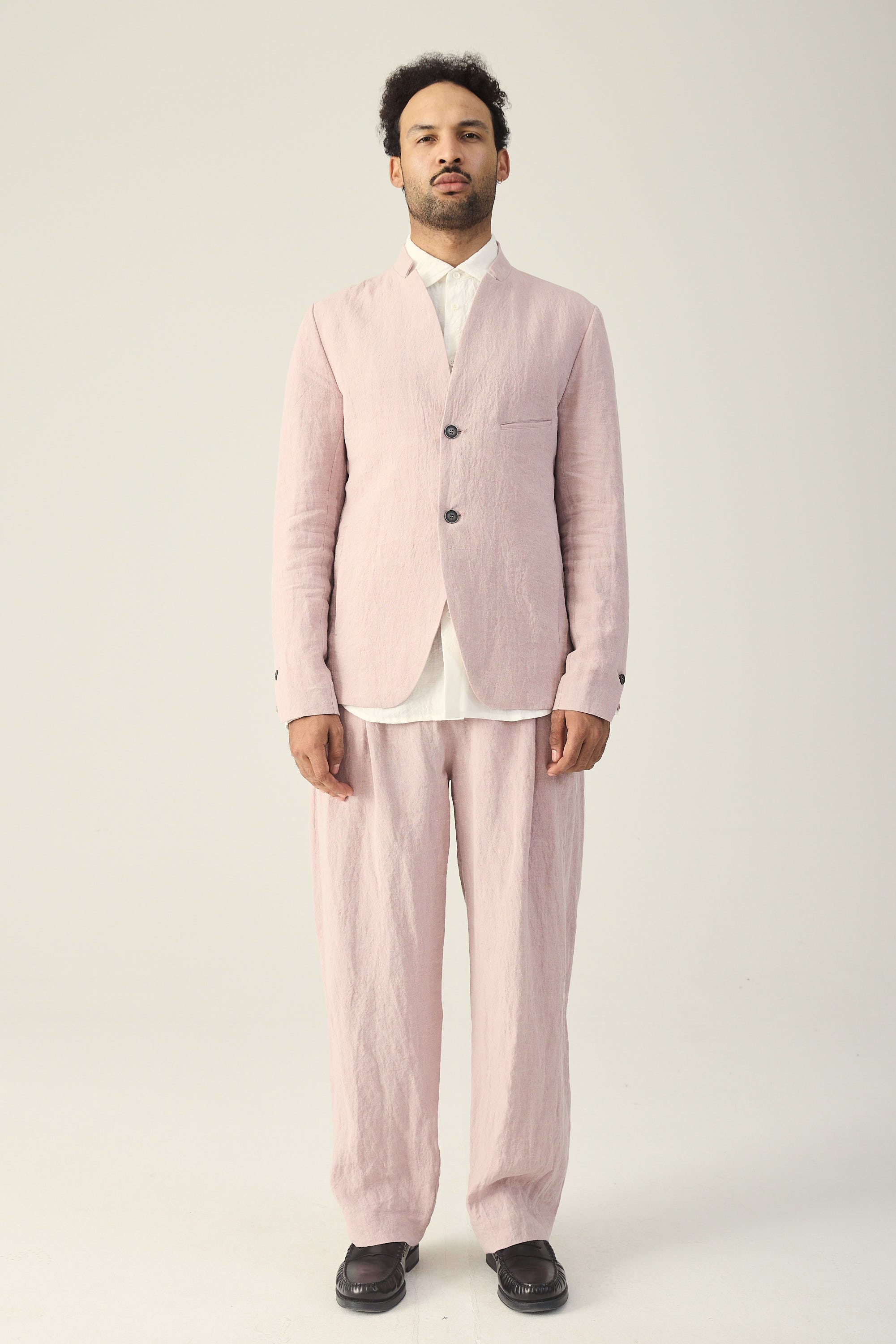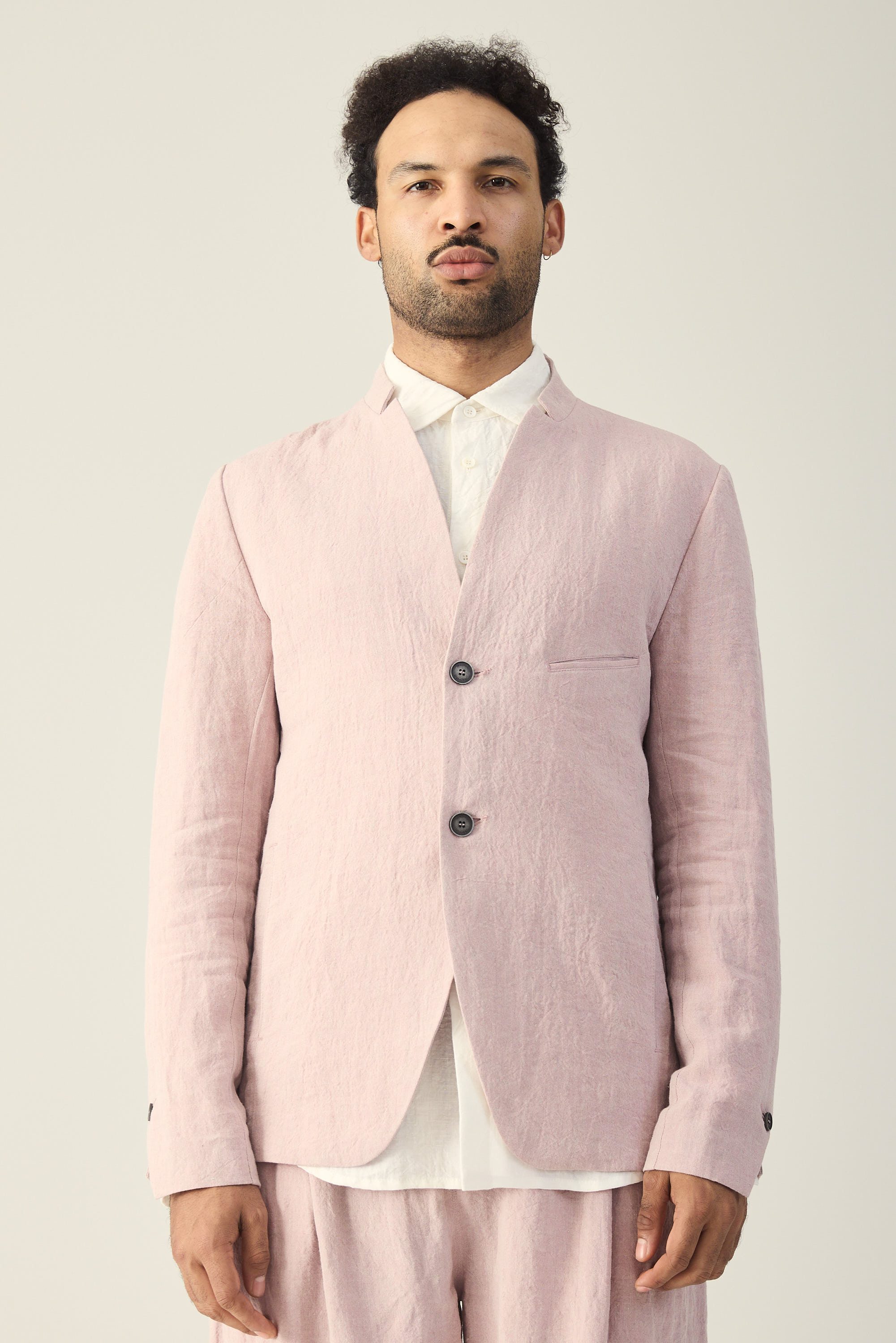 Zweiknopf-Blazer aus Leinen mit Stehkragen.