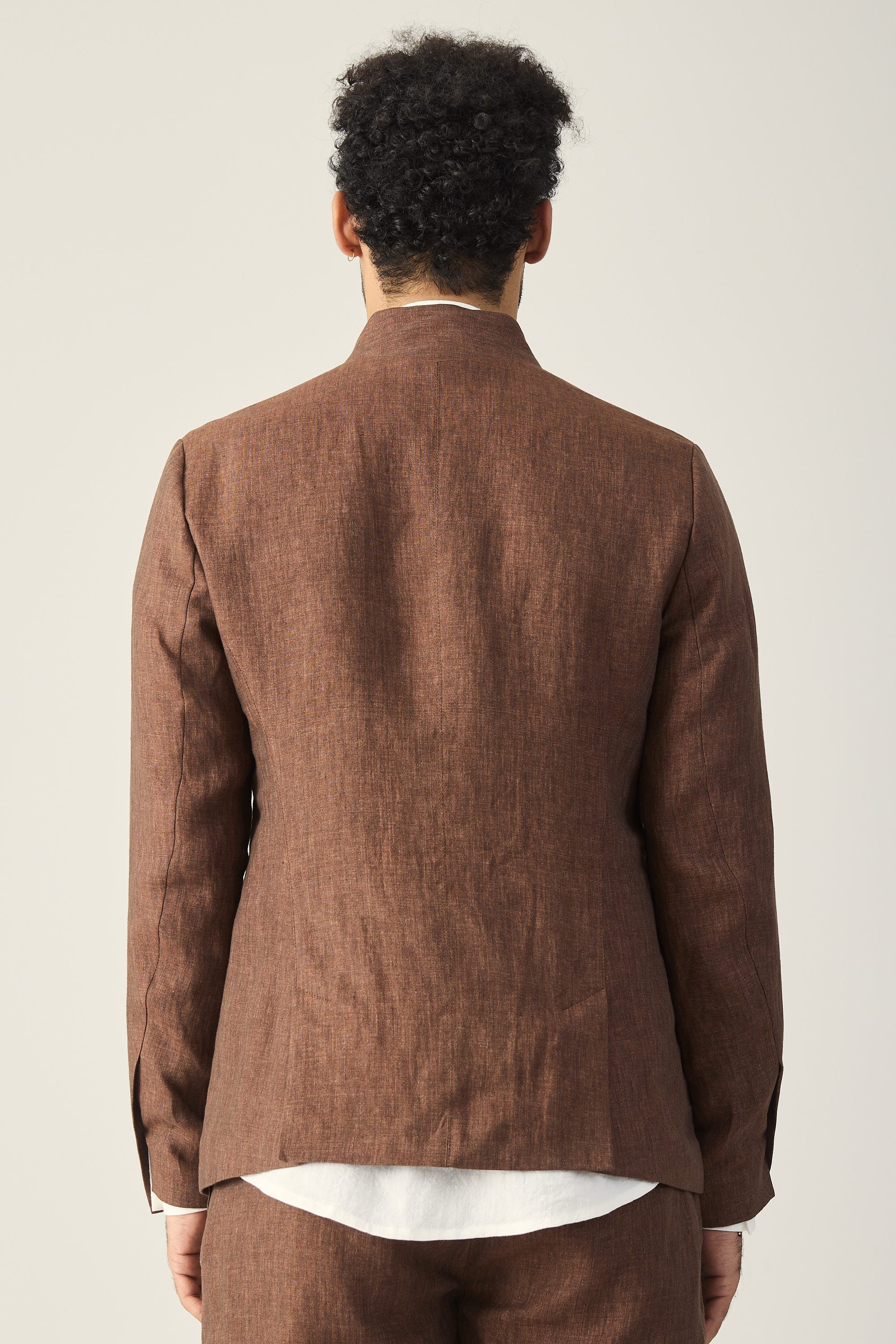 Zweiknopf-Blazer aus Leinen mit Stehkragen.