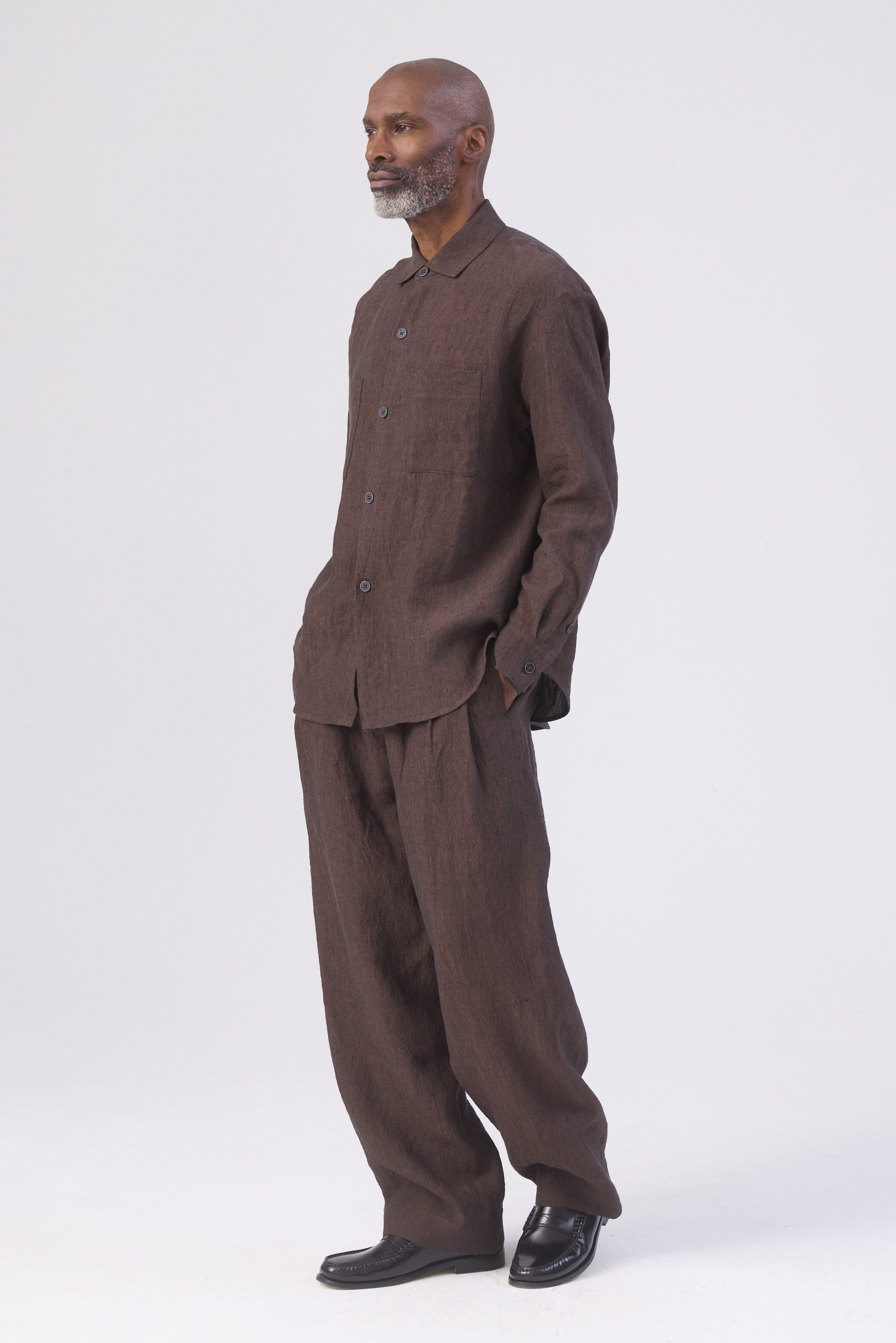 Locker geschnittenes Leinen-Overshirt mit zwei Brusttaschen.