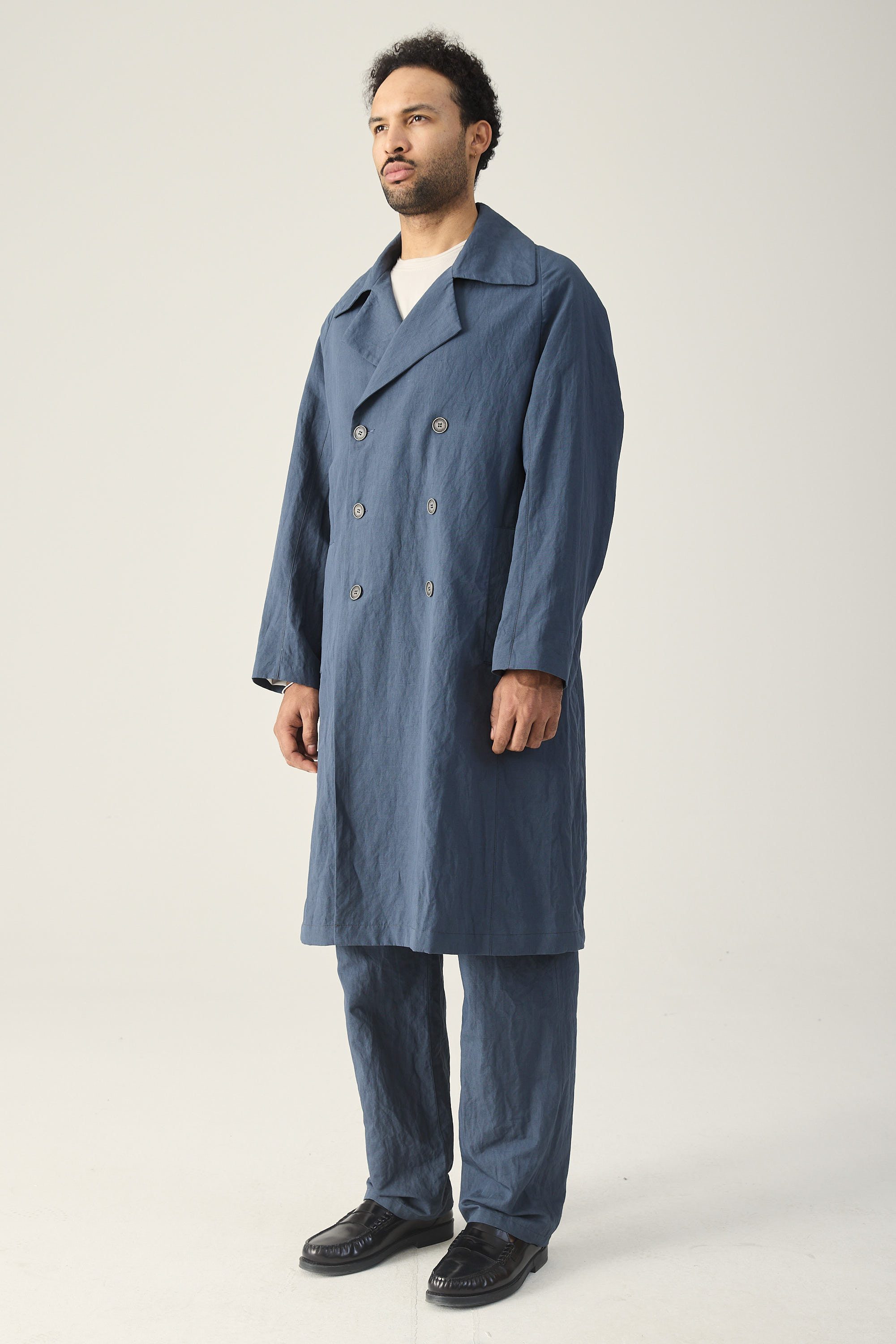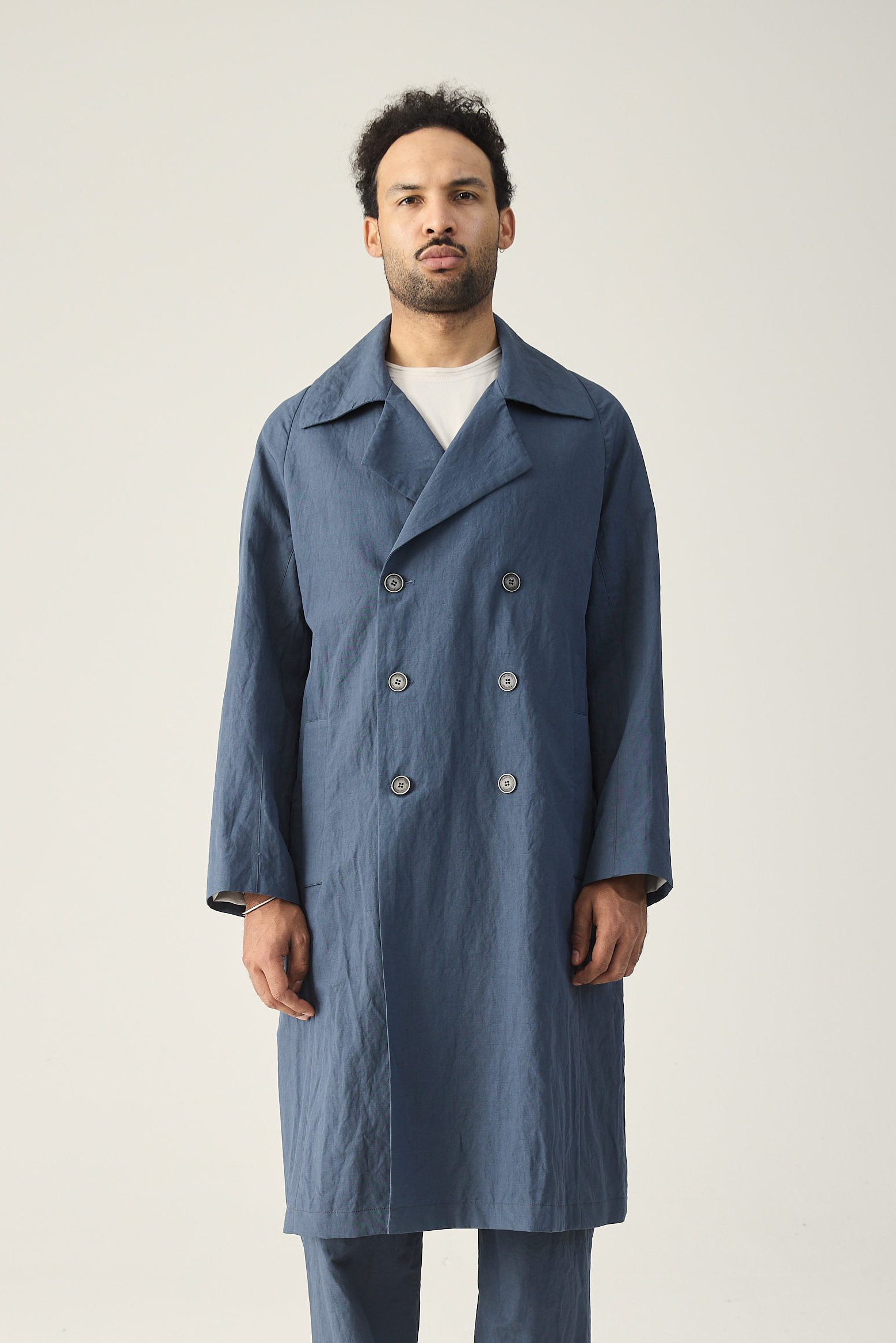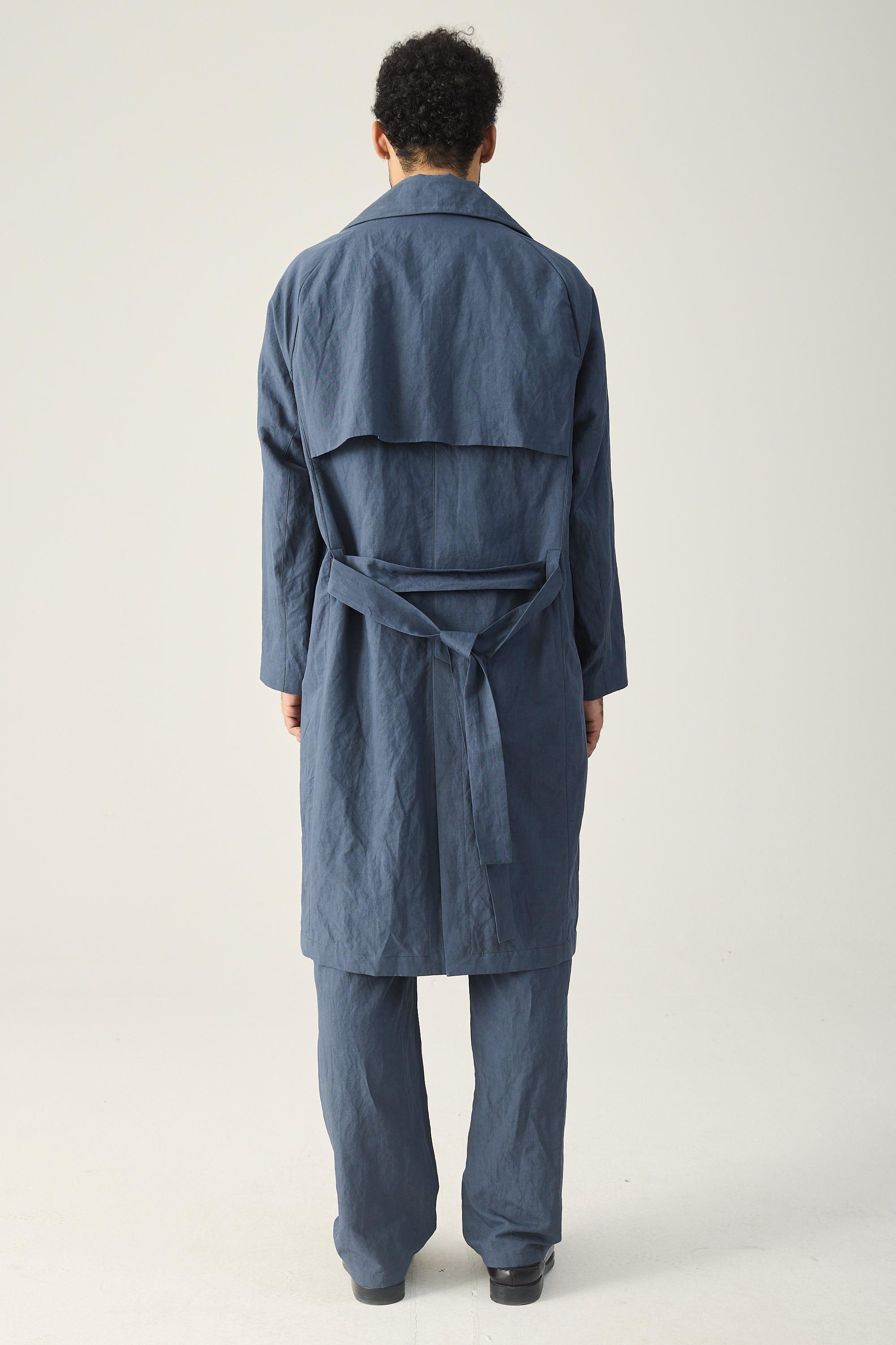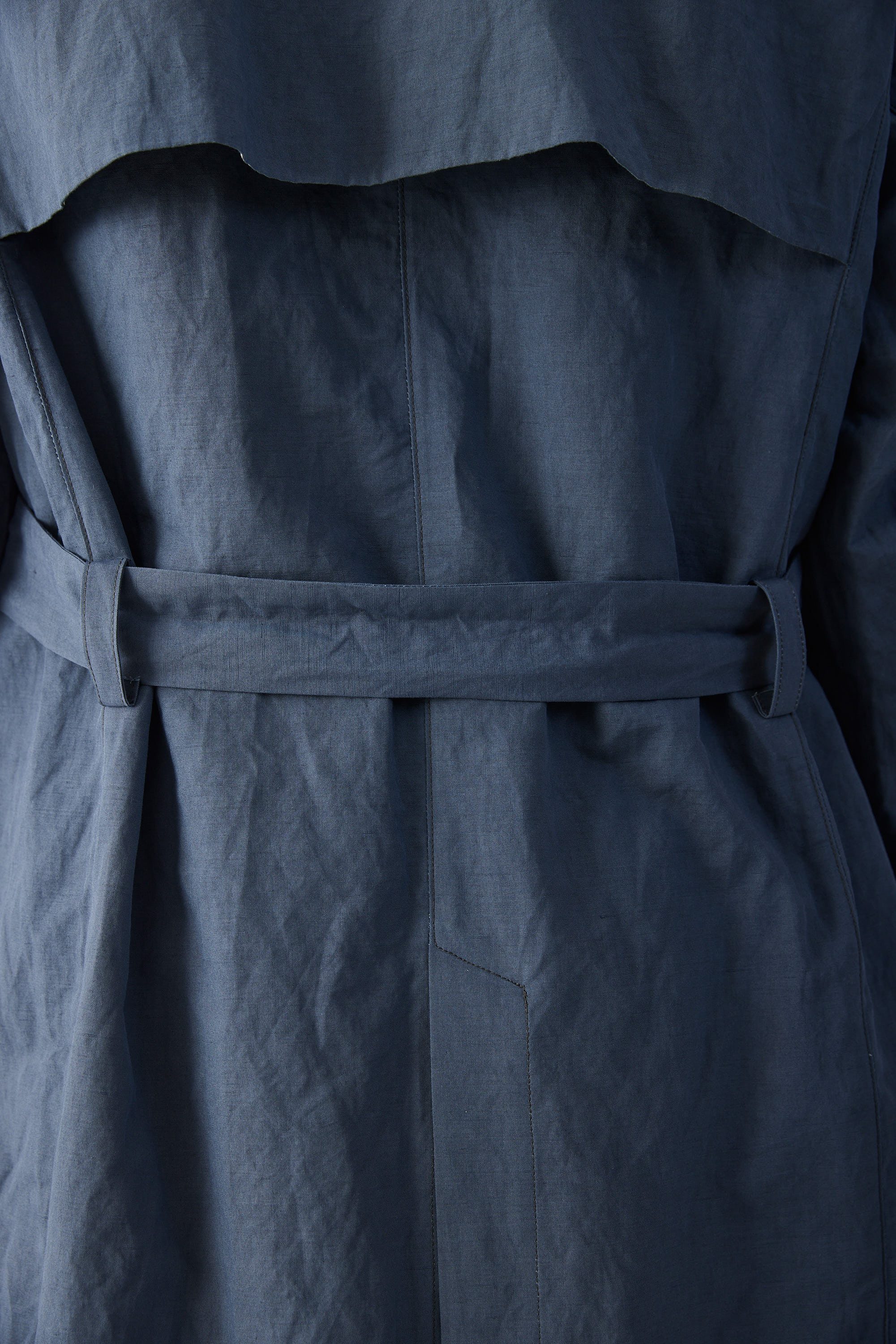 Locker geschnittener mittellanger Trench aus einer Leinen-Baumwoll-Mischnung.