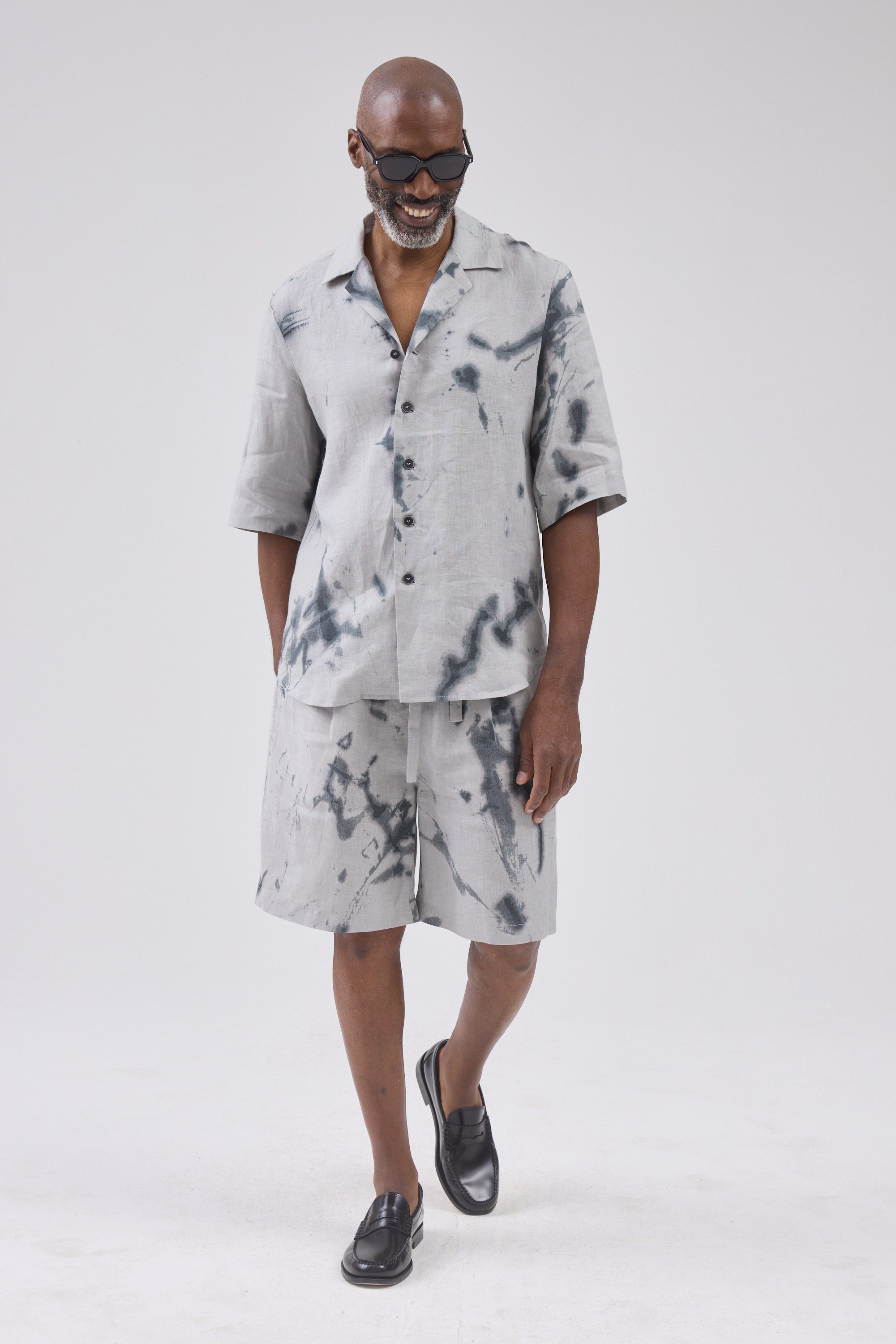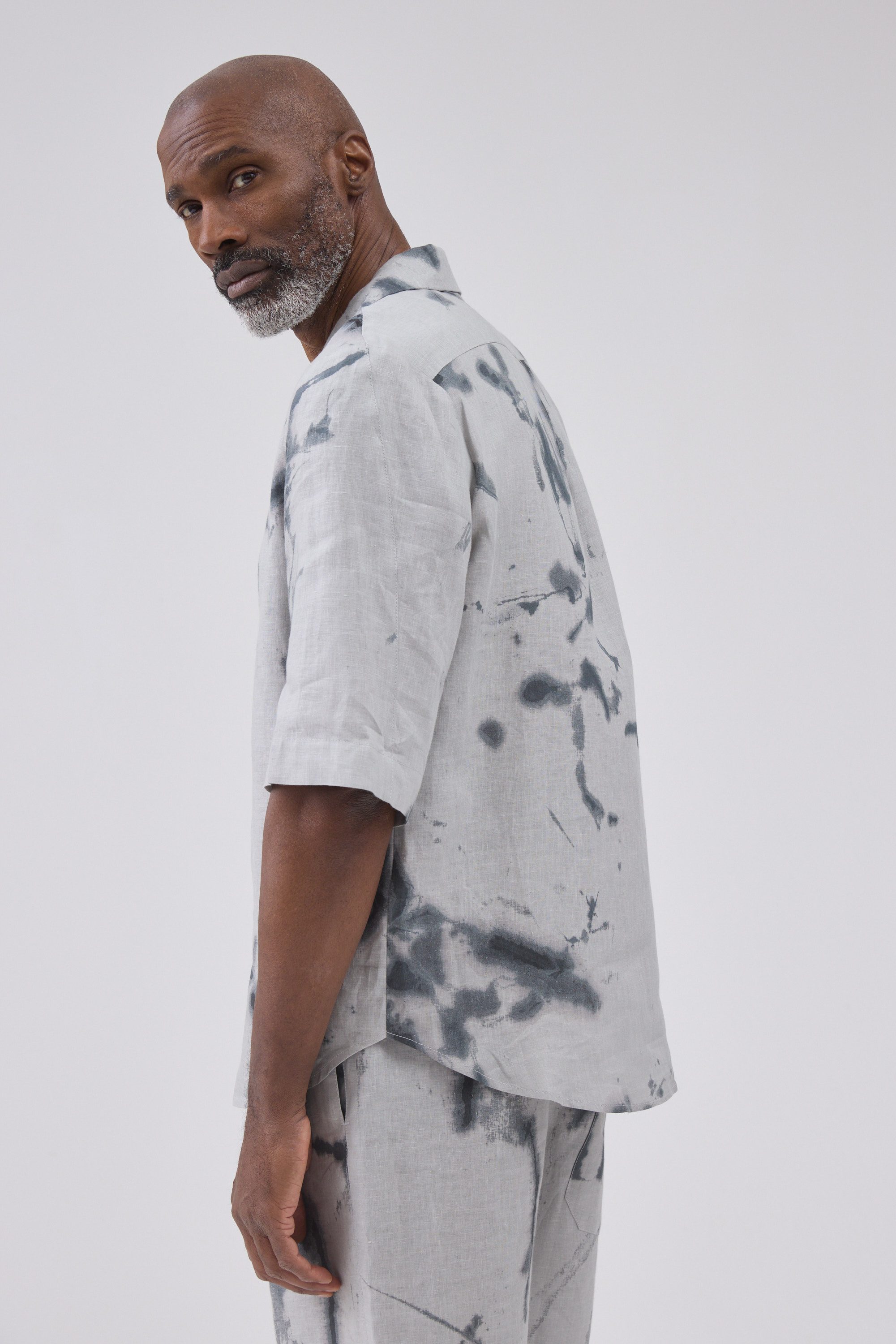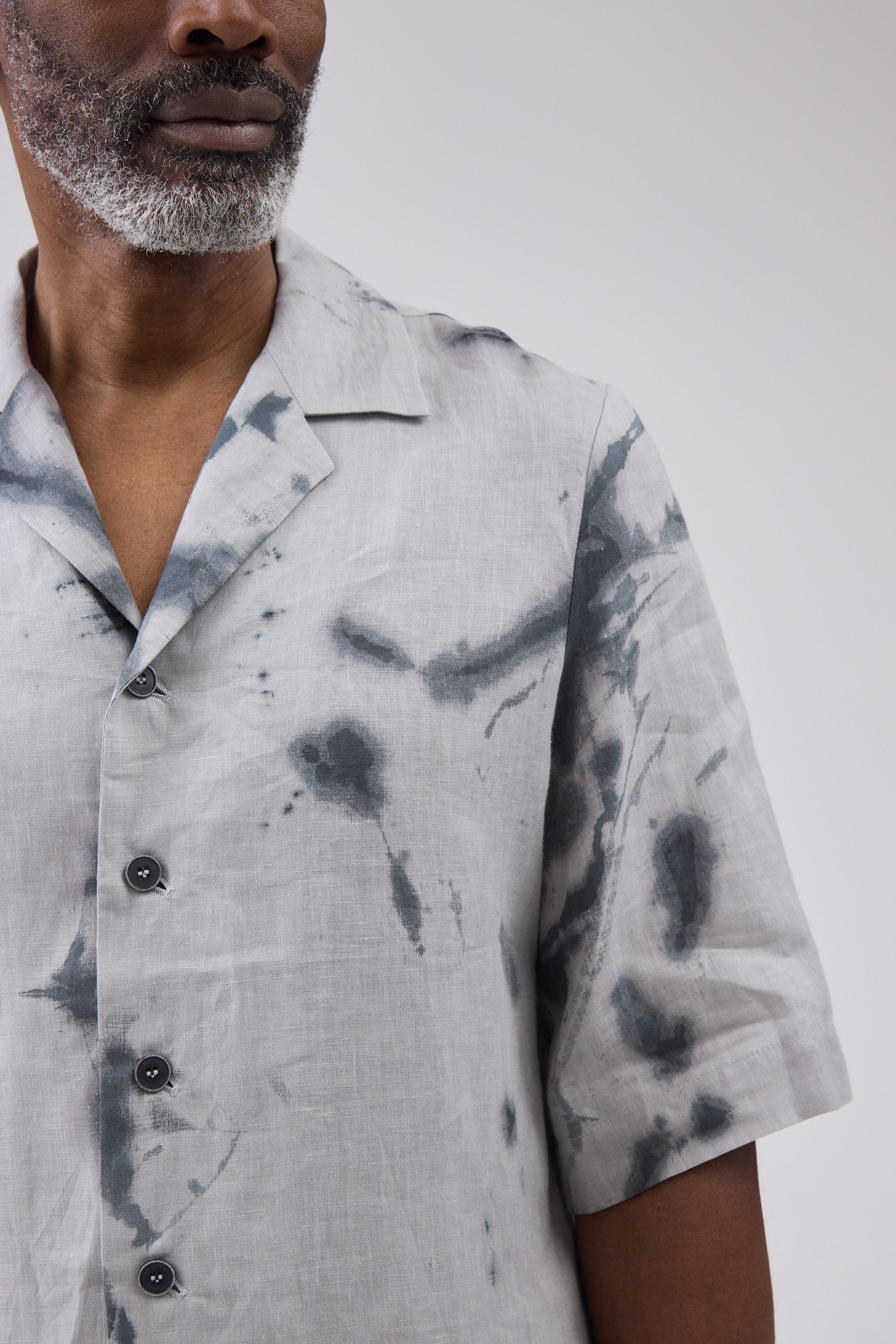 4-button Short-sleeved Jan shirt in a deep space pattern.