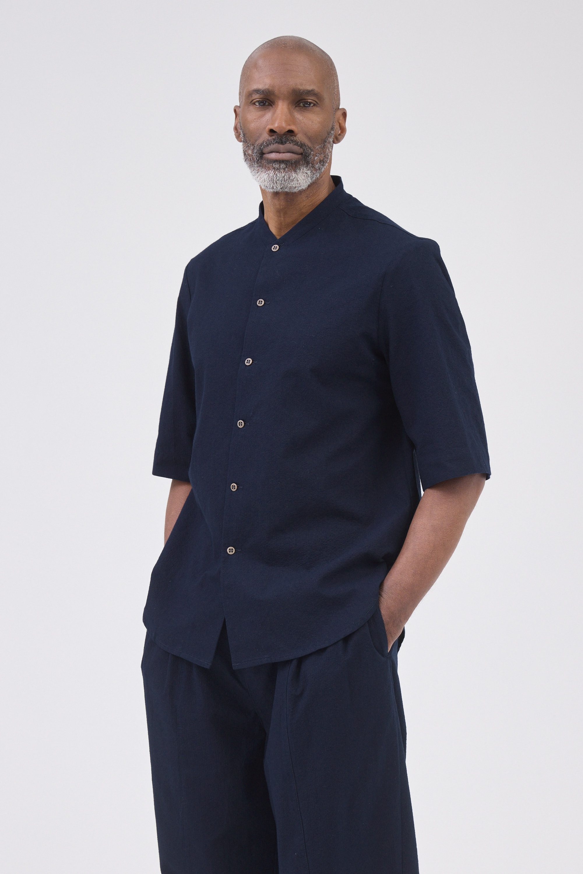 6-button regular fit Short-sleeved Shirt, woven from 100% pure cotton.