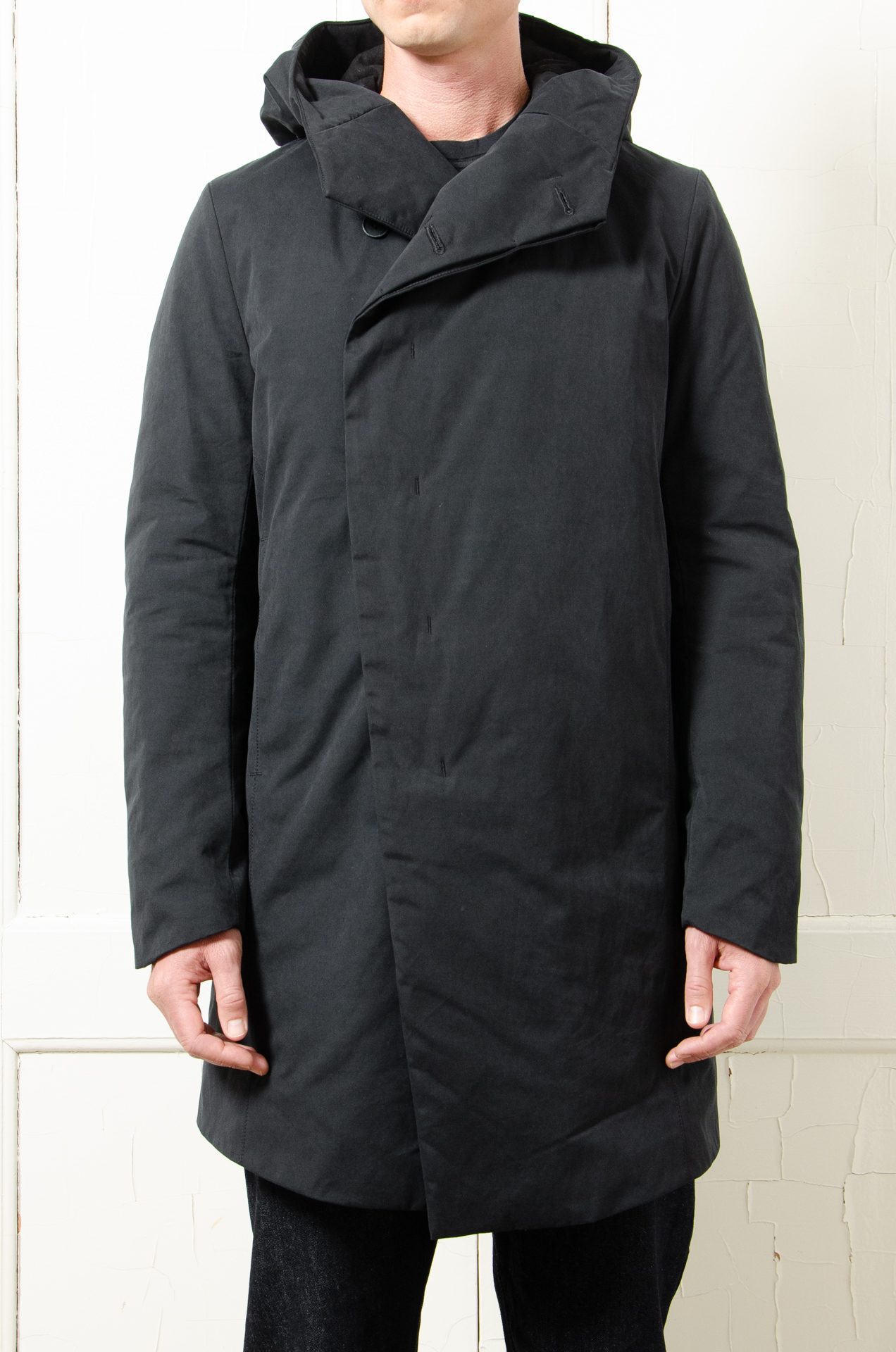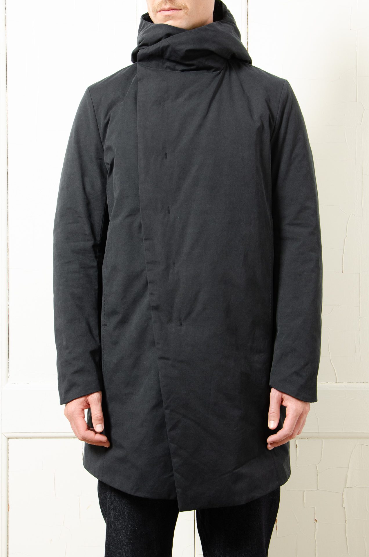 wasserabweisender gewachster baumwollparka mit kapuze und knopfverschluss.