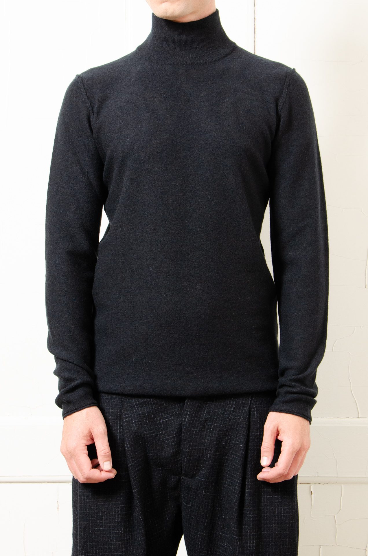 dünner rollkragenpullover aus weicher lammwolle mit sichtbaren schulternähten.