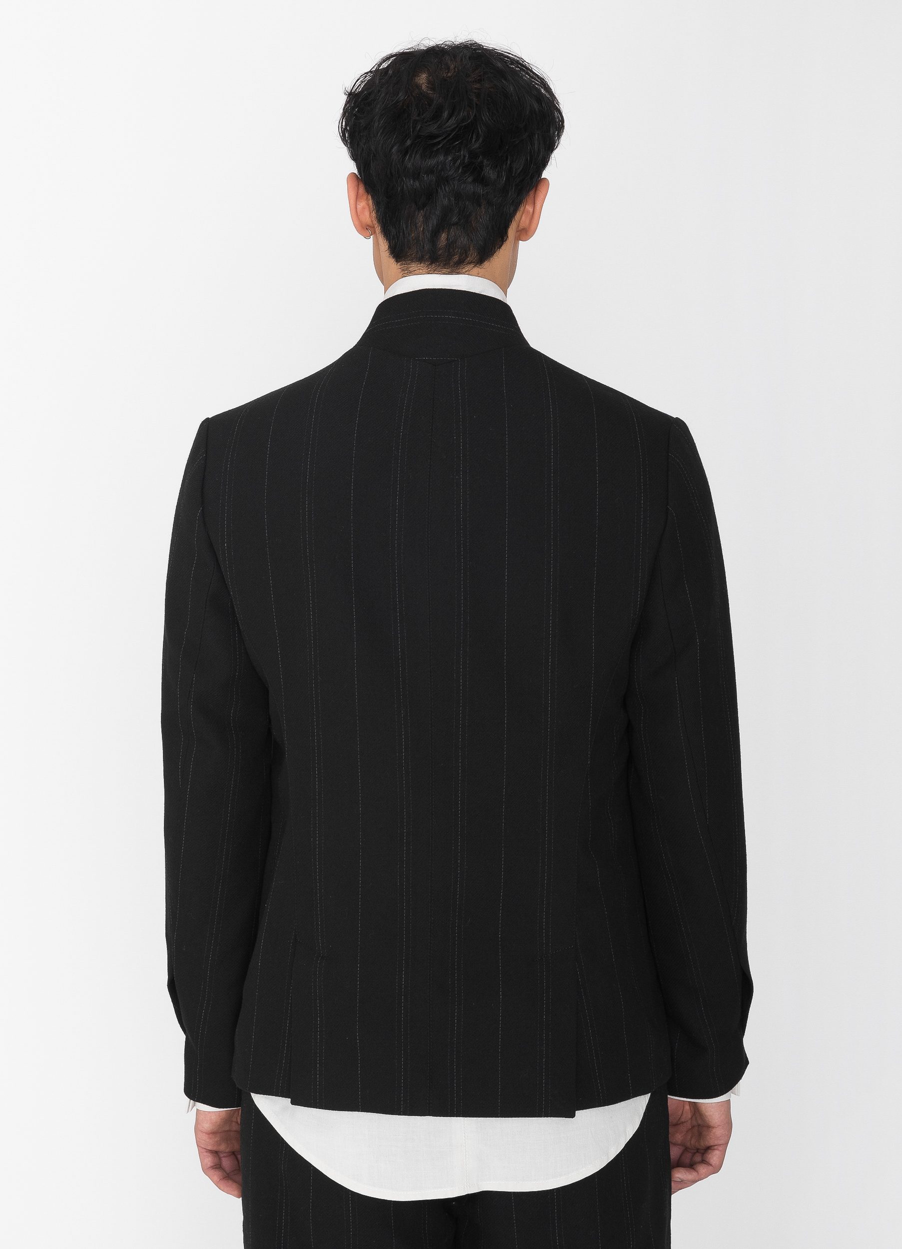 Einreihiges feingestreiftes Woll-Baumwoll Sakko mit Stehkragen