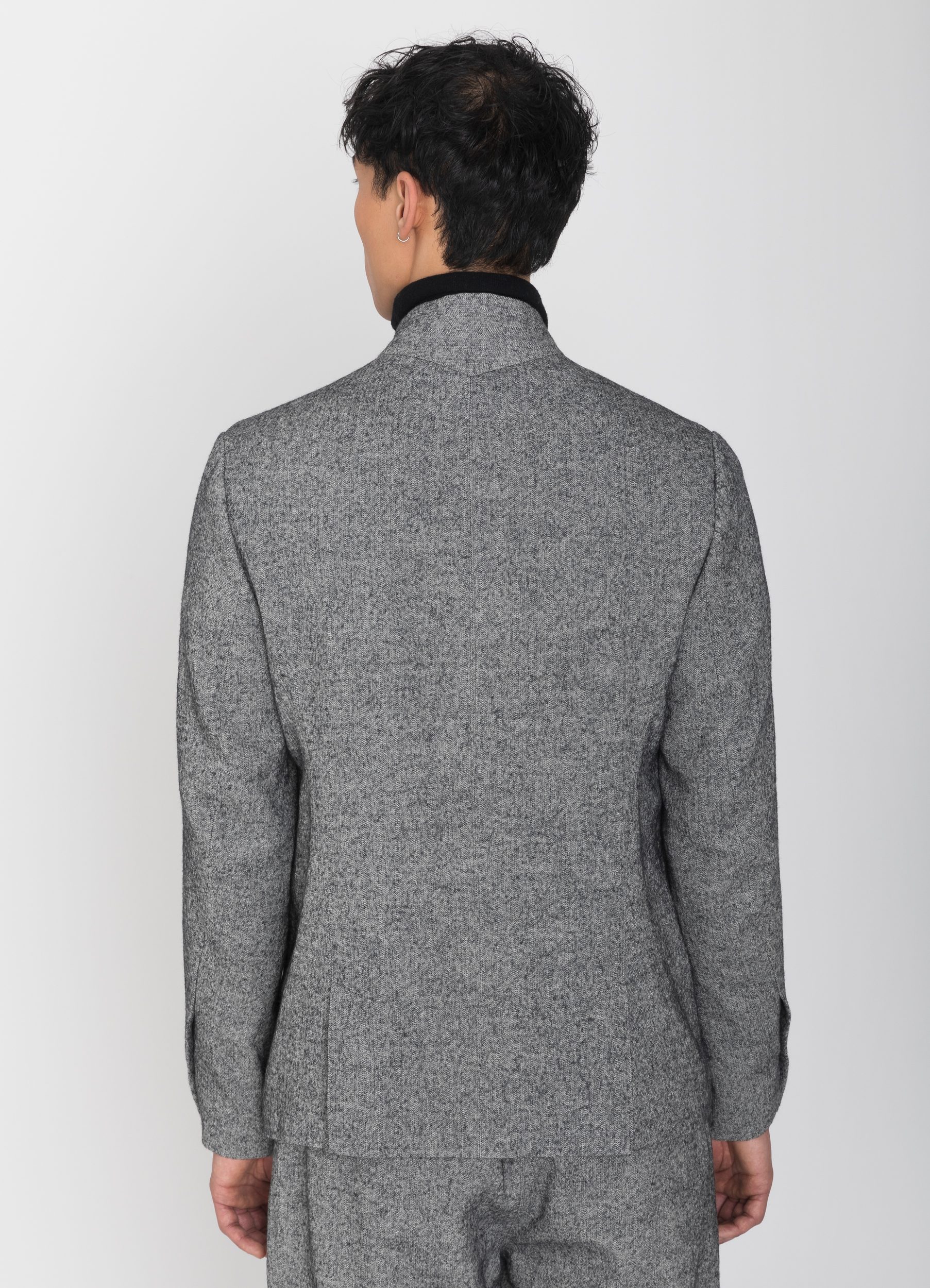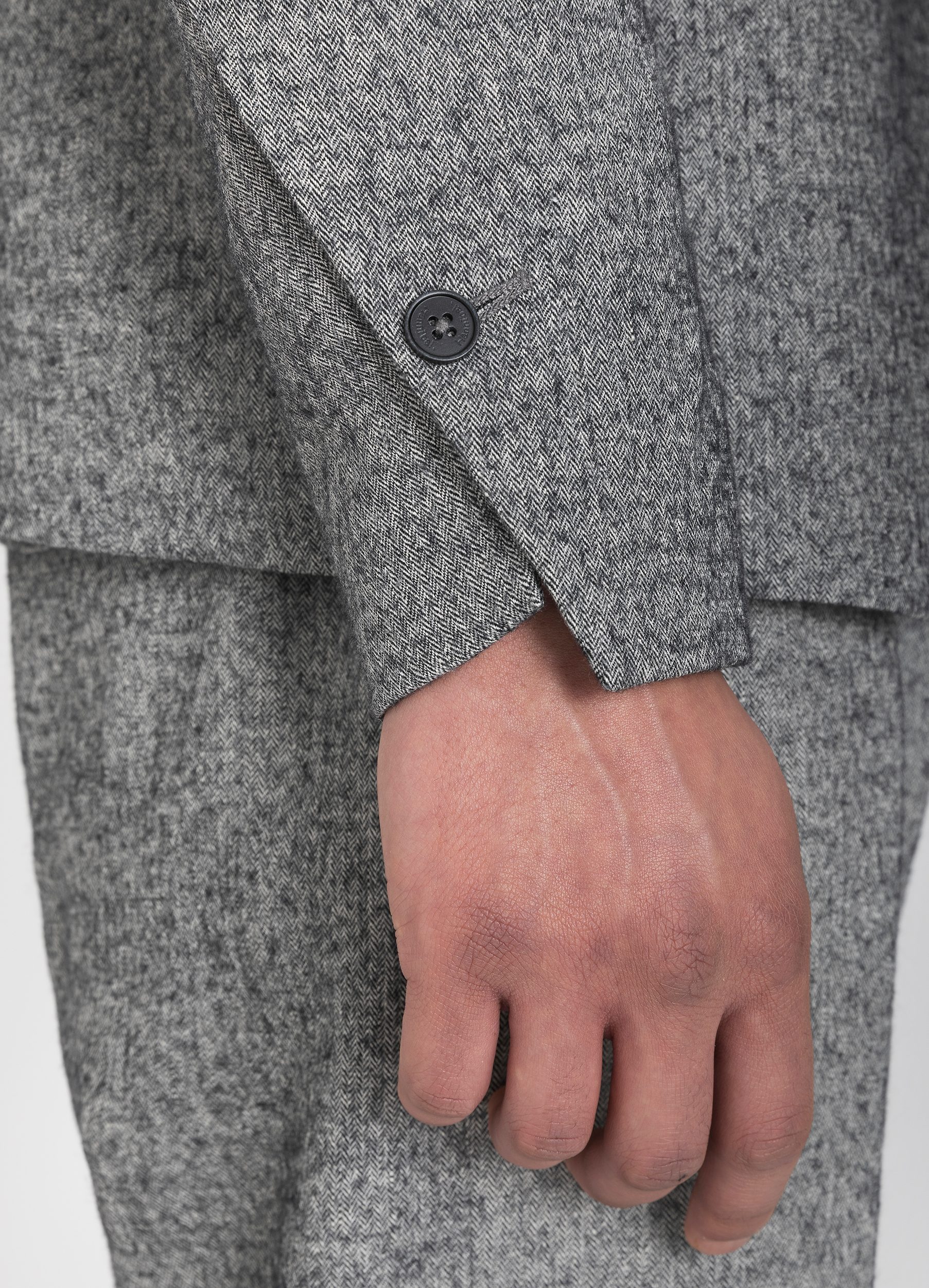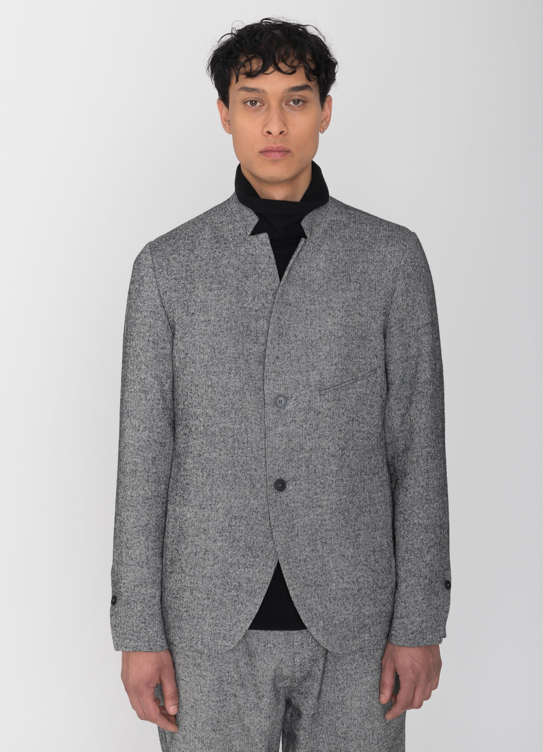 Einreihiges Sakko mit Stehkragen aus einem Hanf-Schurwoll-Gemisch