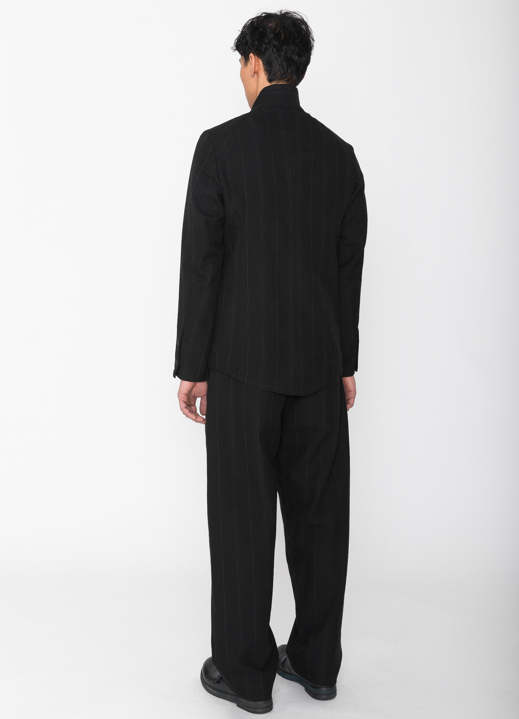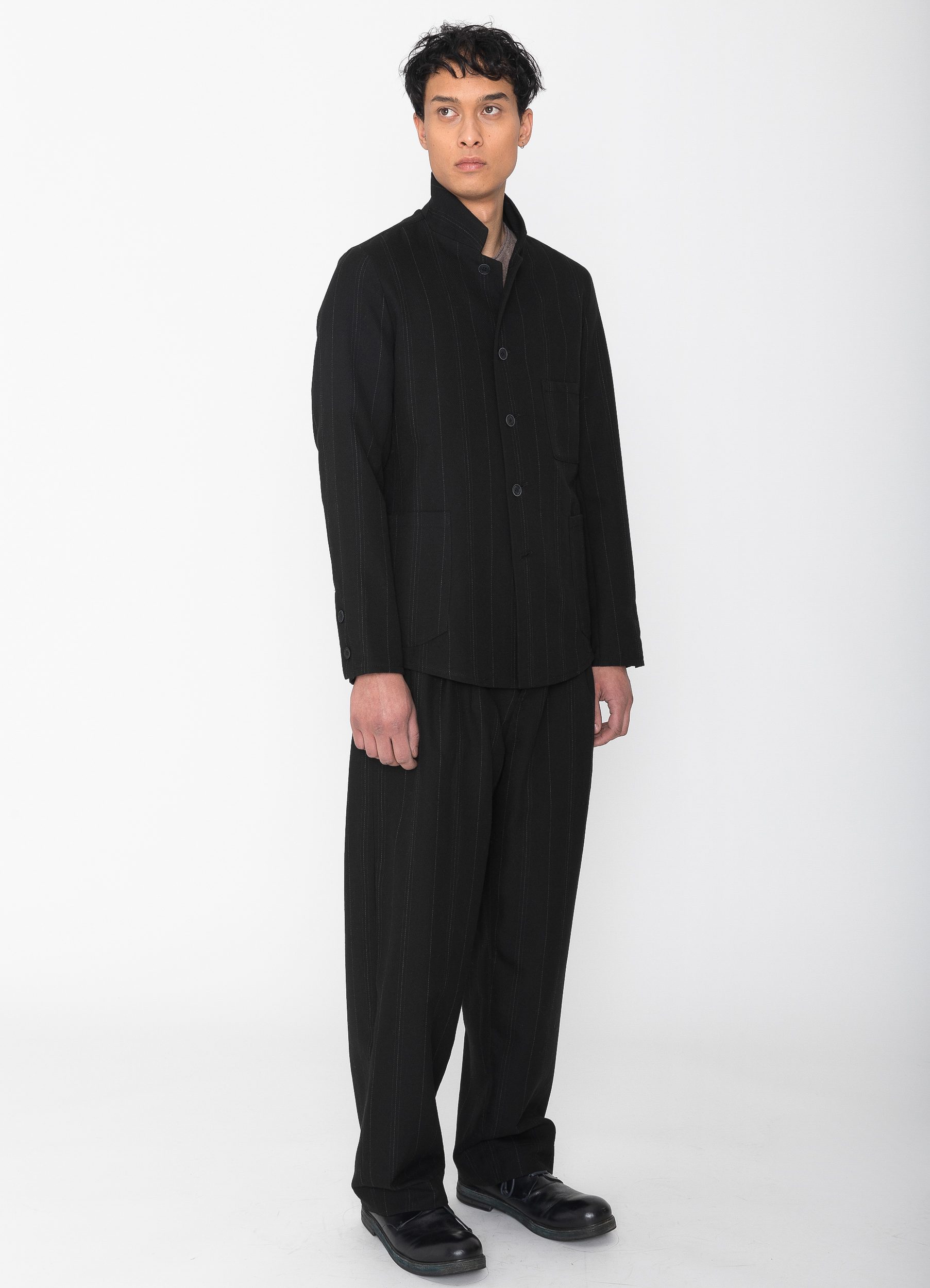 Fein gestreifte Jacke mit aufgesetzten Taschen aus einer Woll-Baumwoll-Mischung