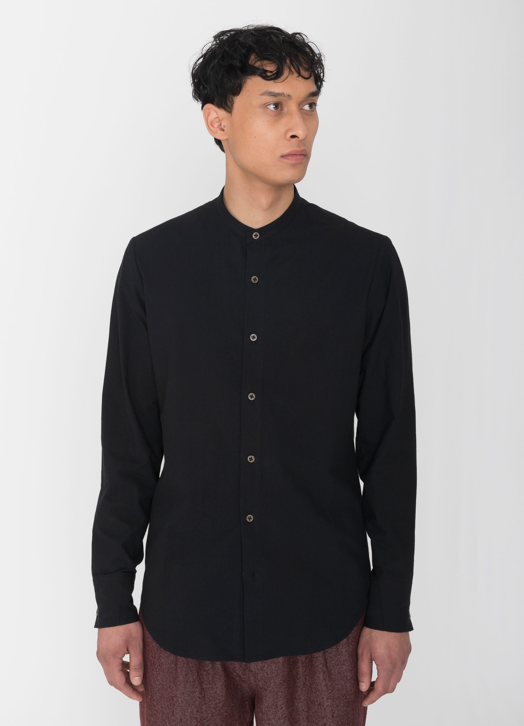Regulär geschnittenes Baumwollhemd mit Stehkragen