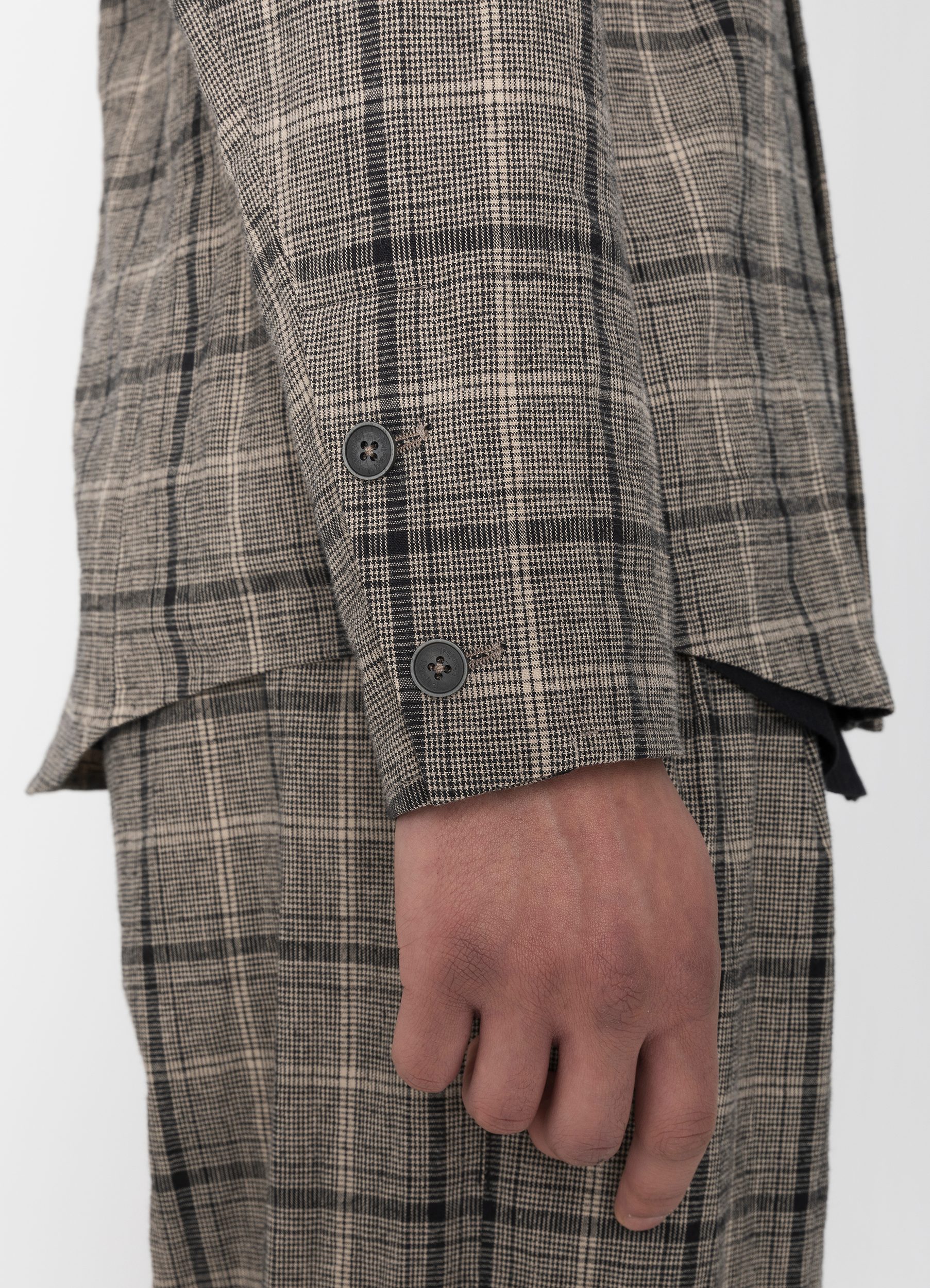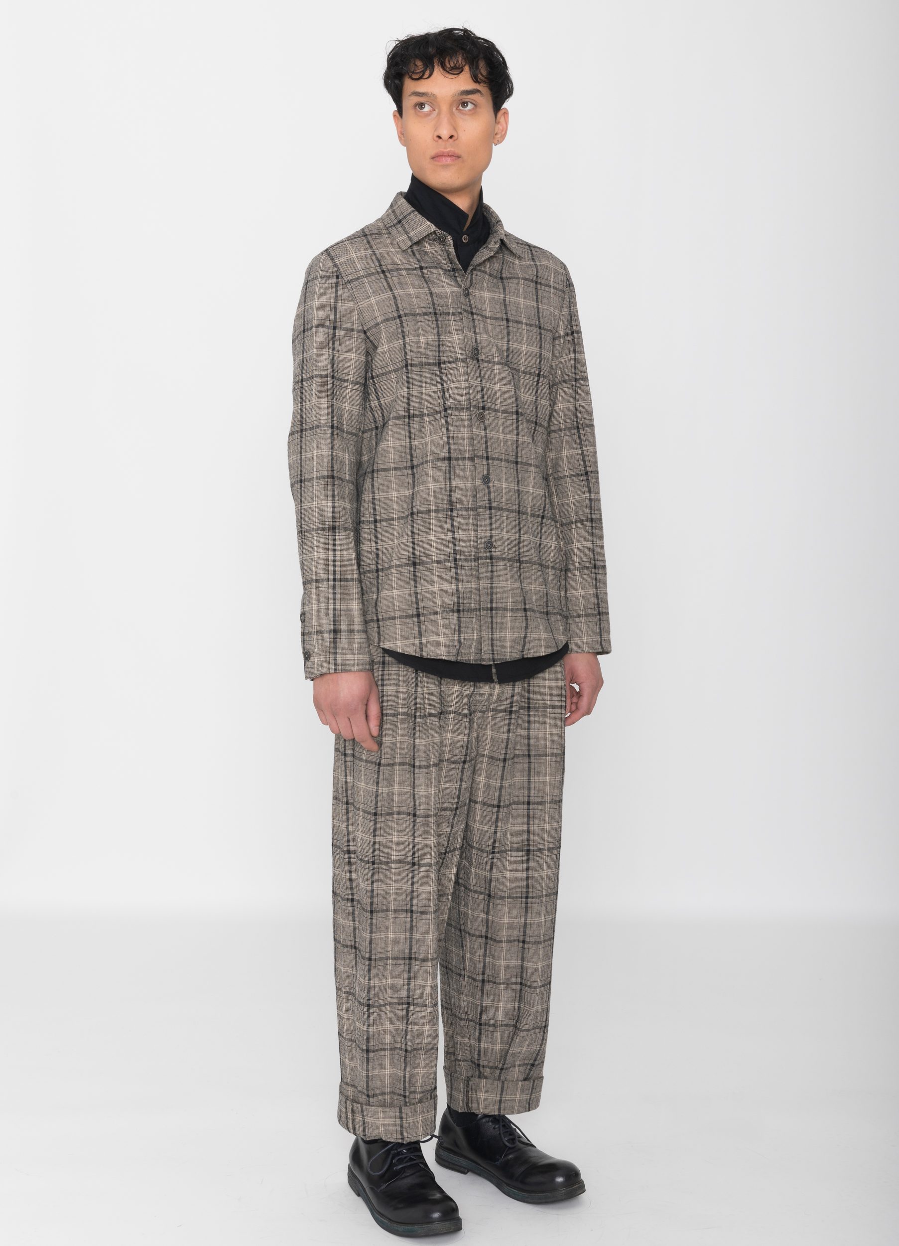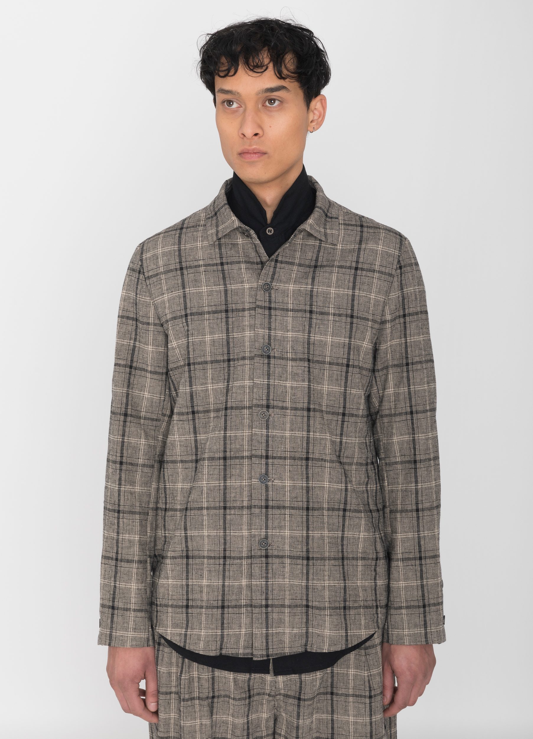 Kariertes Leinen-Baumwolldhemd mit Klappkragen