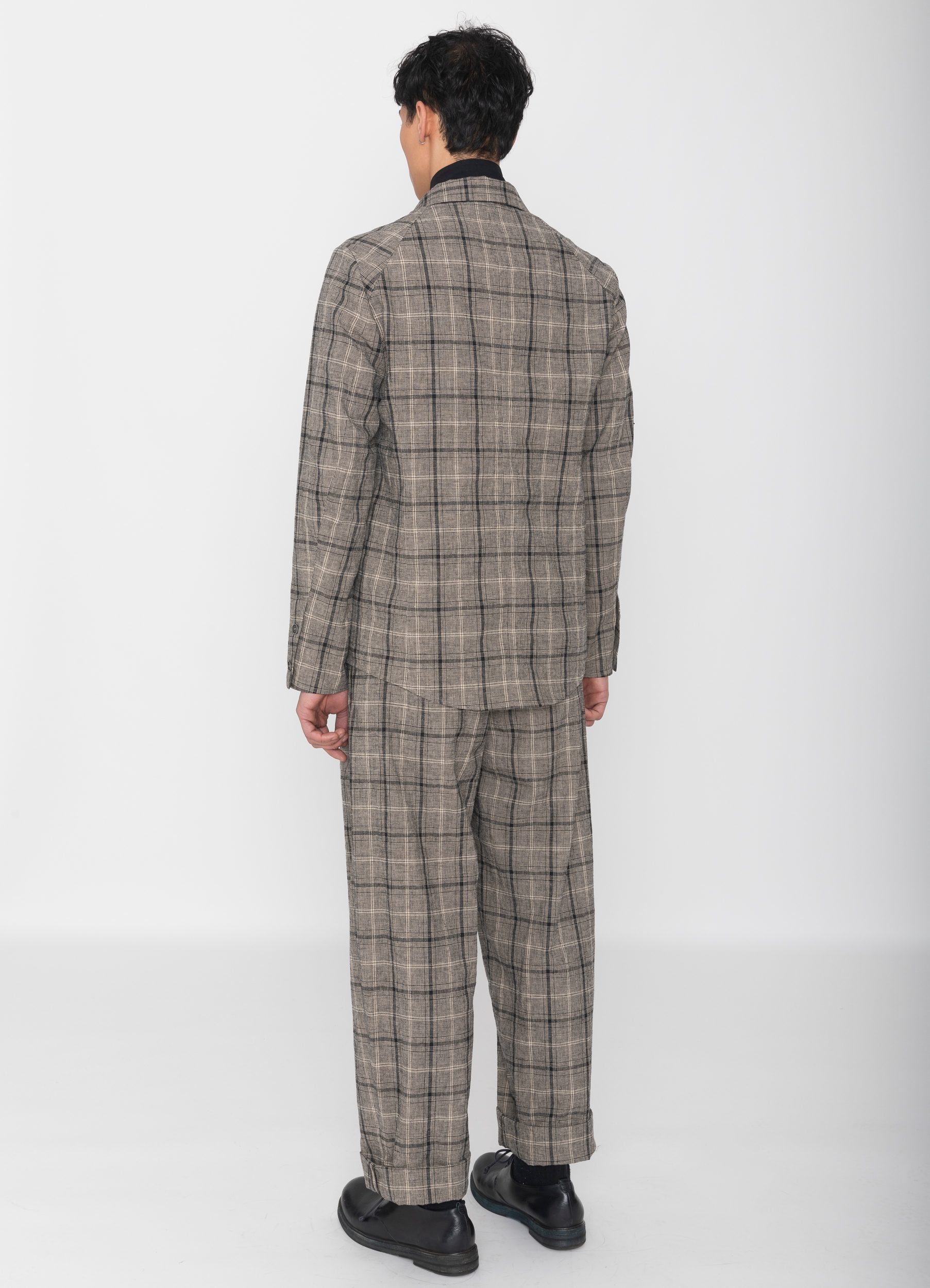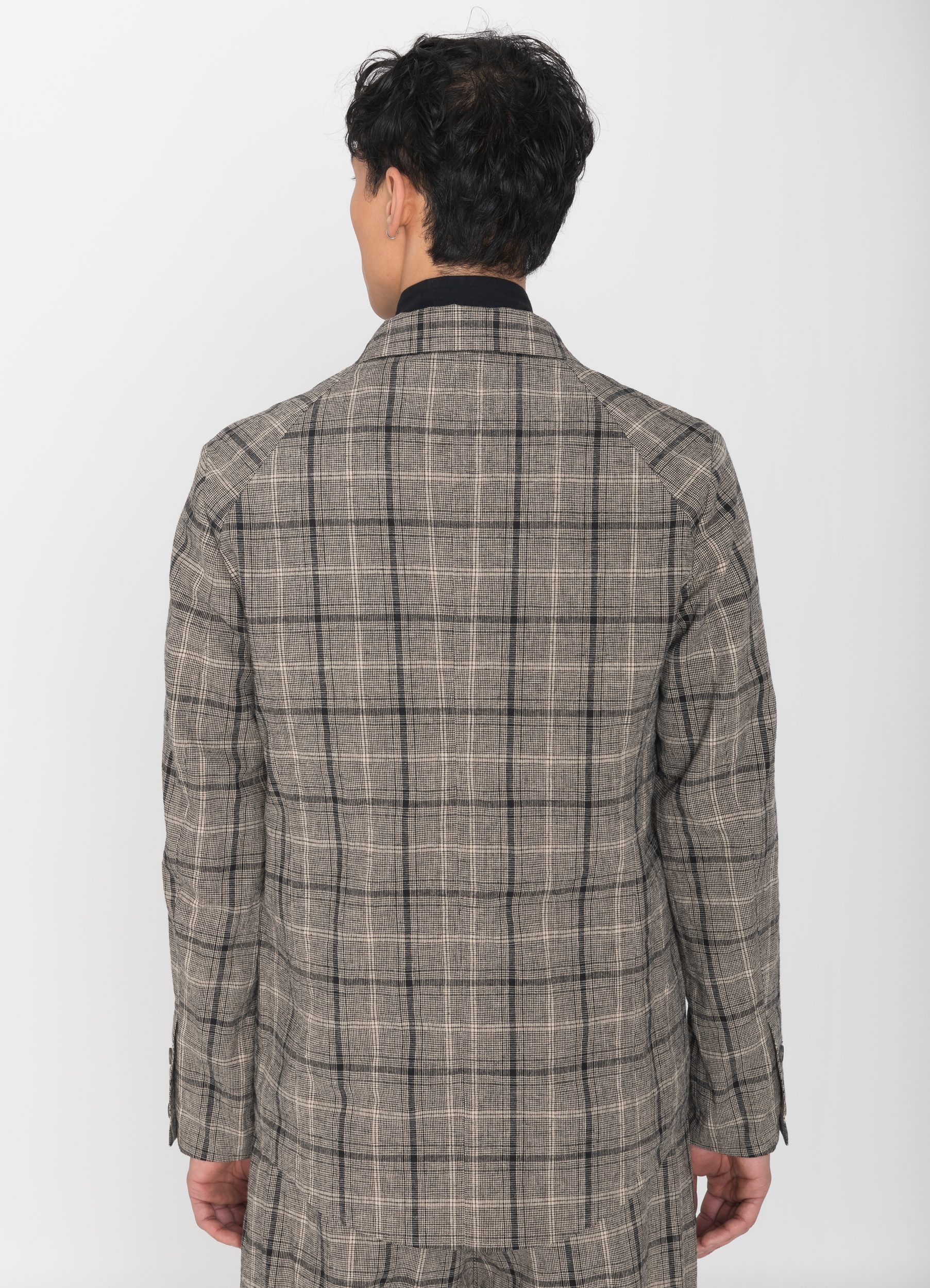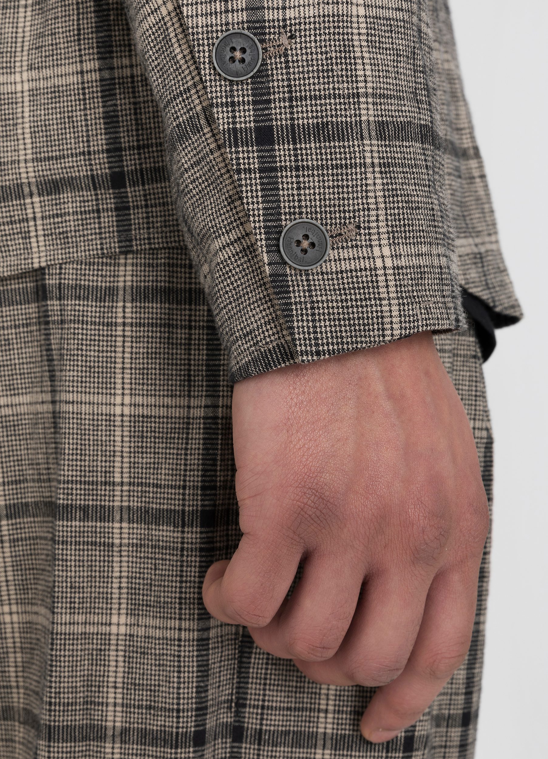 Kariertes Leinen-Baumwolldhemd mit Klappkragen