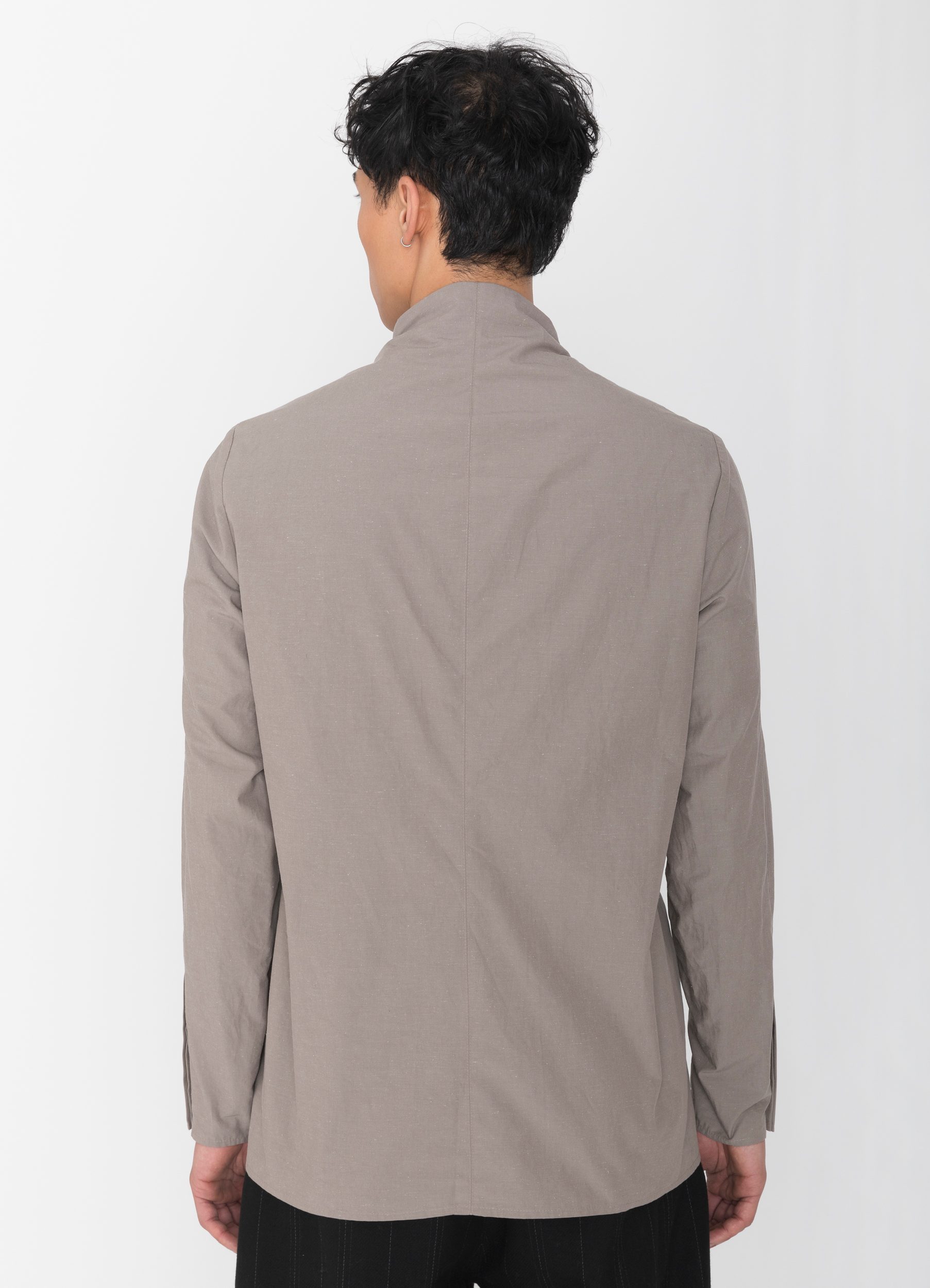Baumwoll-Leinen Hemd mit Stehkragen und verdeckter Knopfleiste