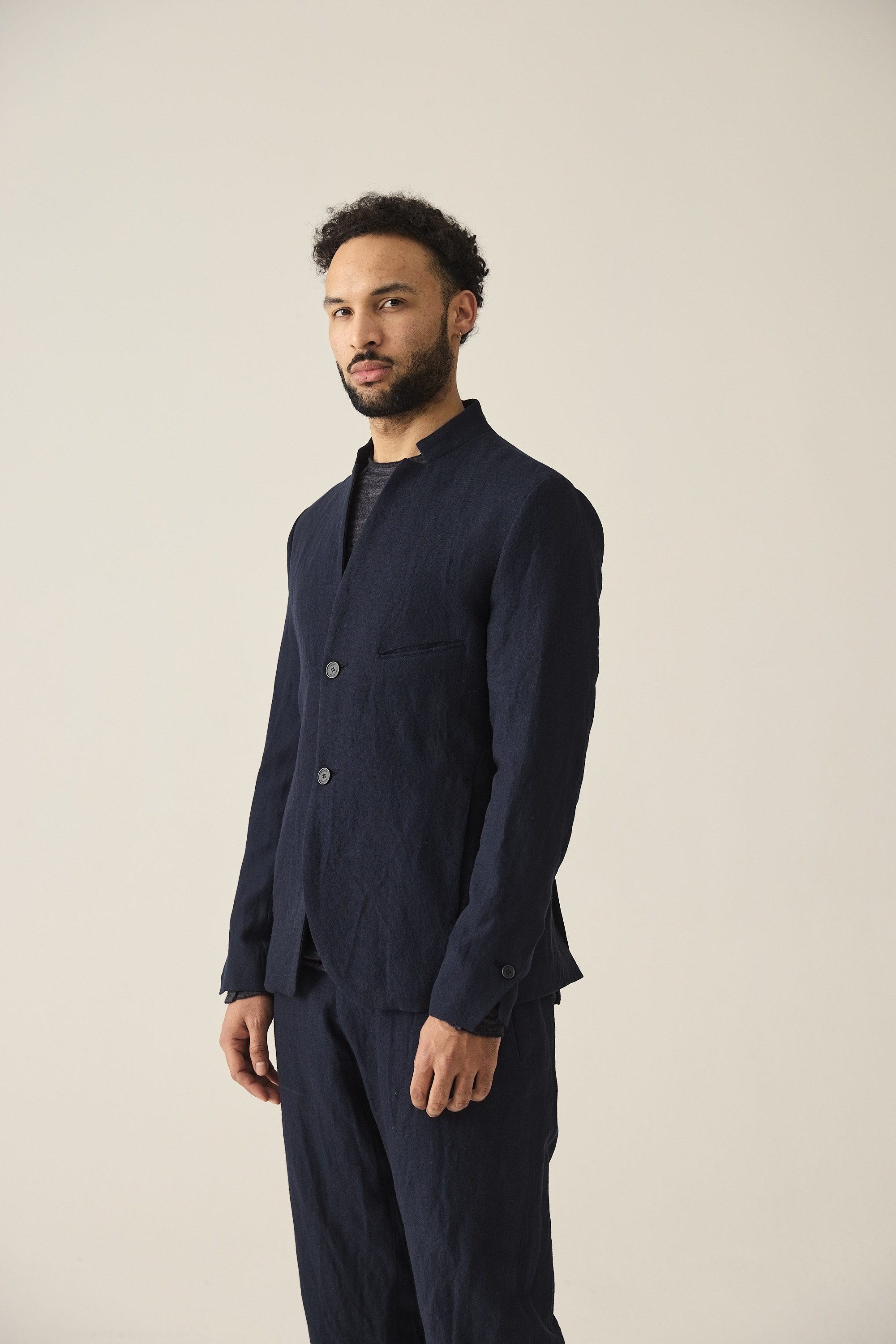 Gefüttertes Zweiknopf-Sakko mit Stehkragen.