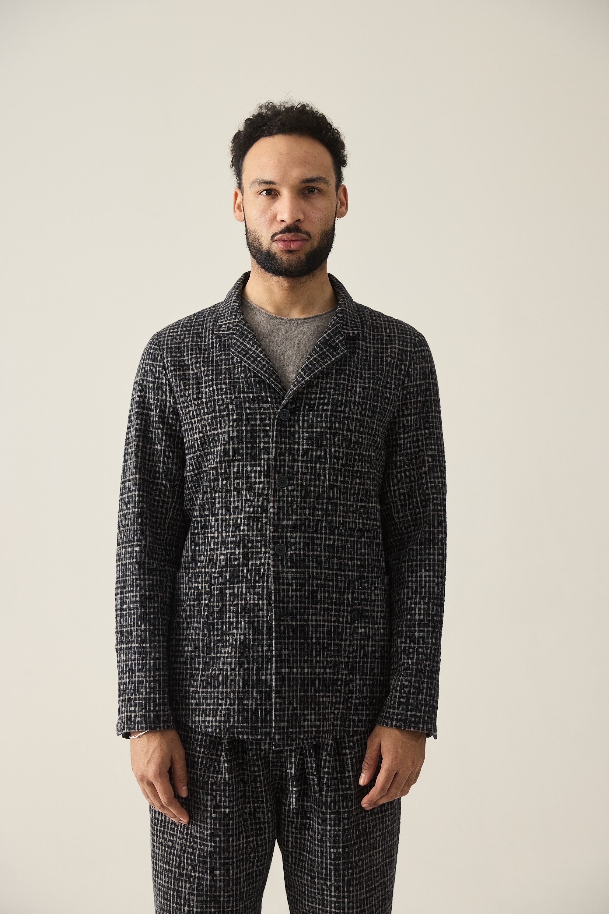 Regulär geschnittene halbgefütterte Jacke mit 3 aufgesetzten Taschen und Hybrid-Kragen.