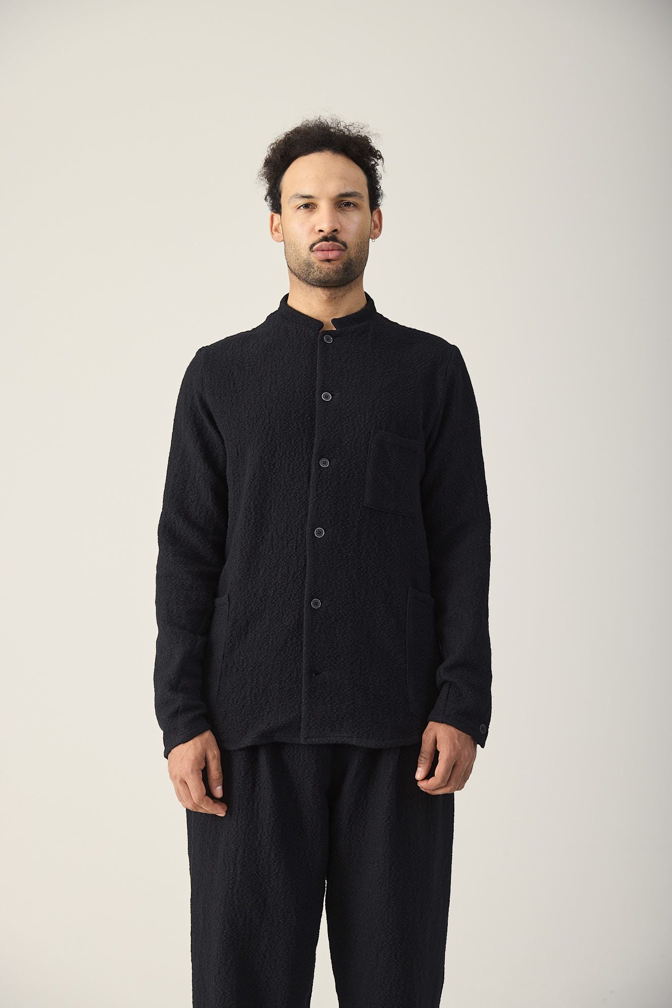 Regulär geschnittenes Overshirt aus einem Baumwoll-Woll-Gemisch mit drei aufgesetzten Taschen.