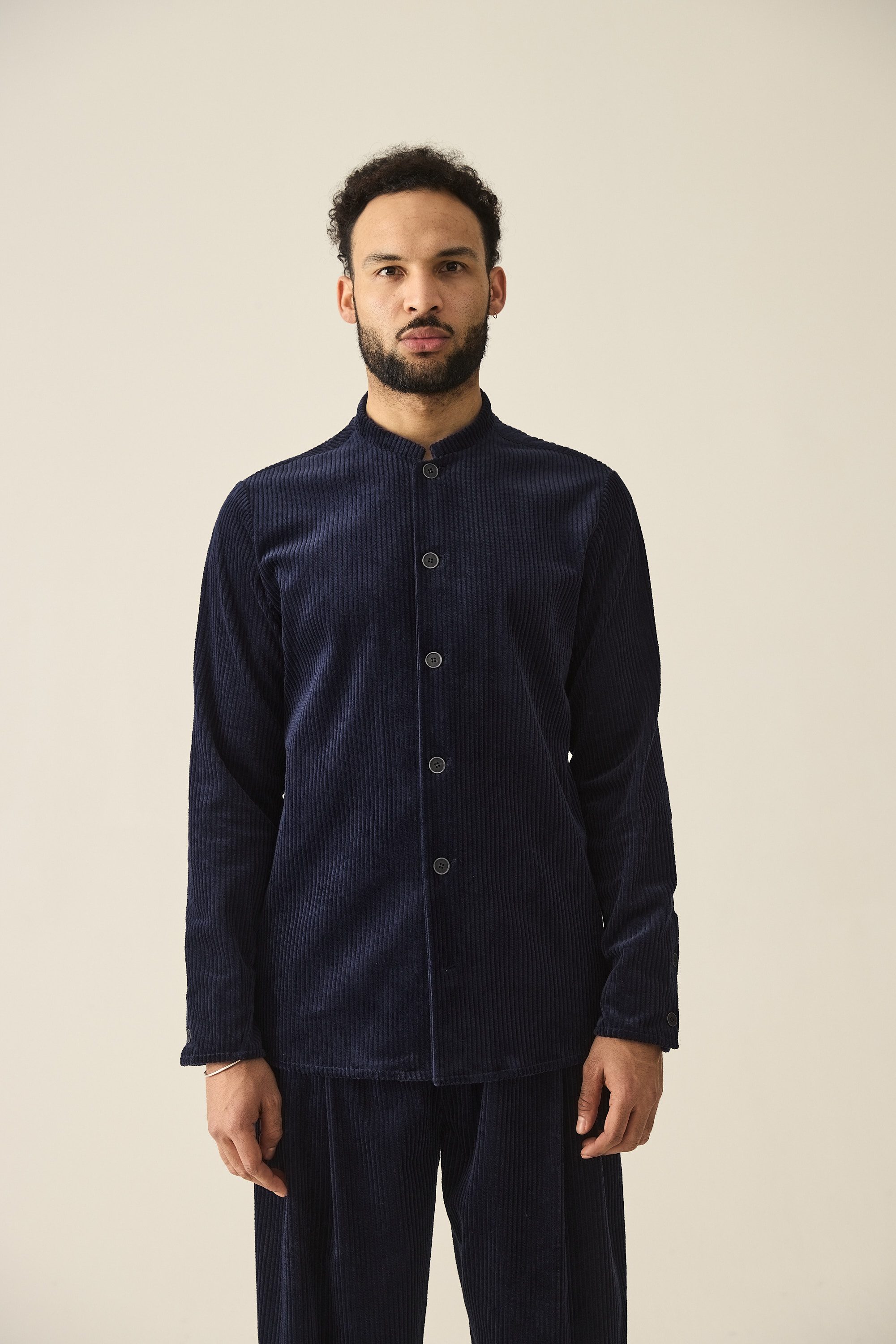 Regulär geschnittenes Overshirt mit Stehkragen aus Baumwollcord.