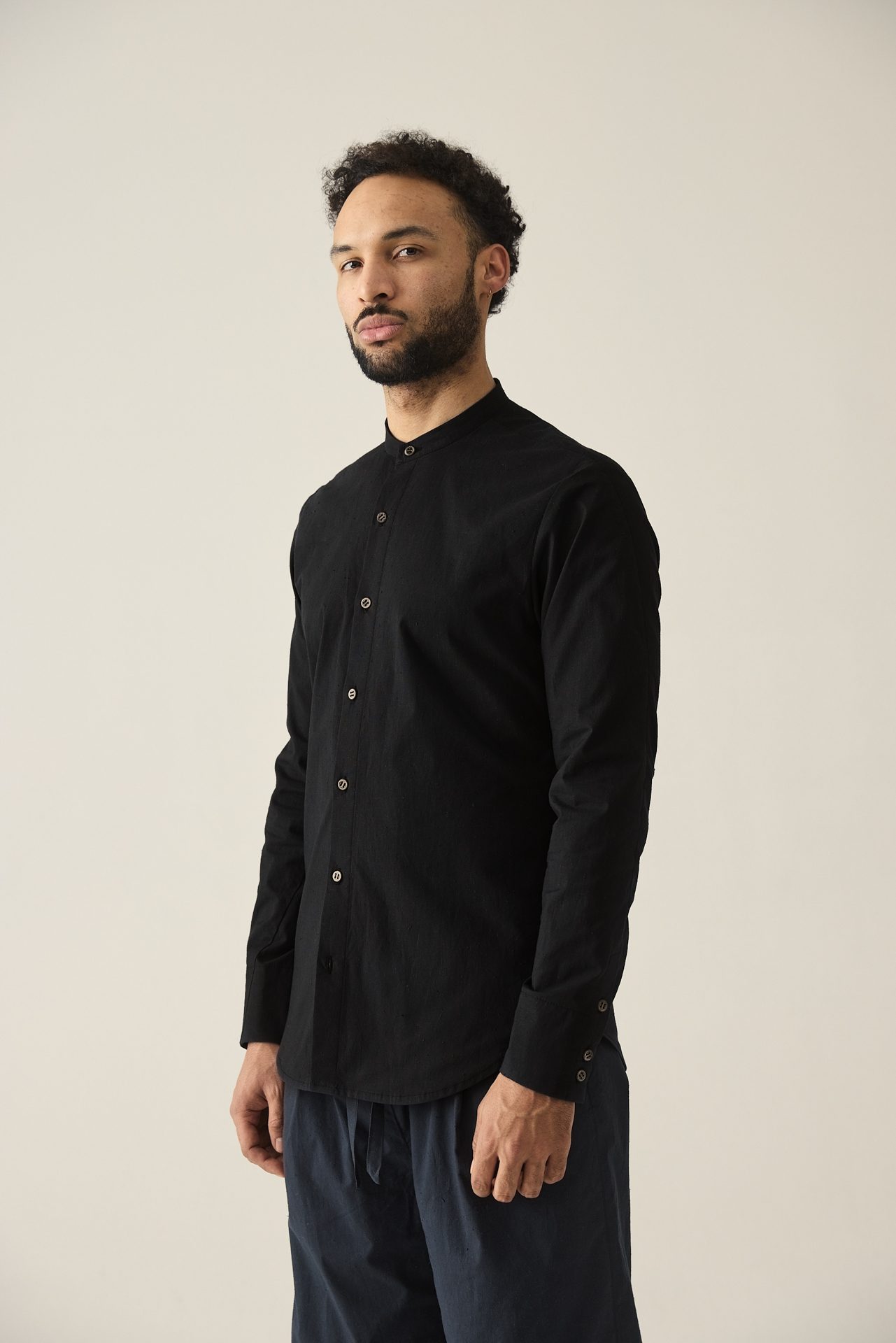Baumwollhemd mit Stehkragen.