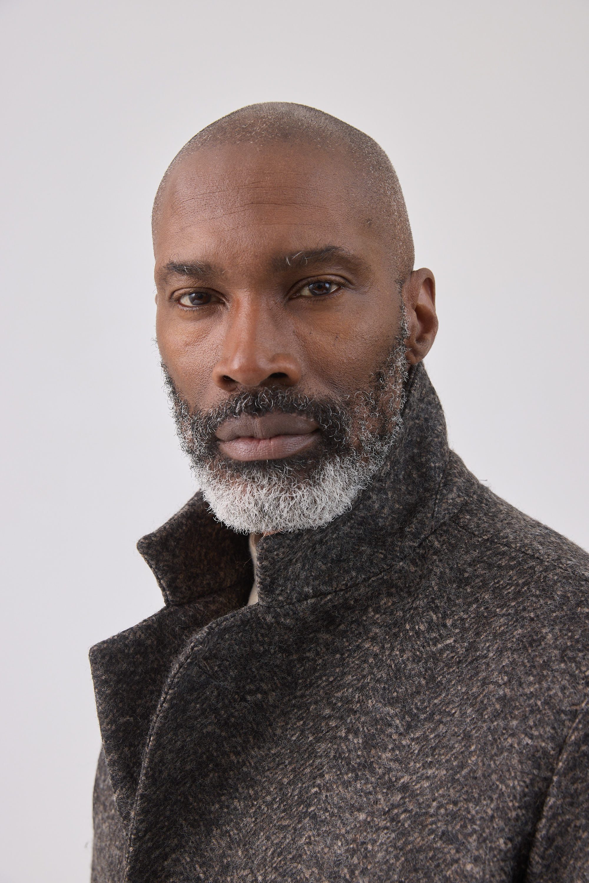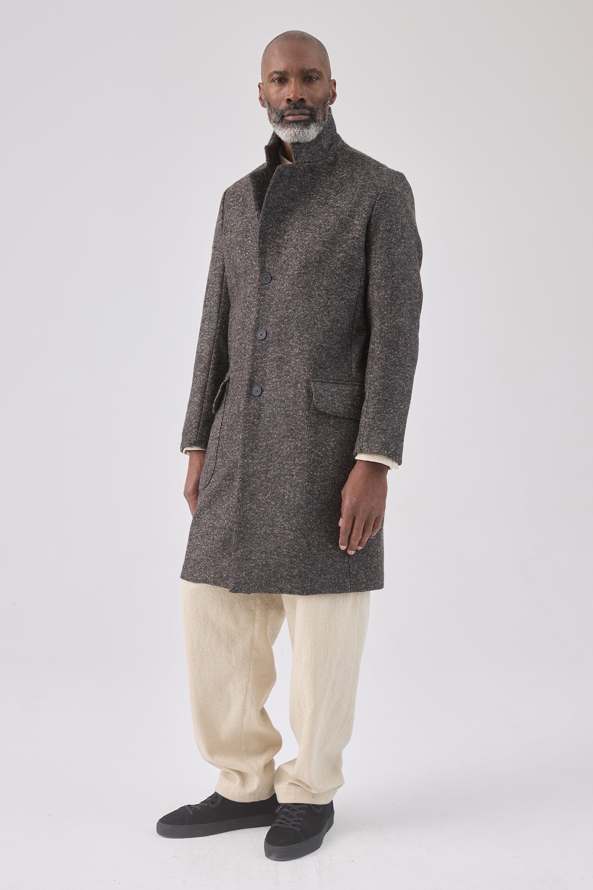 Relaxed fit cashmere wool blend coat, with two patch pockets and adjustable revers collar