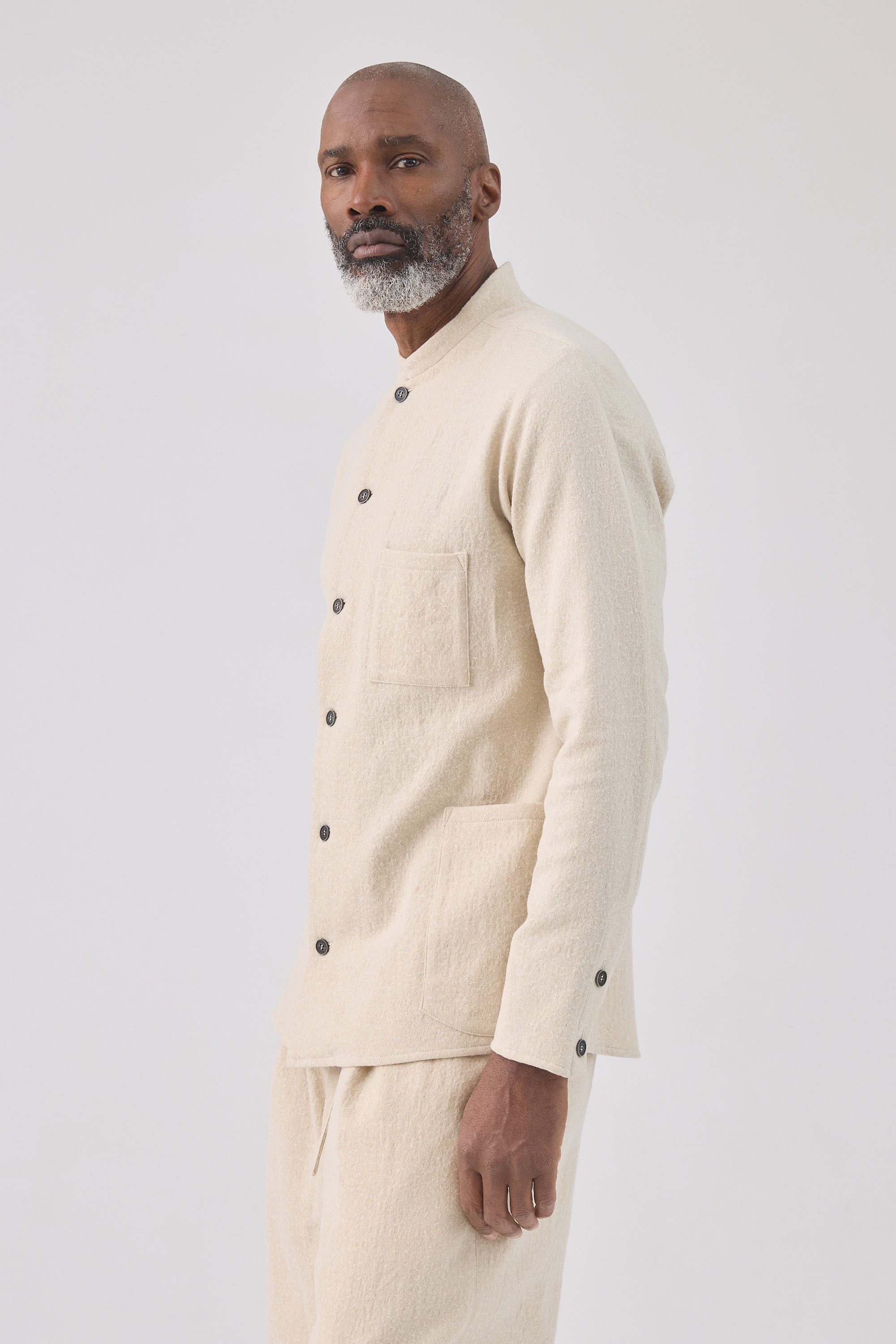 Regular fit overshirt with 3 patch pockets, made of a Japanese wool cotton blend