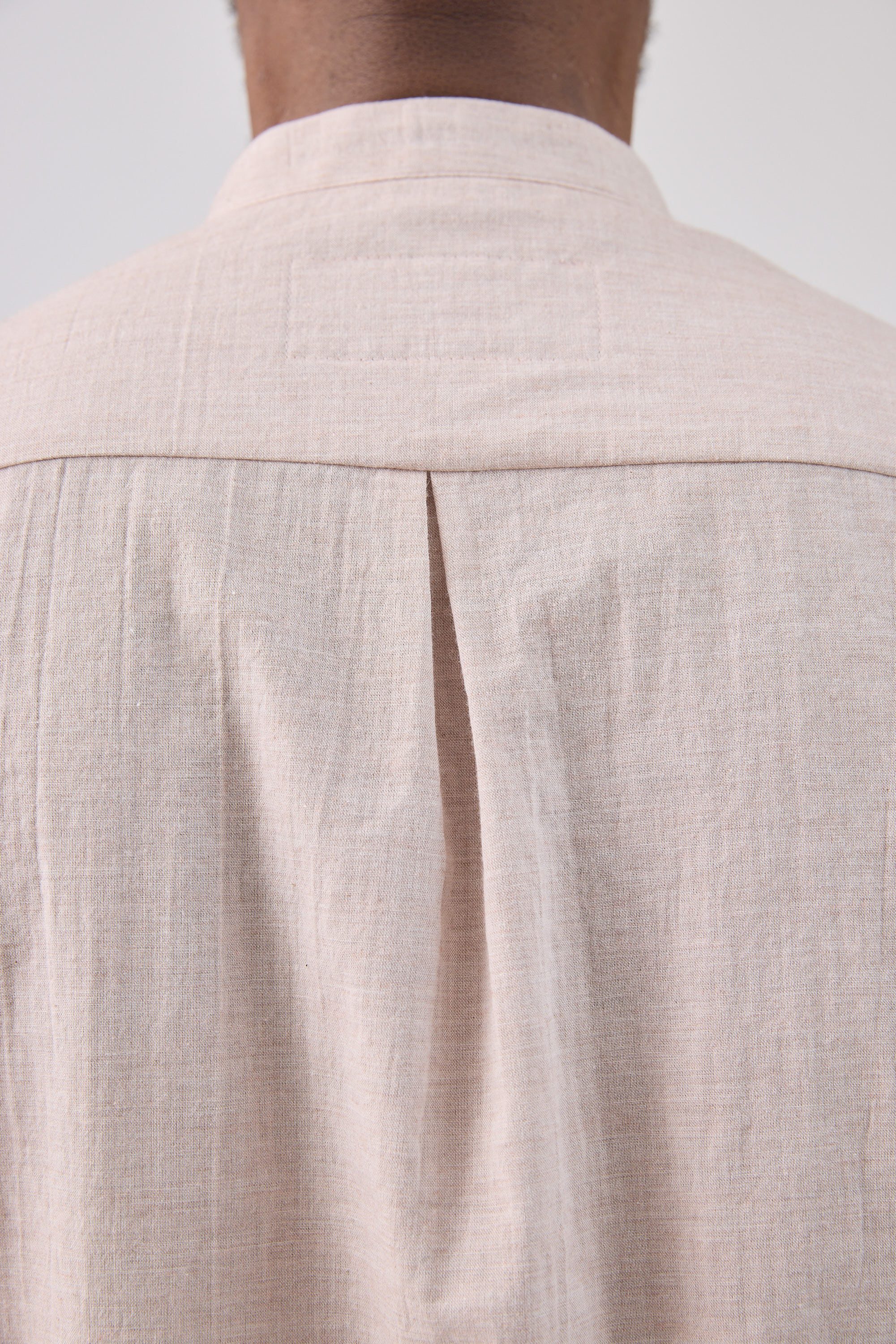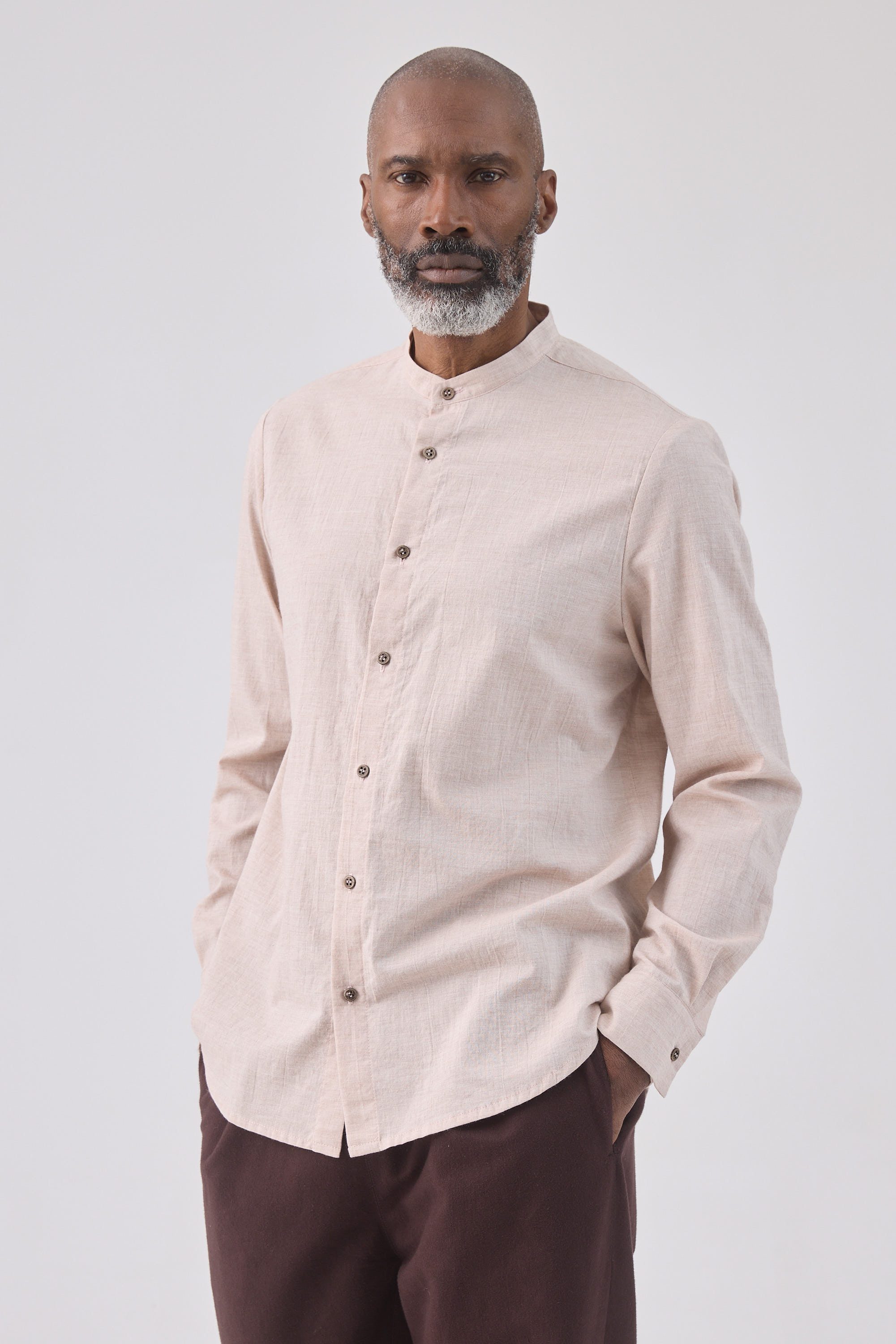 Relaxed fit shirt with band collar, made of naturally dyed Japanese cotton