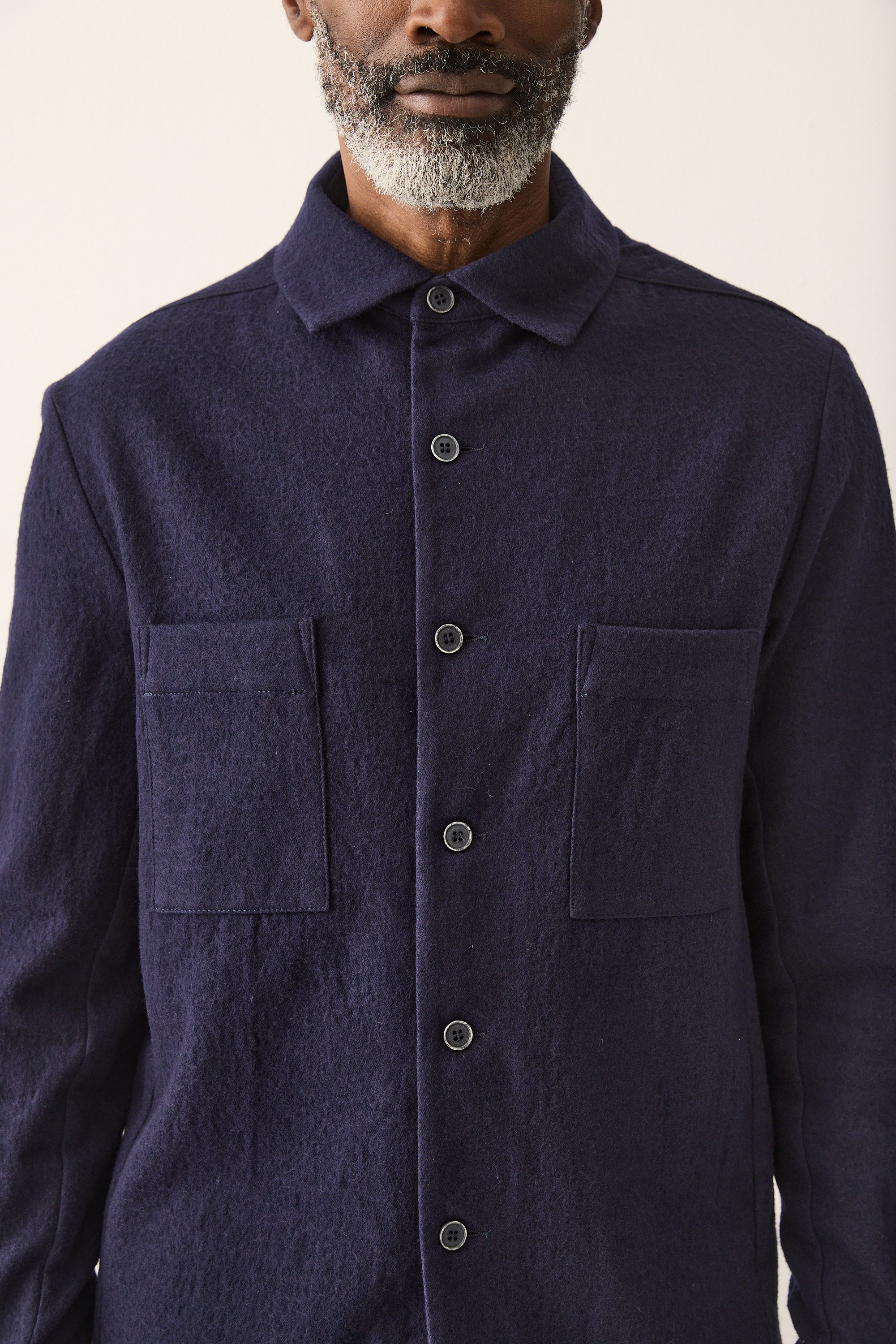 Relaxed fit overshirt with patch pockets, made of a Japanese wool cotton blend