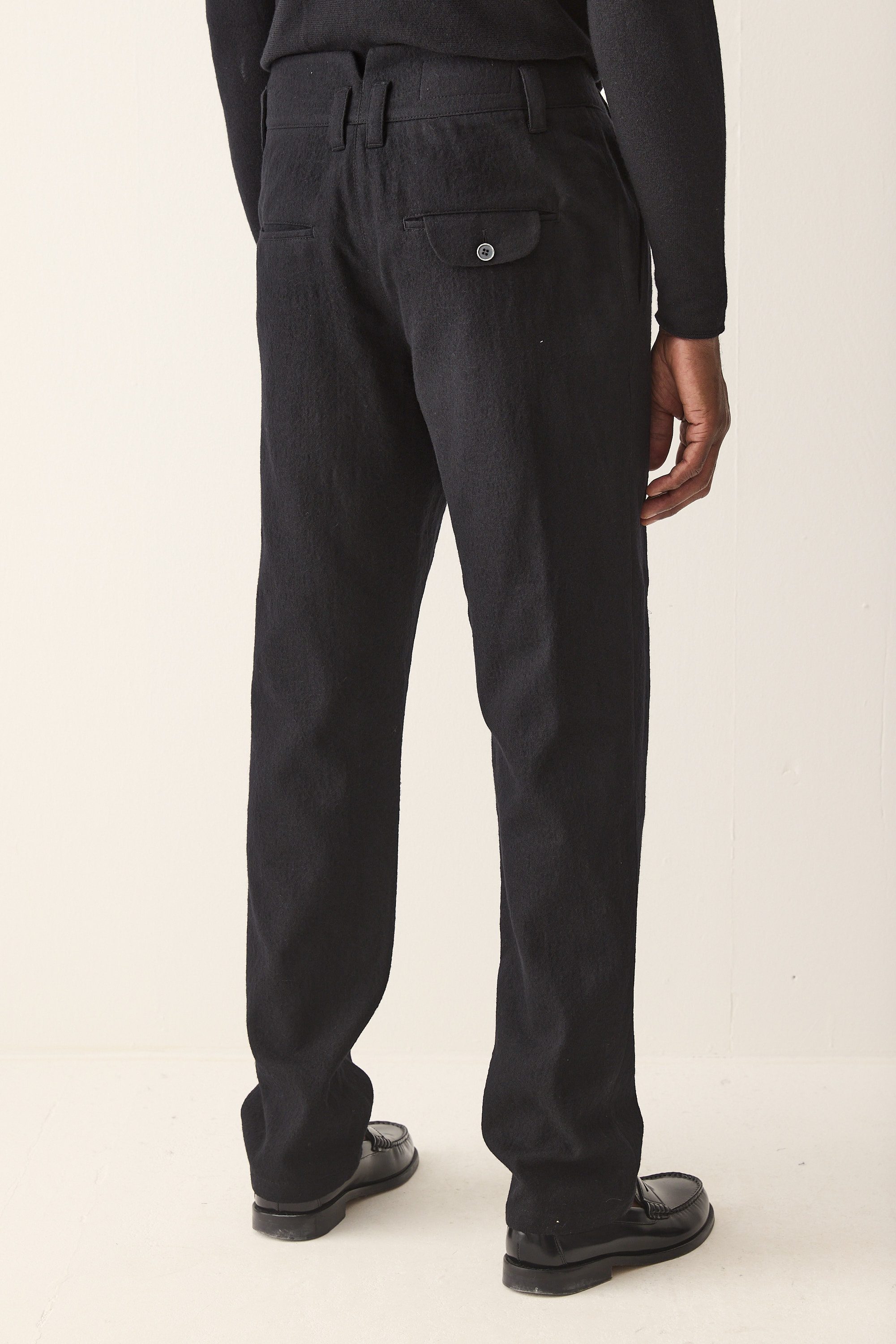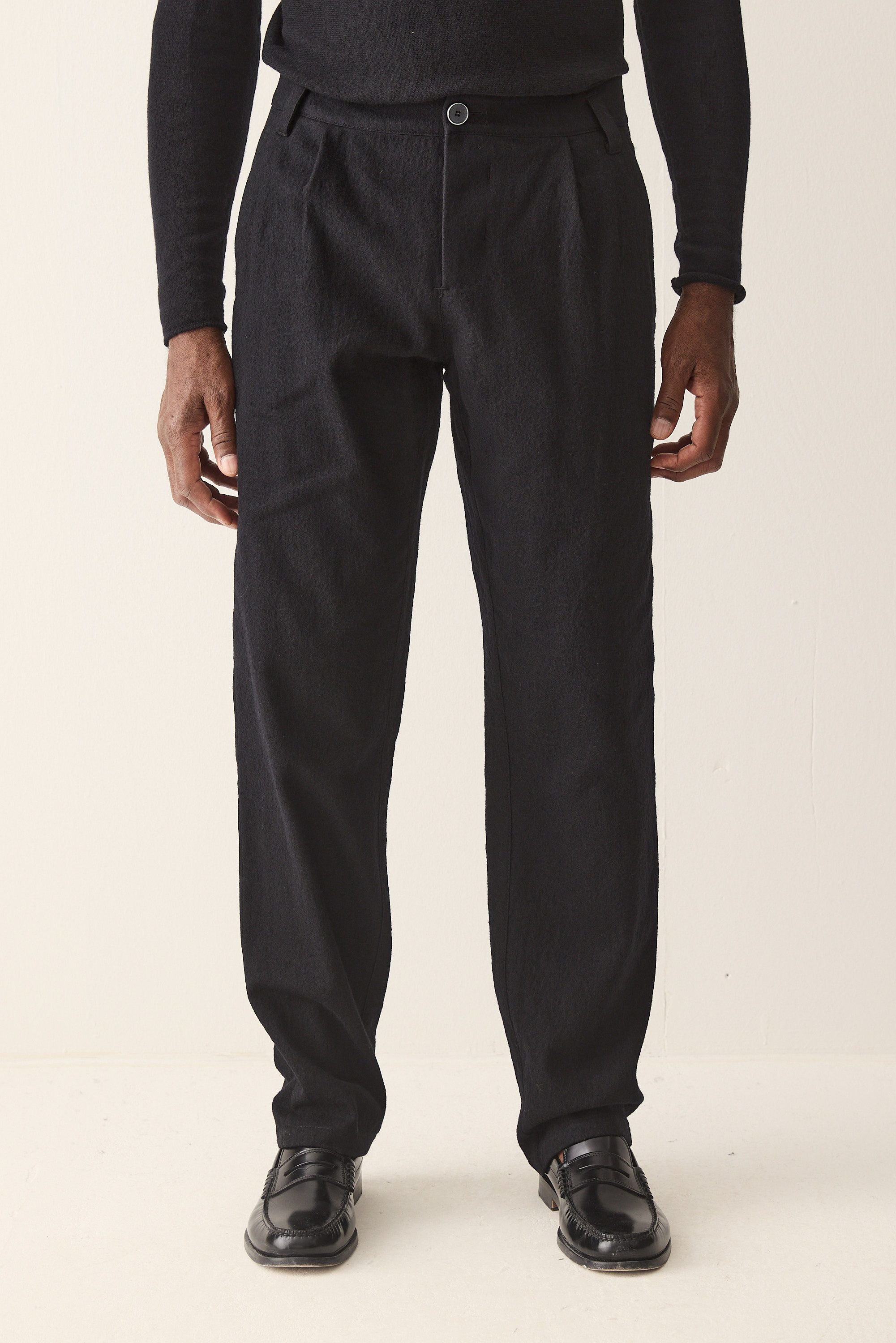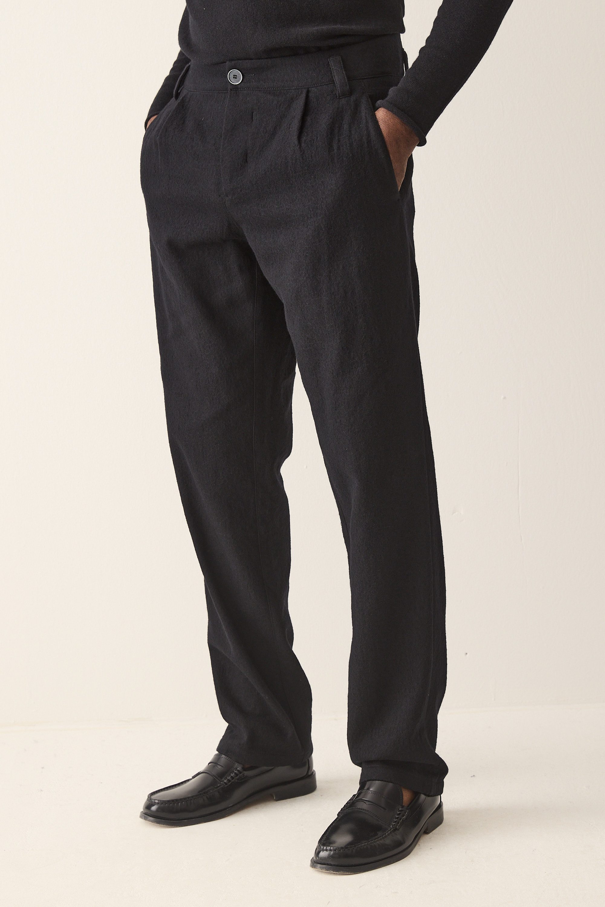 Relaxed fit trousers with a small pleat made from a Japanese wool-cotton blend