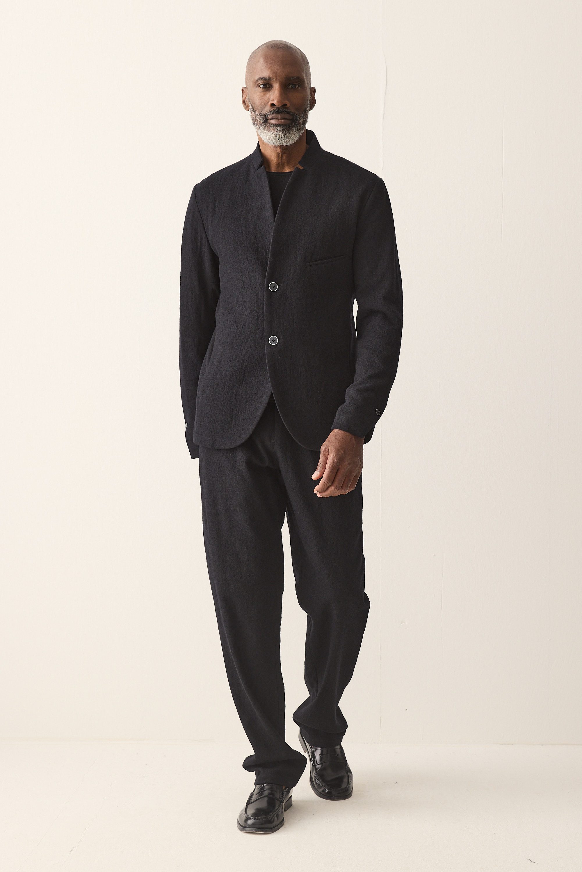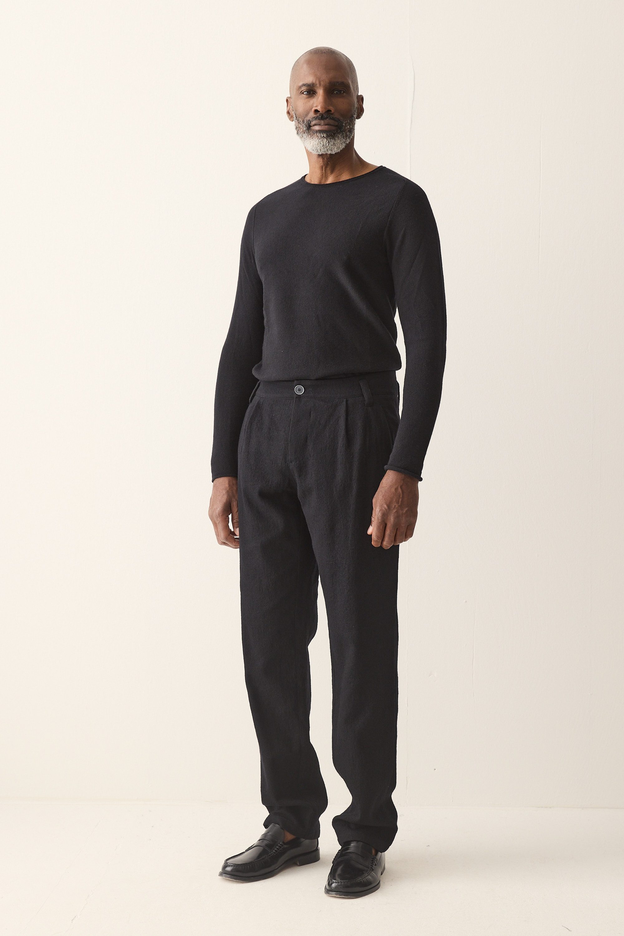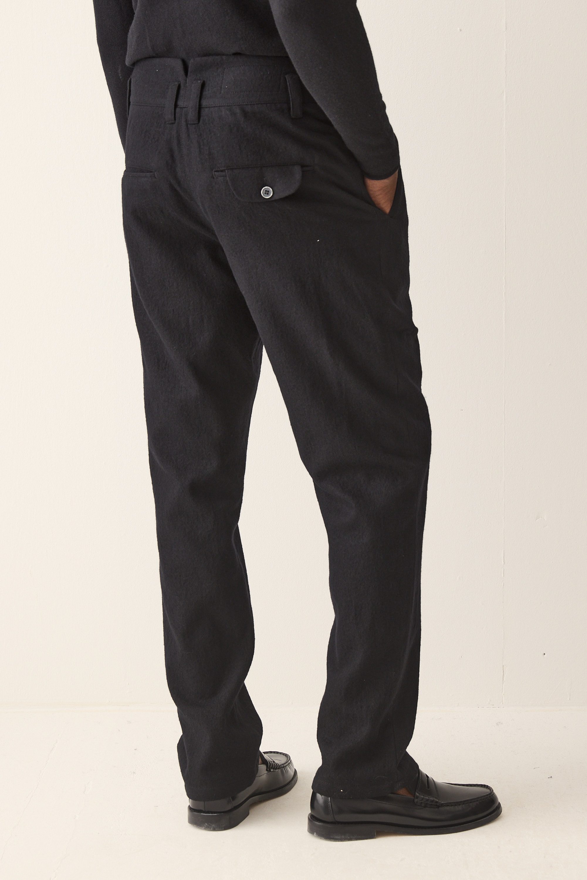 Relaxed fit trousers with a small pleat made from a Japanese wool-cotton blend