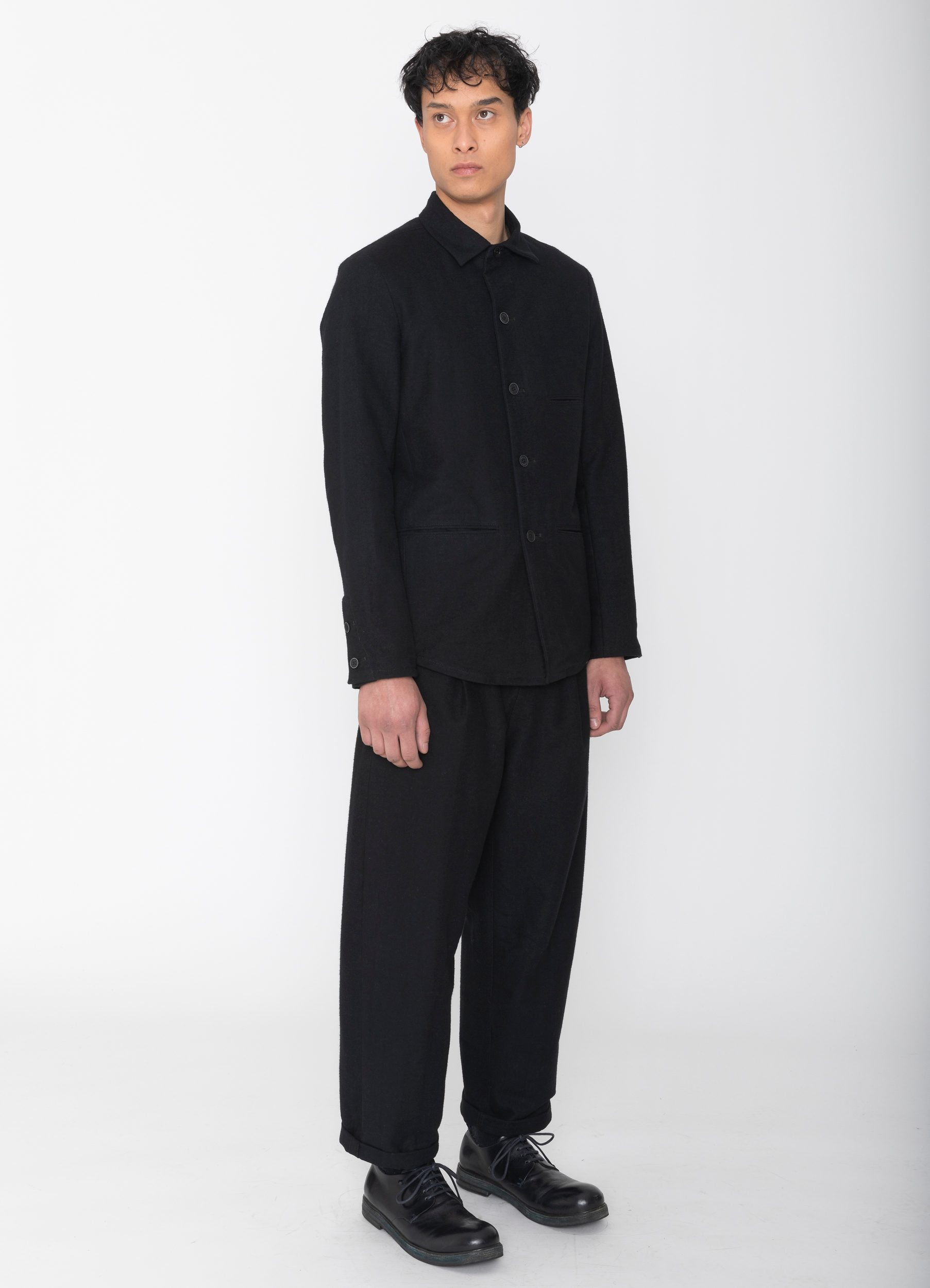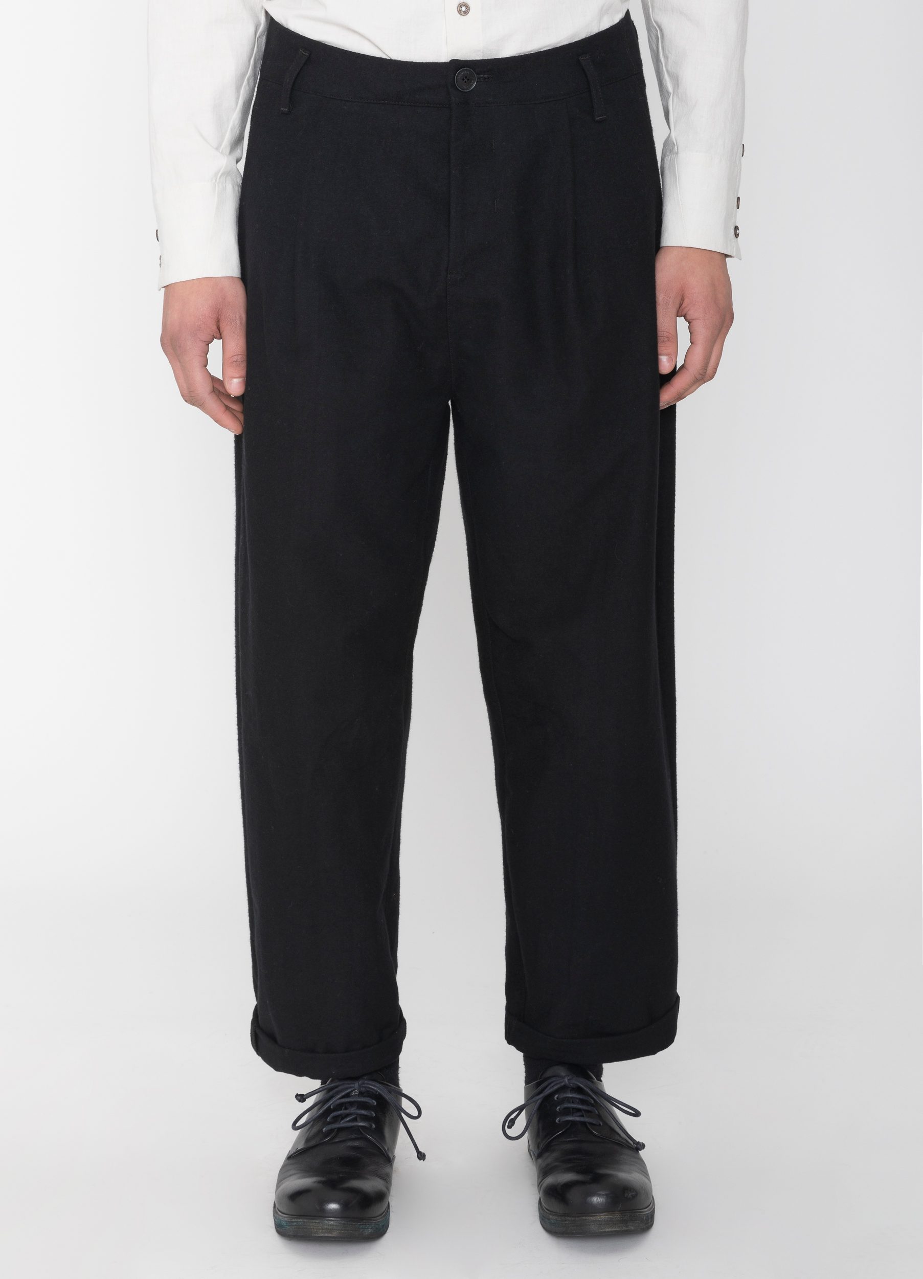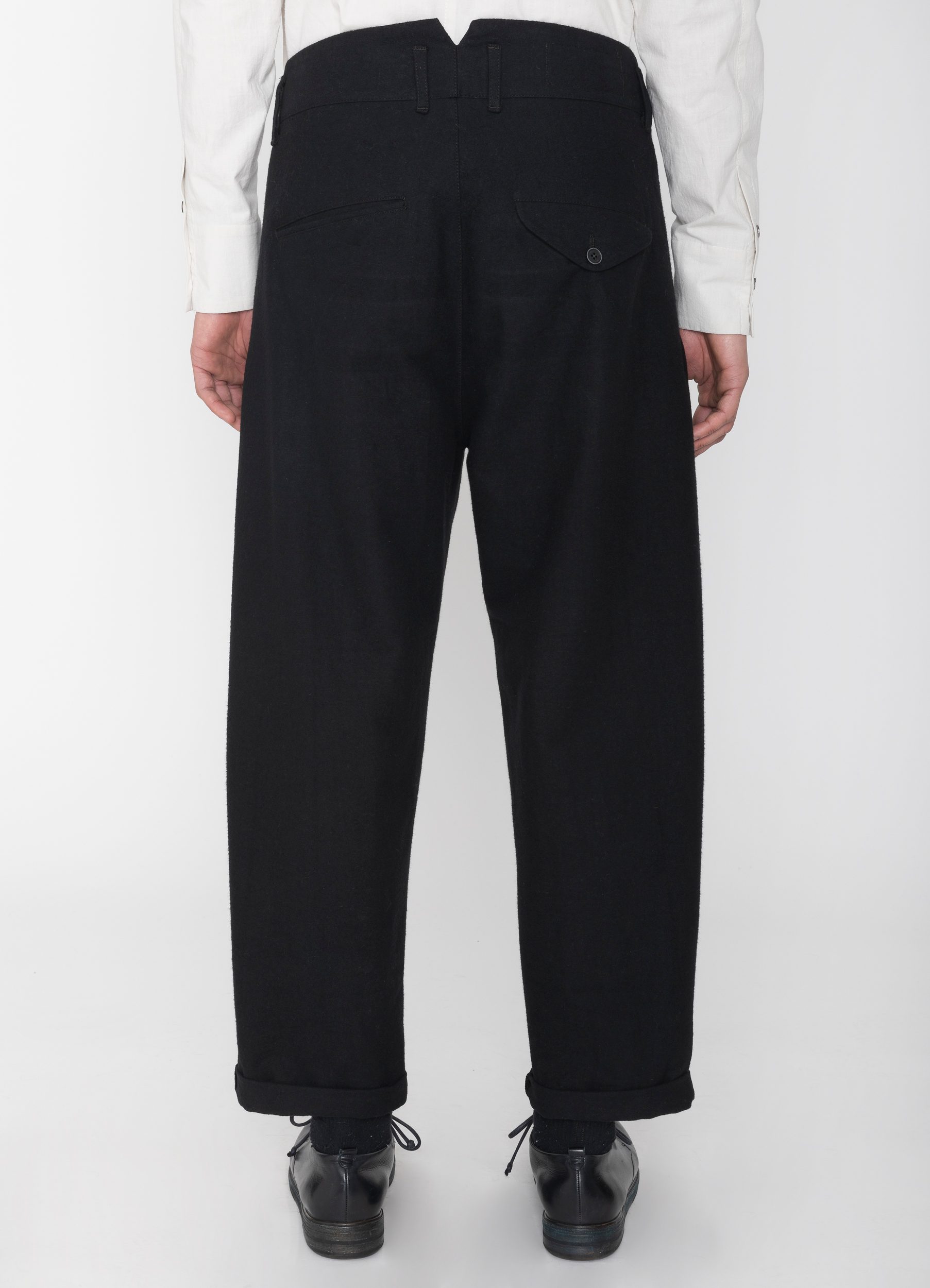 Wide-leg brushed cotton canvas trousers with pleats. Fits one size bigger.