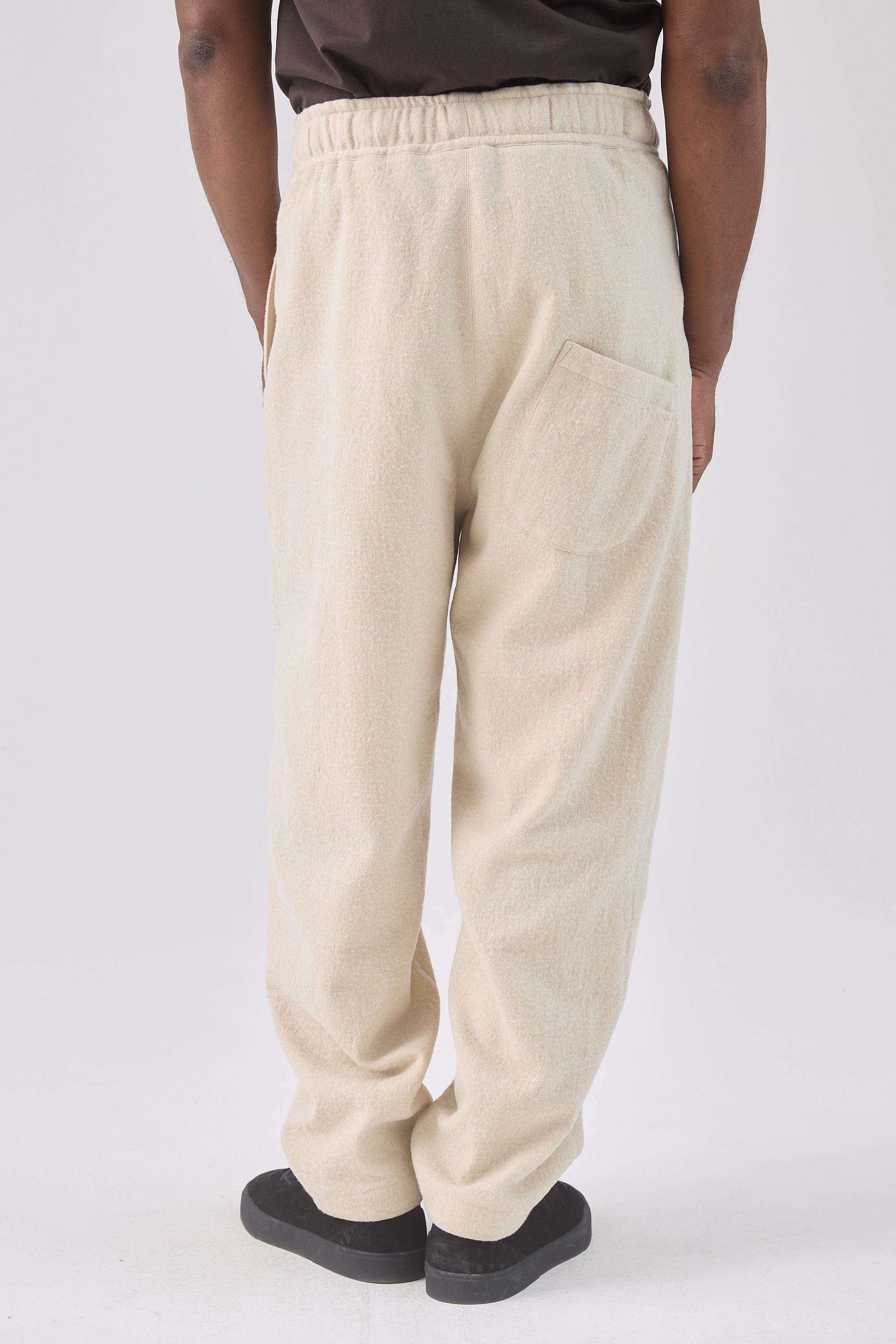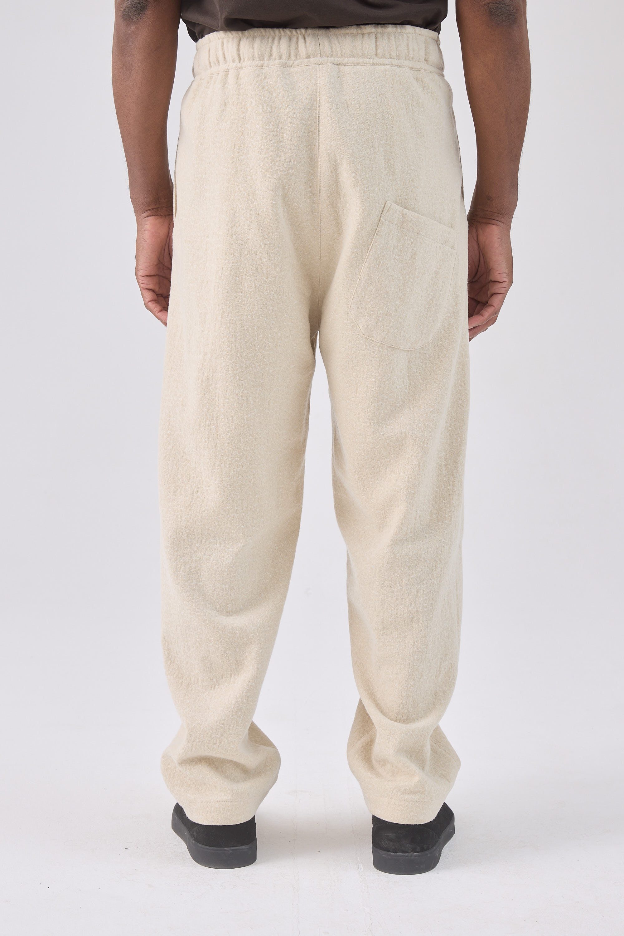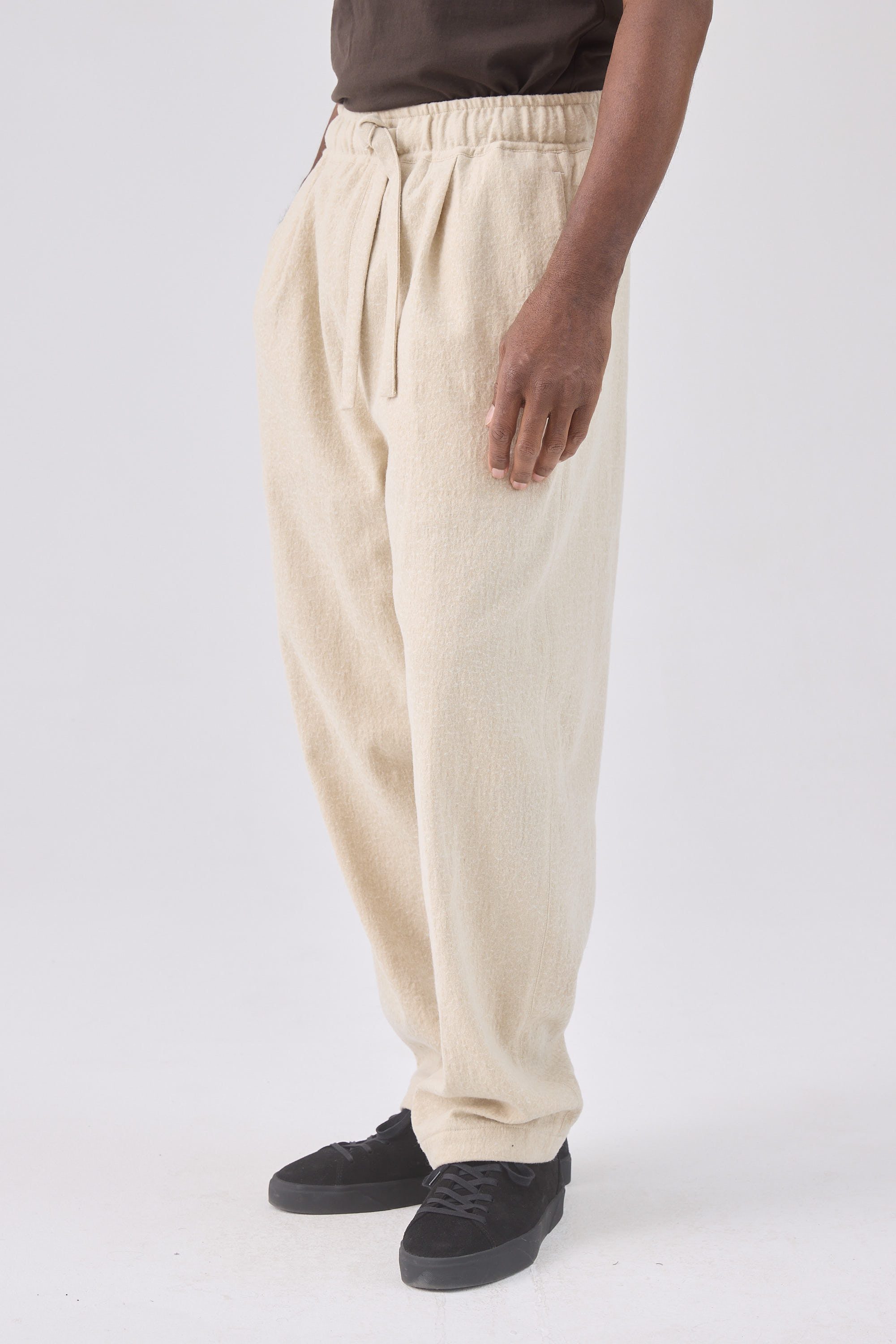 Relaxed fit drawstring trousers, made of a Japanese wool cotton blend