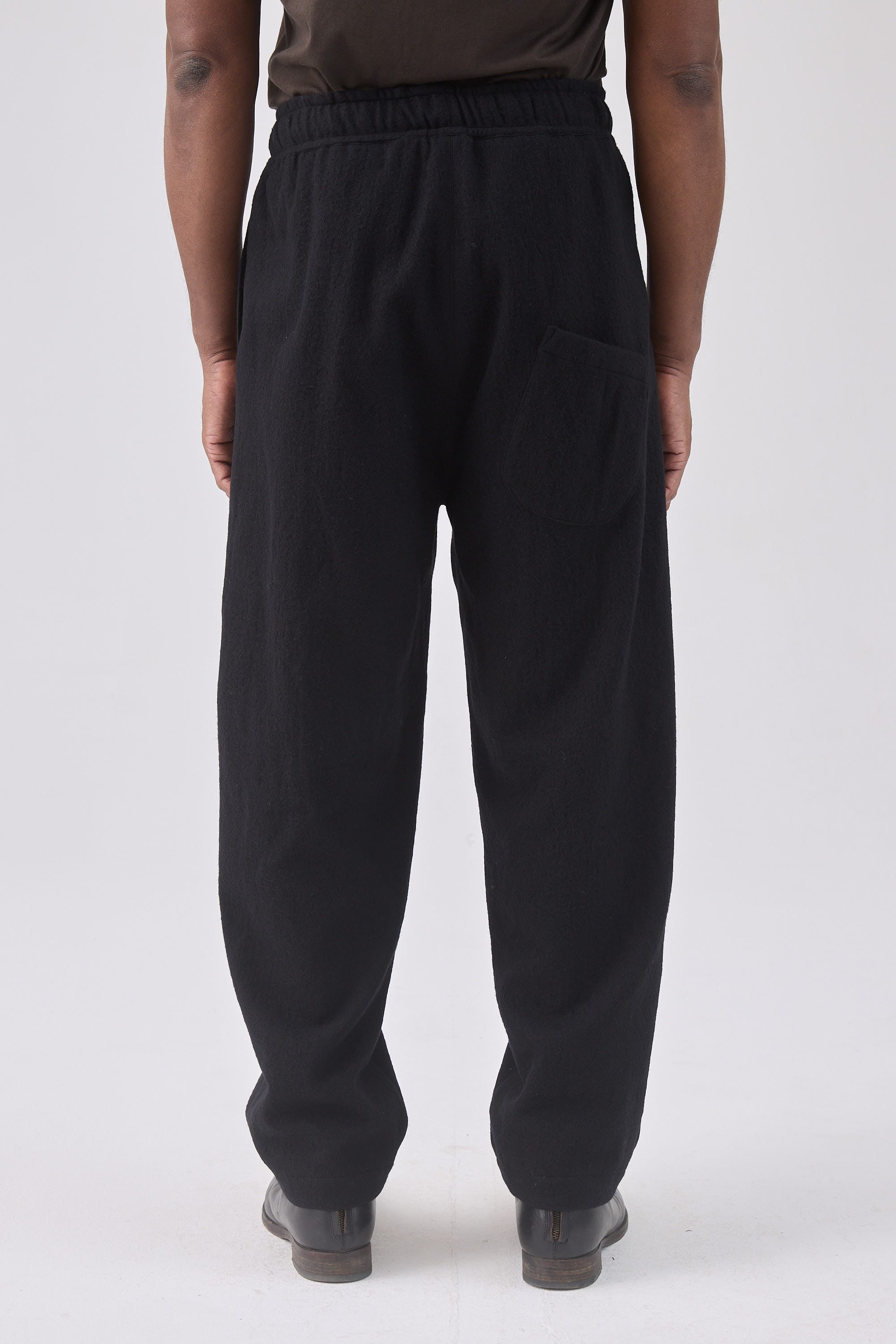 Relaxed fit drawstring trousers, made of a Japanese wool cotton blend