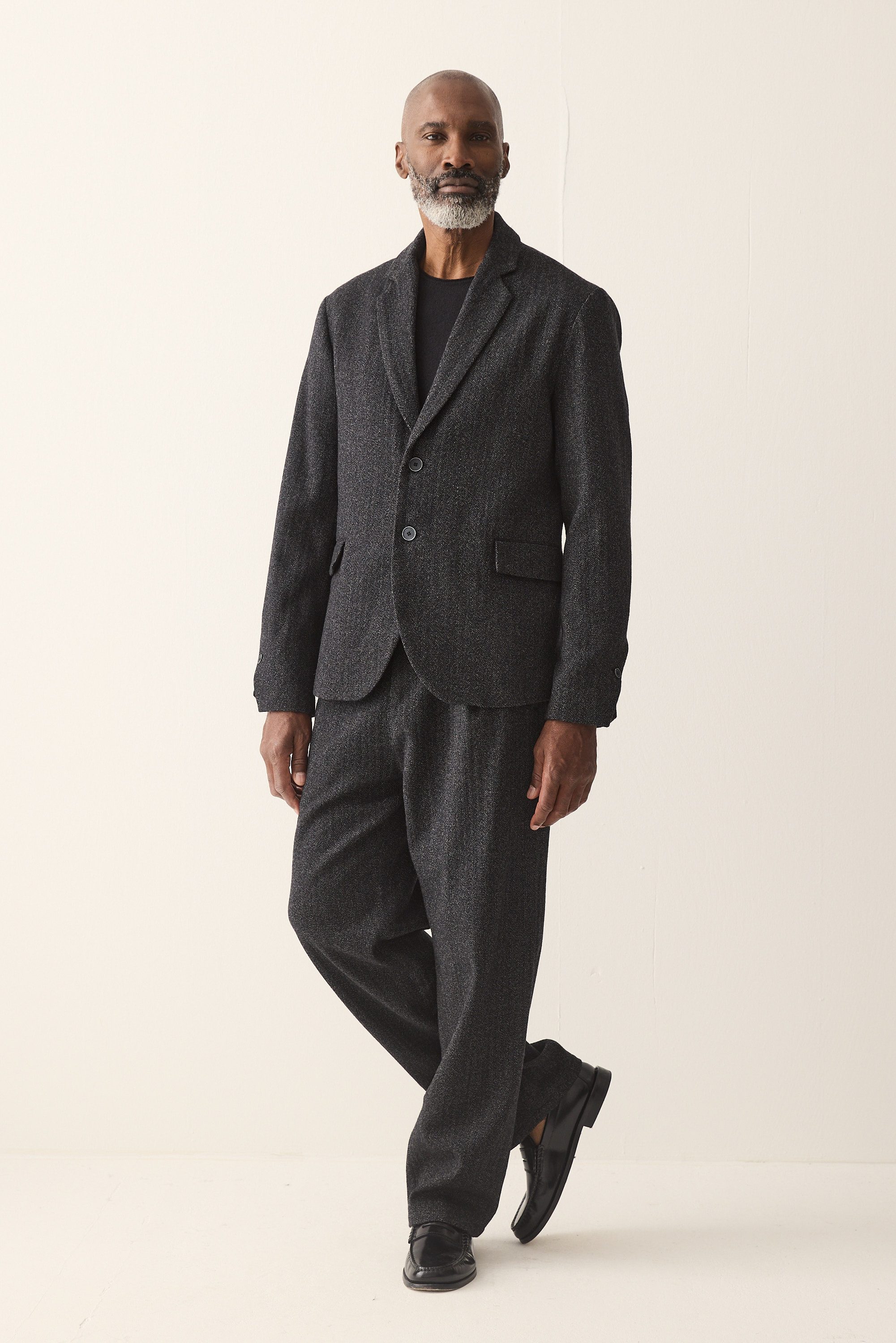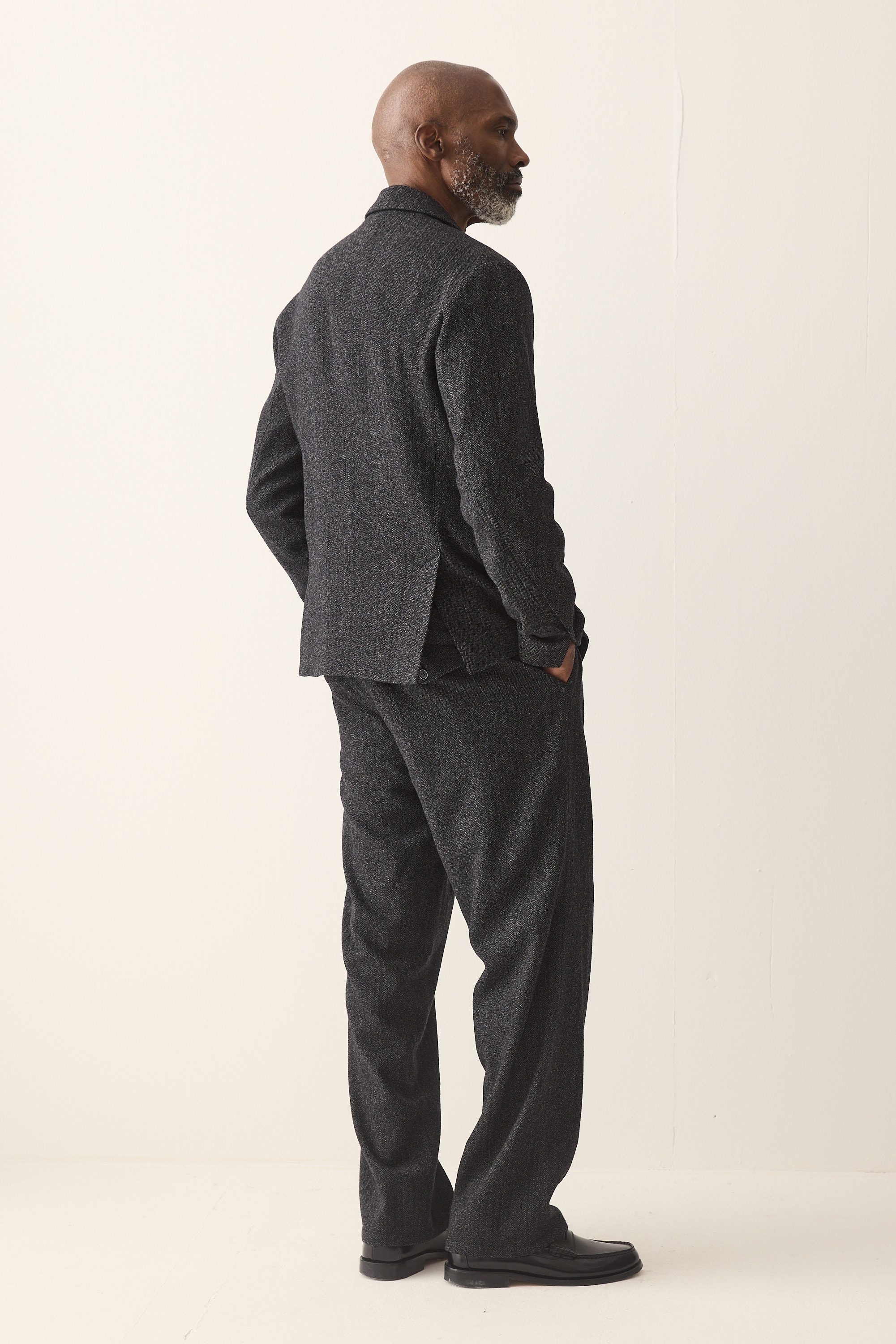 Blazer with a regular collar and two-button closure, made from a fine Italian herringbone wool blend.