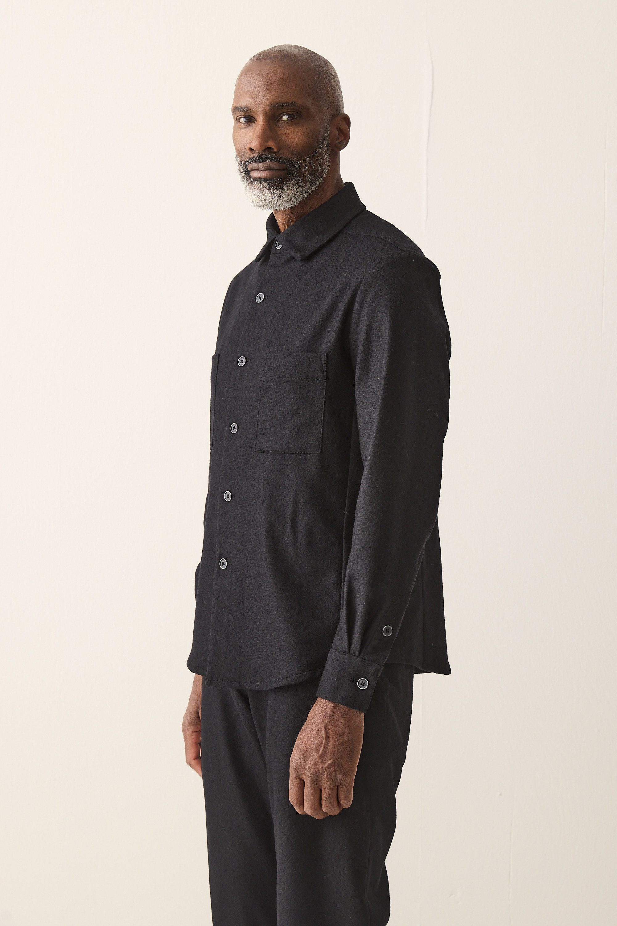 Relaxed fit overshirt with patch pockets, made of an italien wool blend