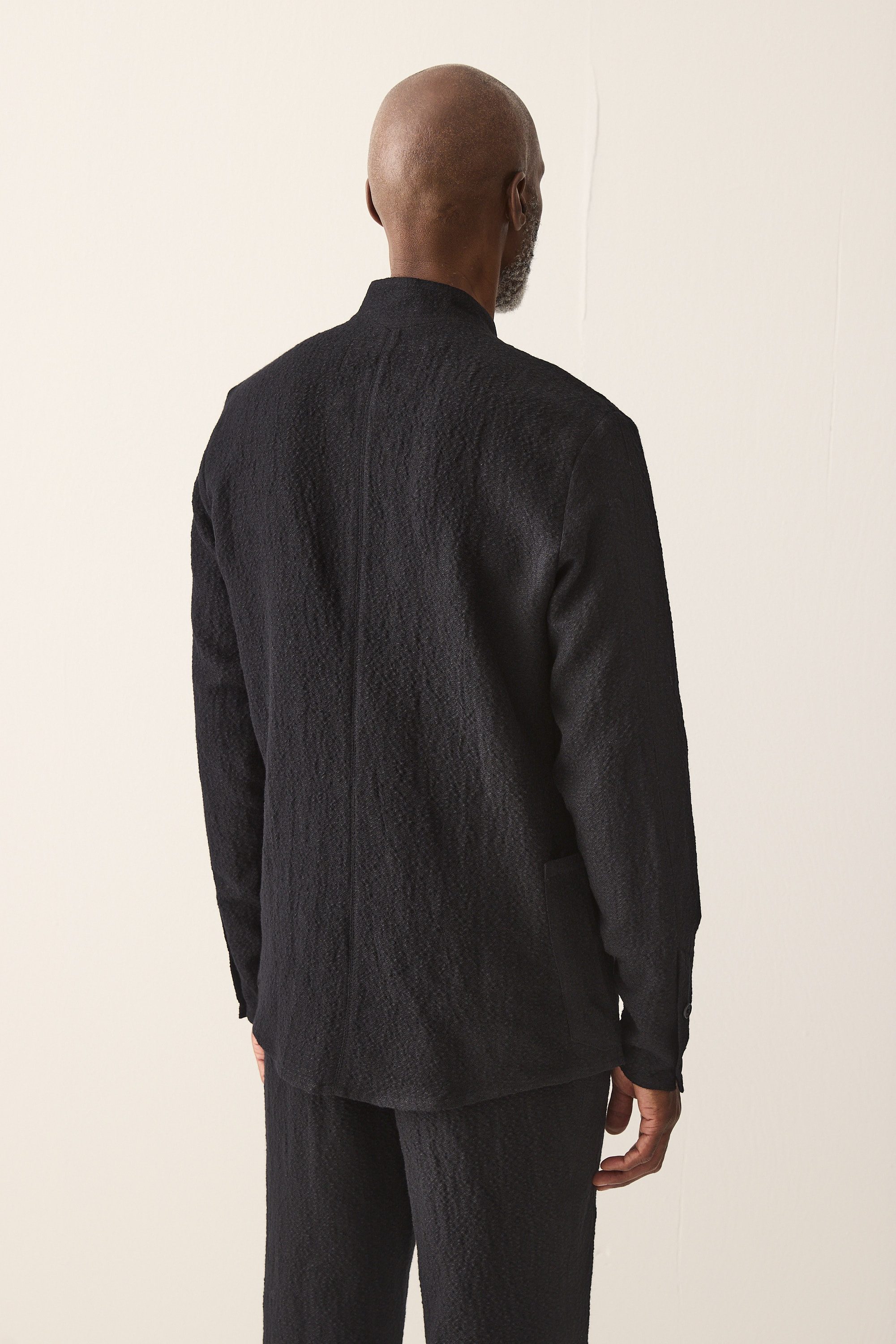Regular fit overshirt with 3 patch pockets, made of a Japanese wool linen cotton blend