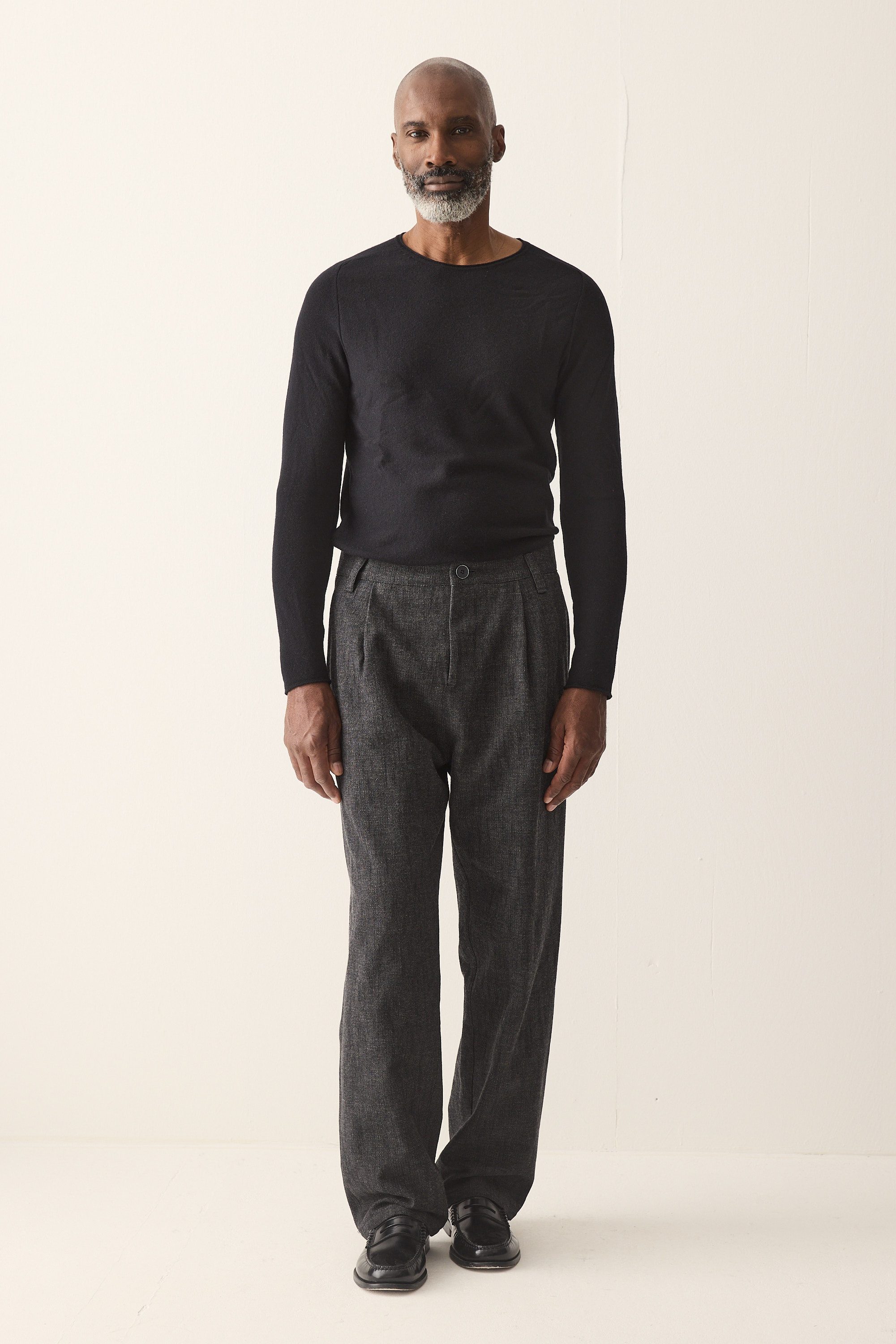 Wide fit single pleated trousers, made from an Italian cotton wool blend