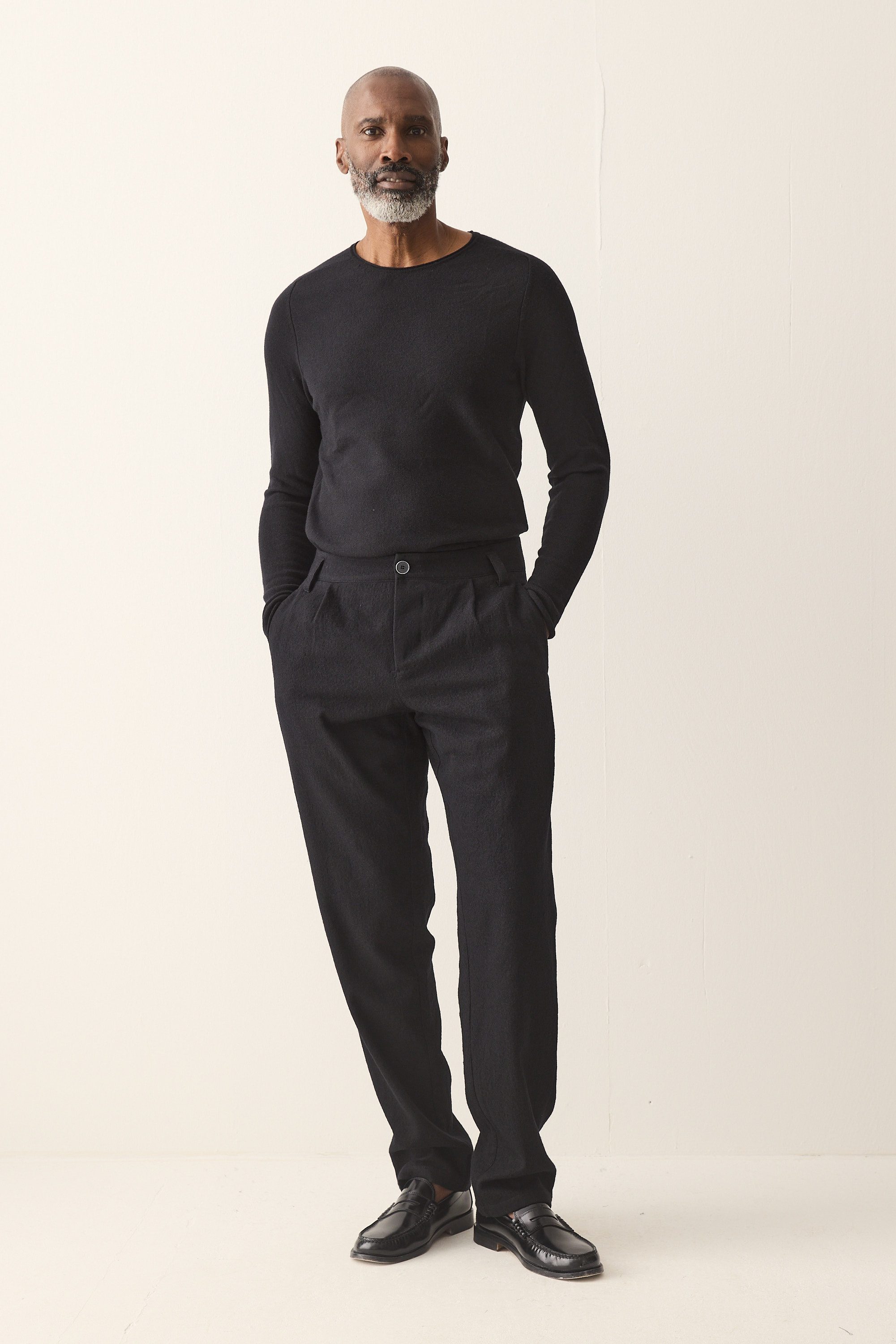 Relaxed fit trousers with a small pleat made from a Japanese wool-cotton blend