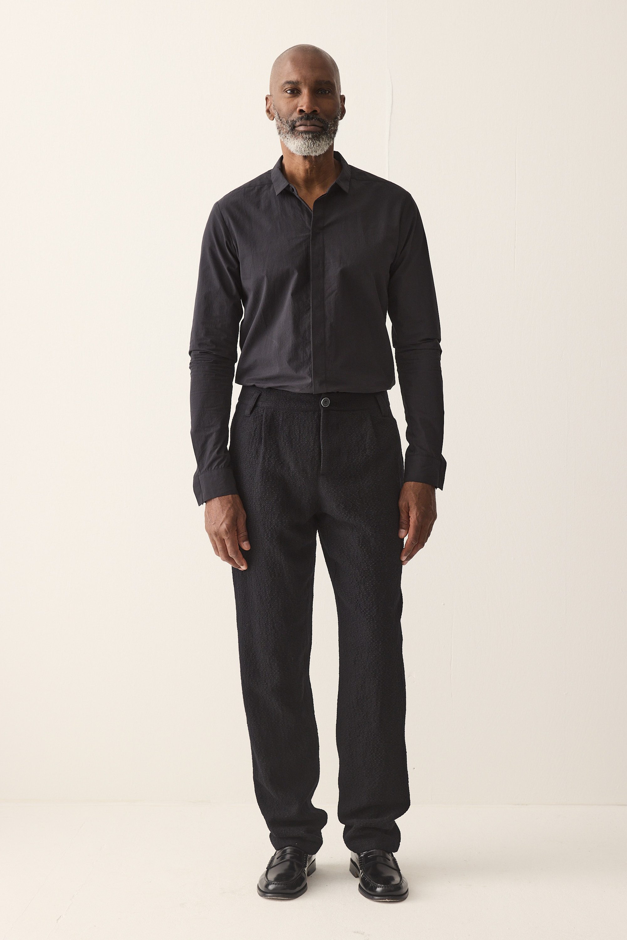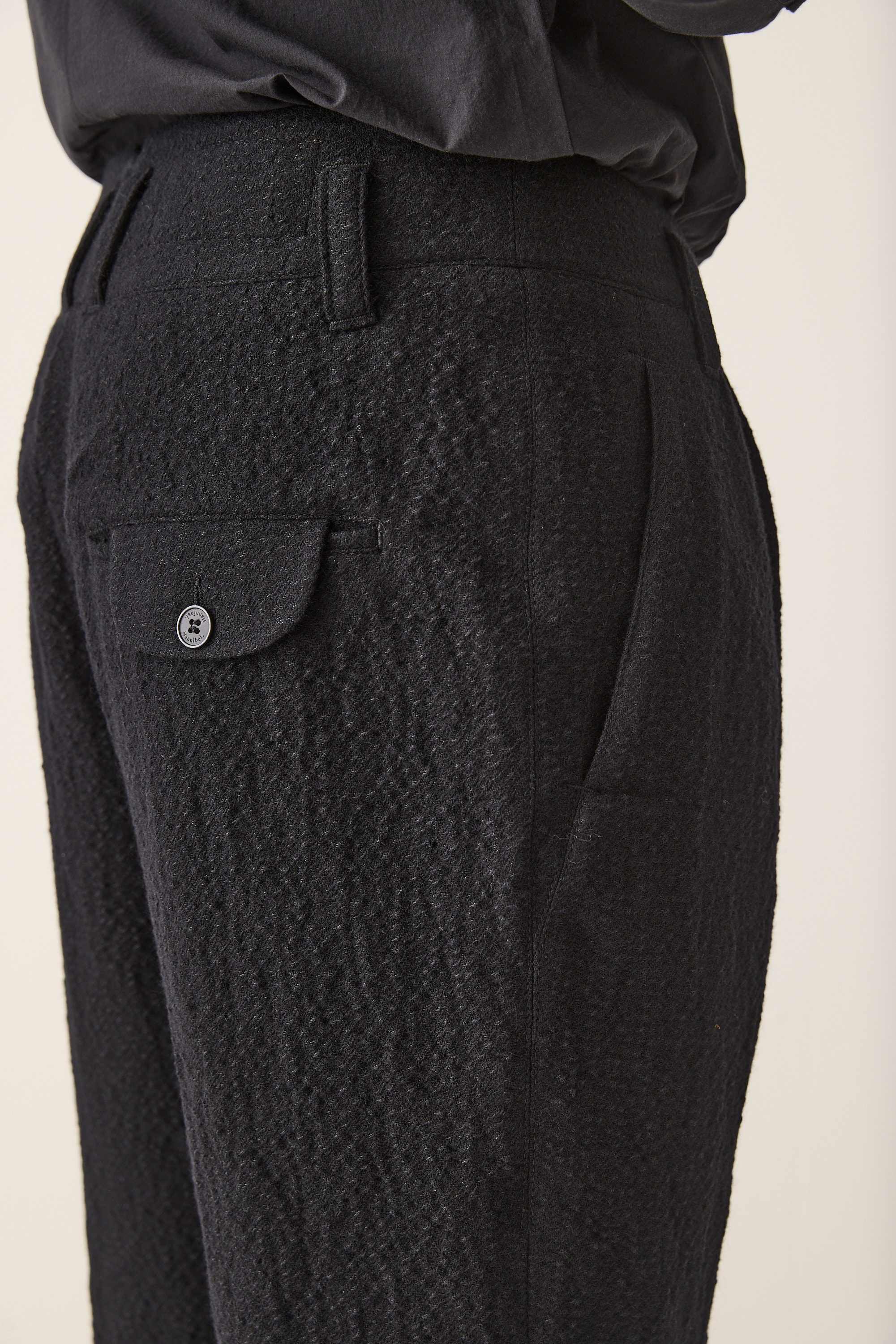 Relaxed fit trousers with a small pleat made from a Japanese wool linen cotton blend