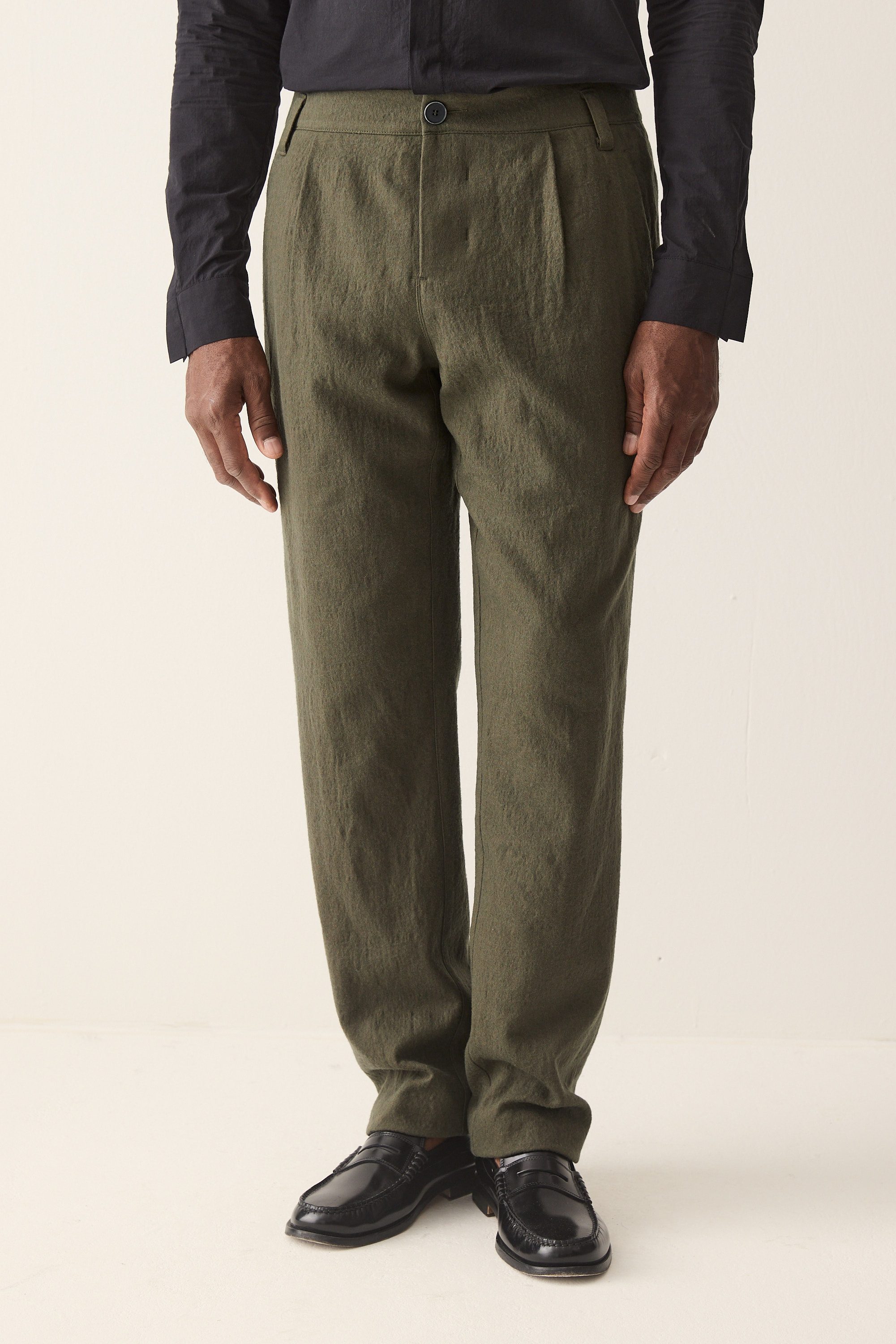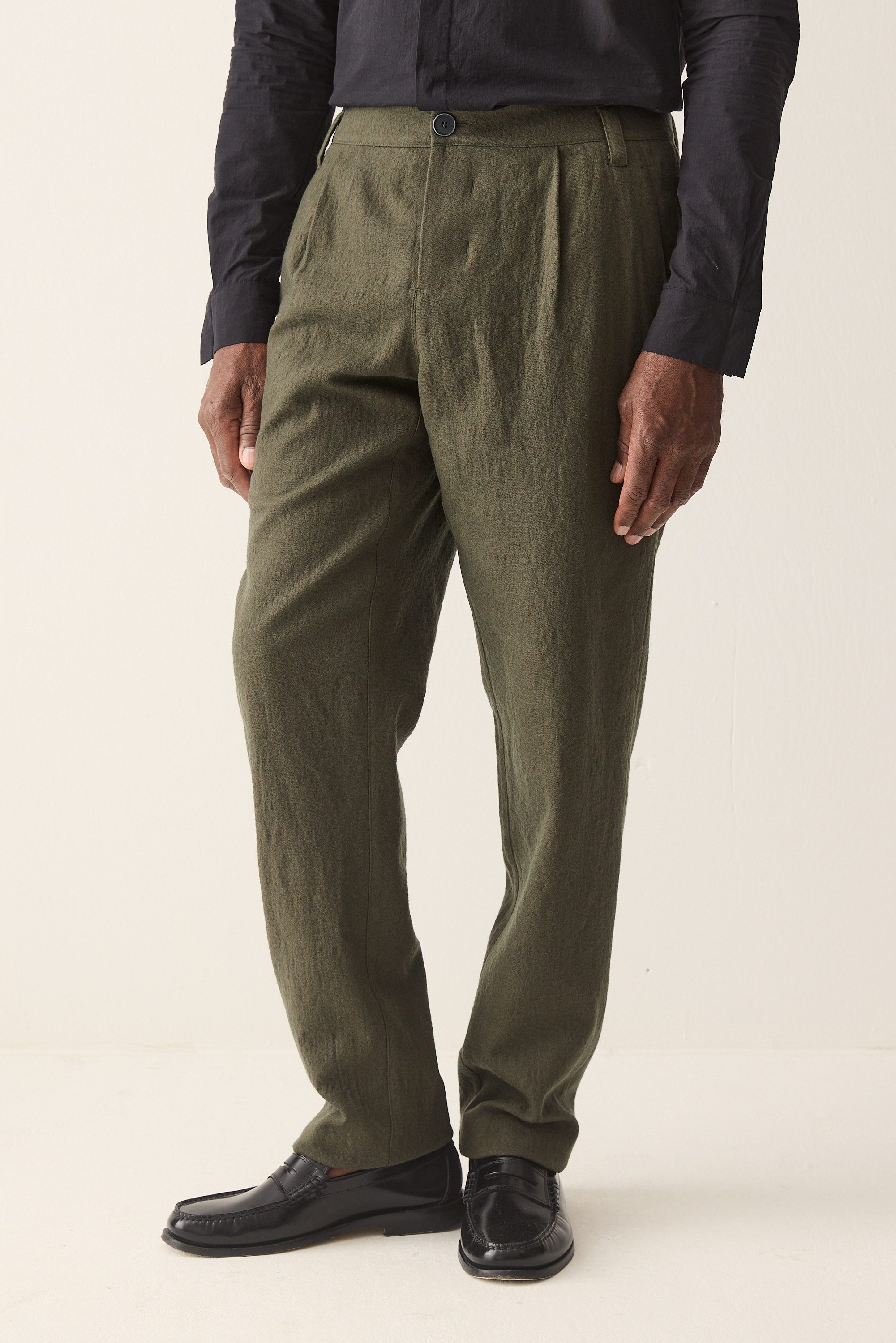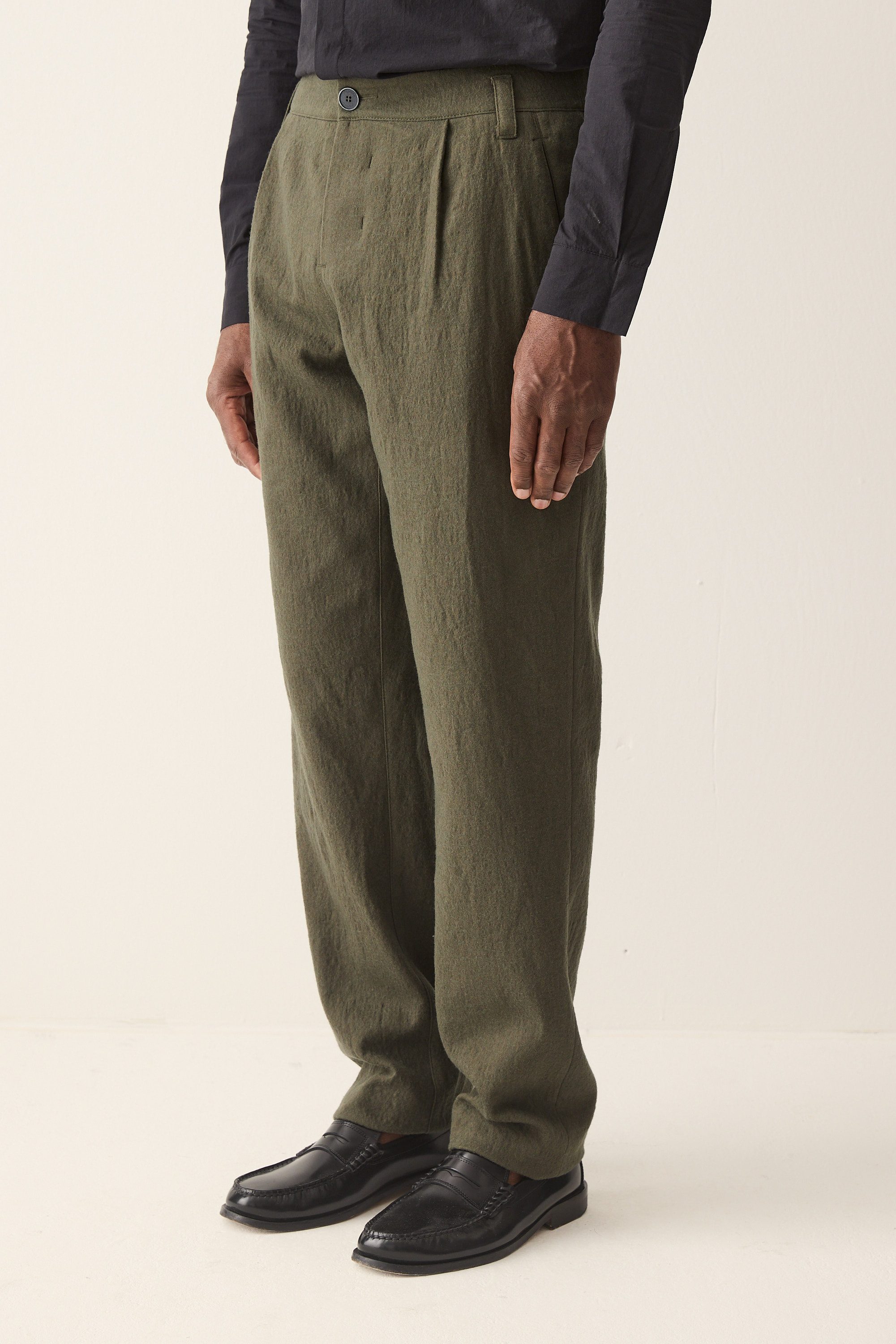 Relaxed fit trousers with a small pleat made from a Japanese wool-cotton blend