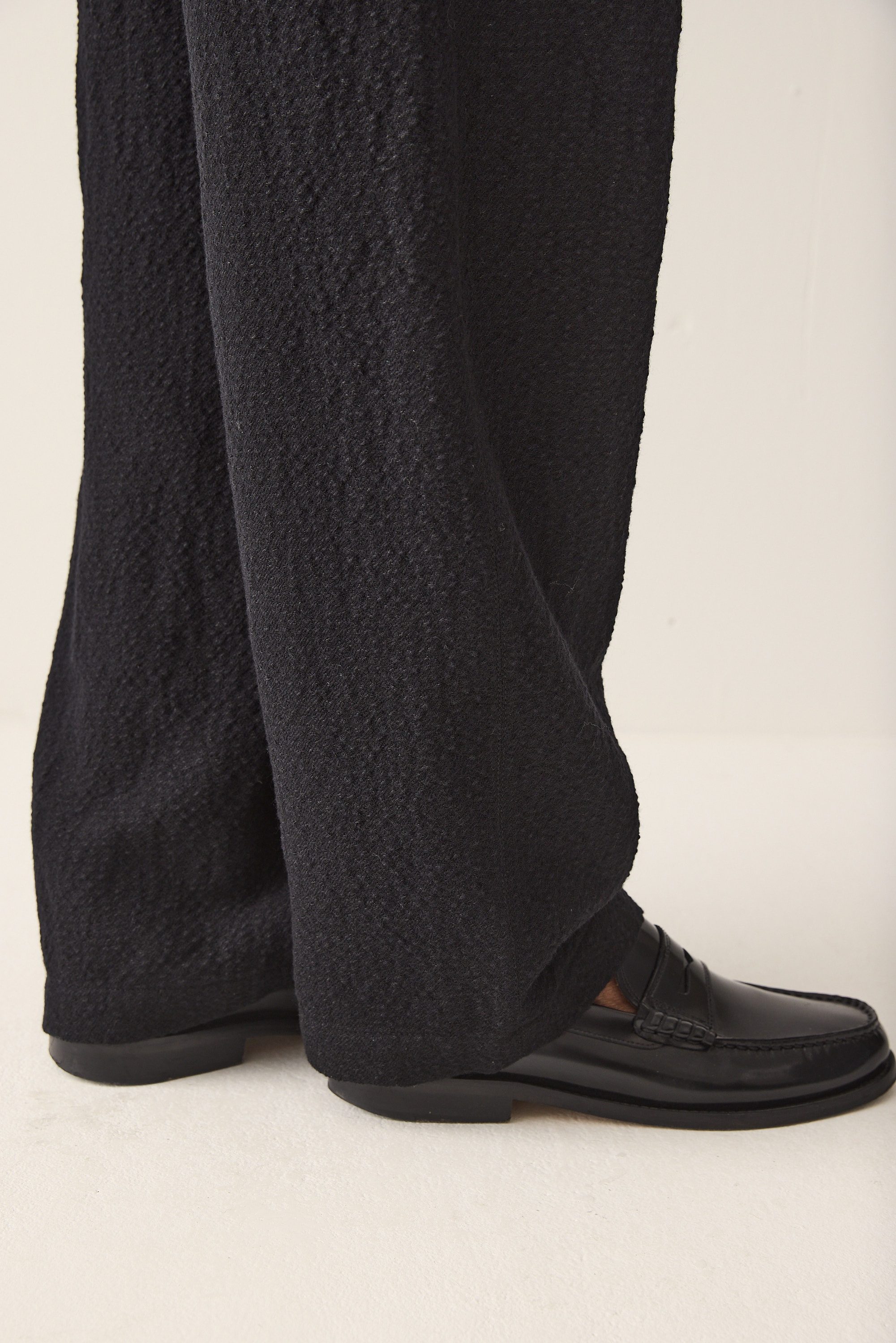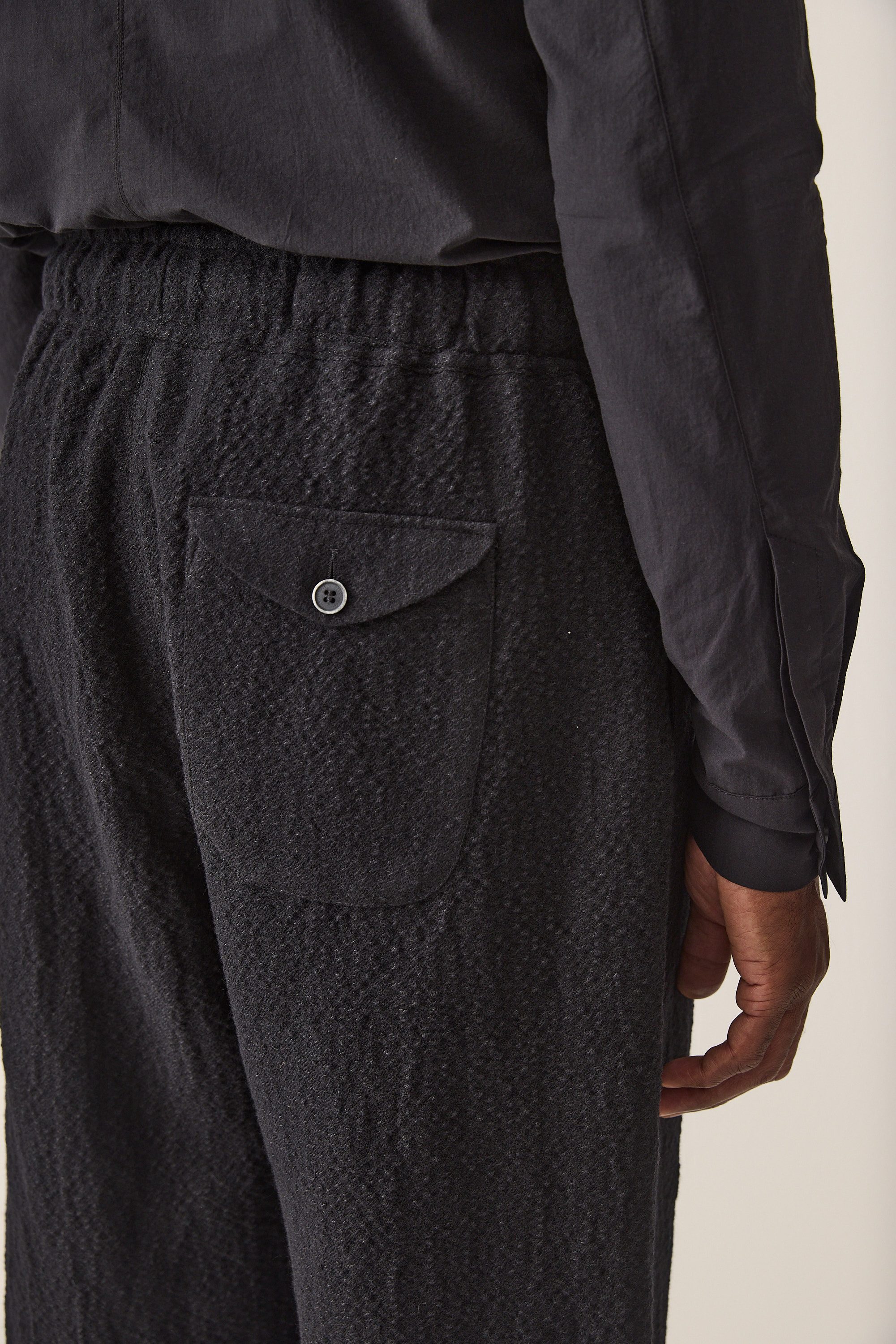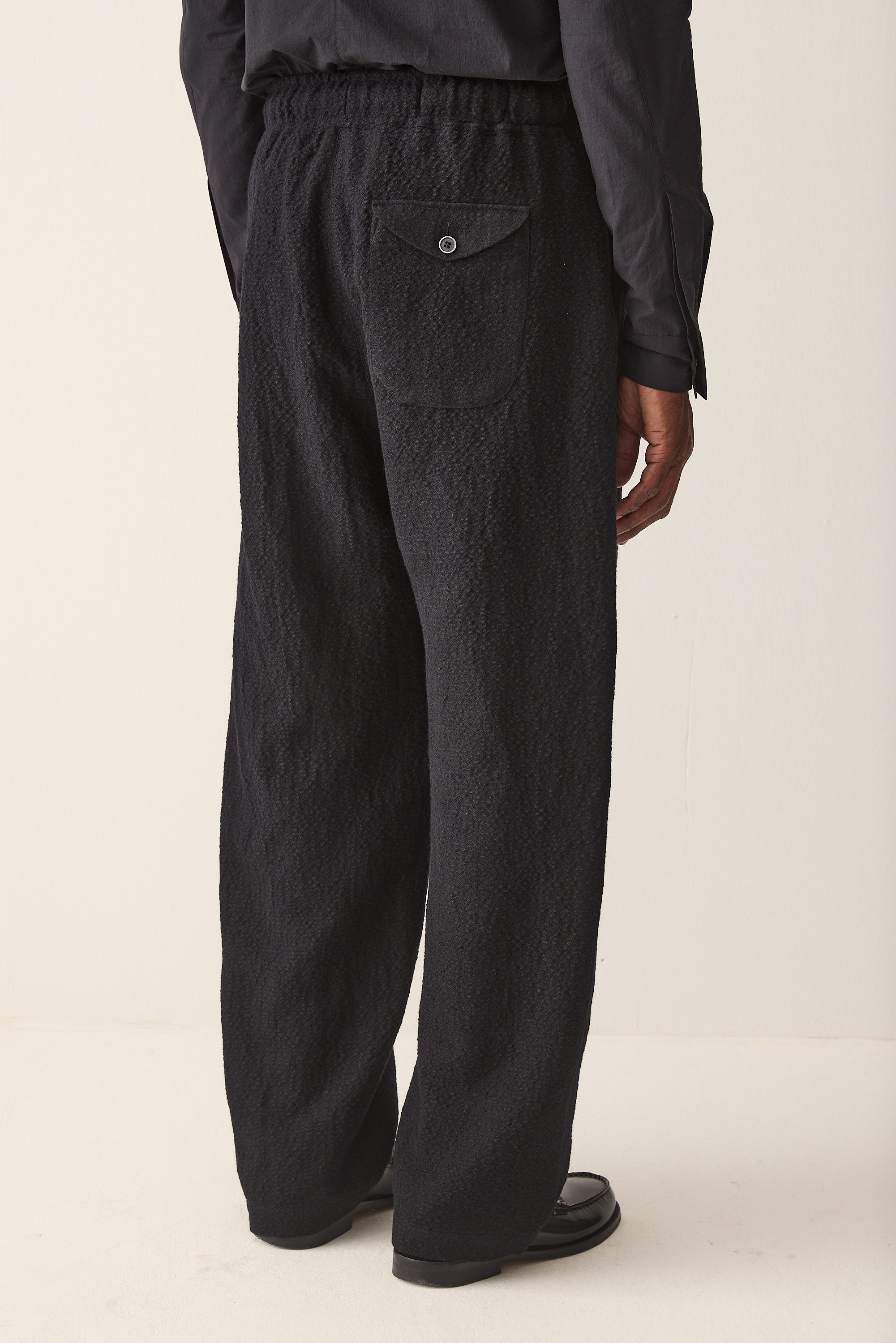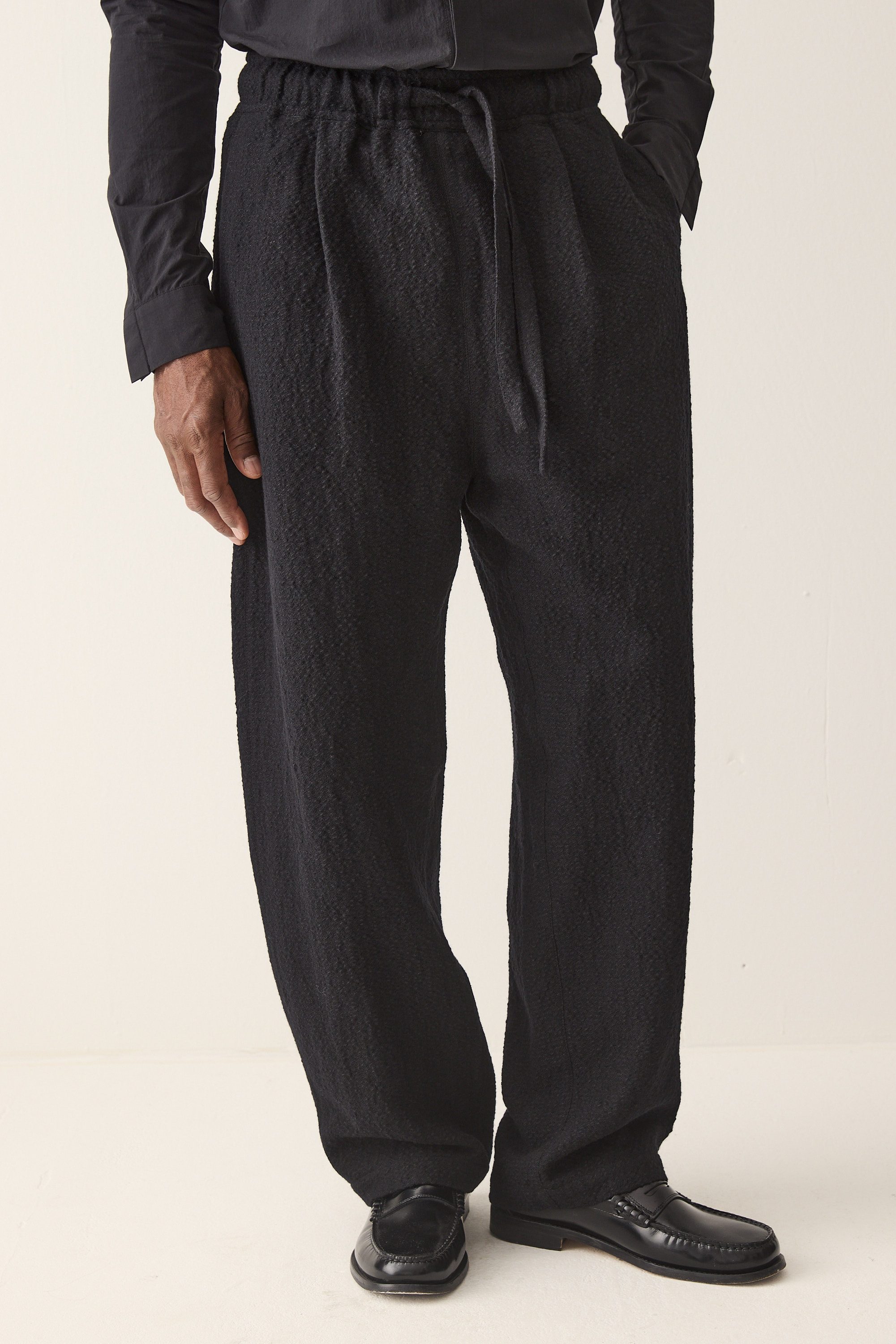 wide fit drawstring trousers, made of a Japanese wool linen cotton blend