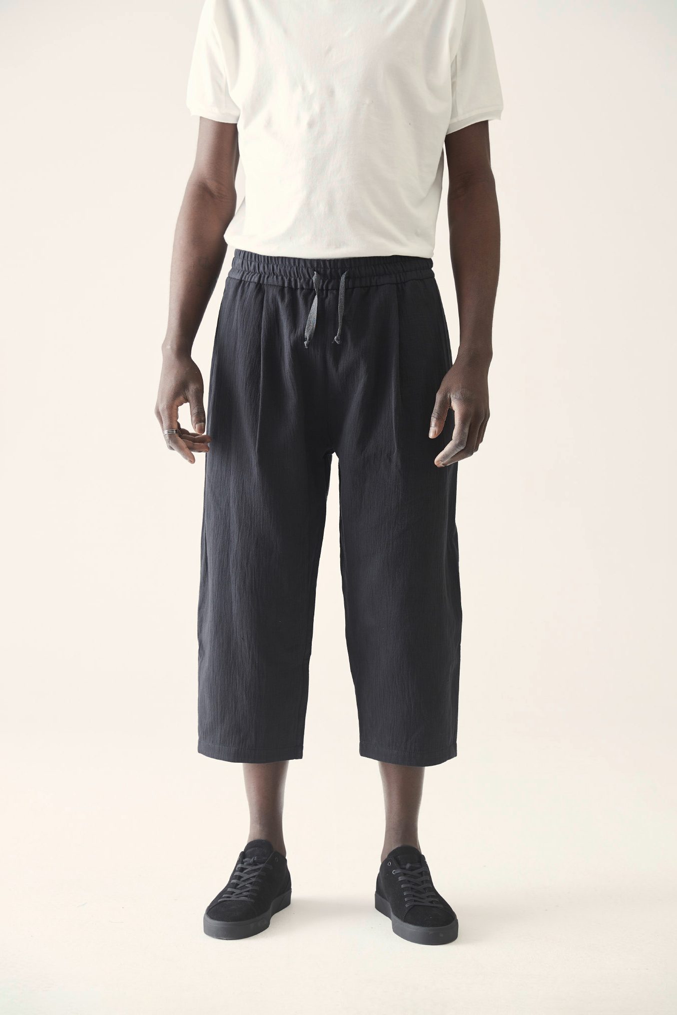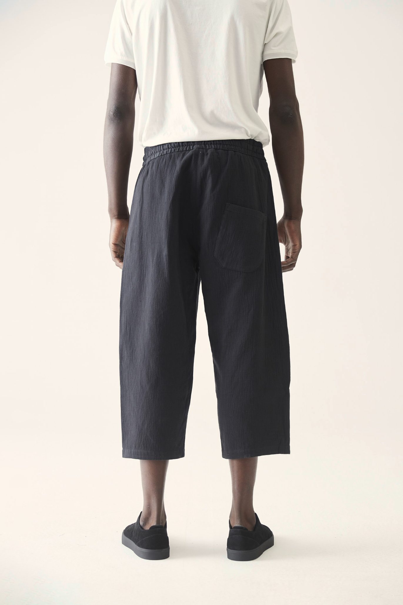 loose fit 7/8 cotton trousers with elastic waistband and drawstring.